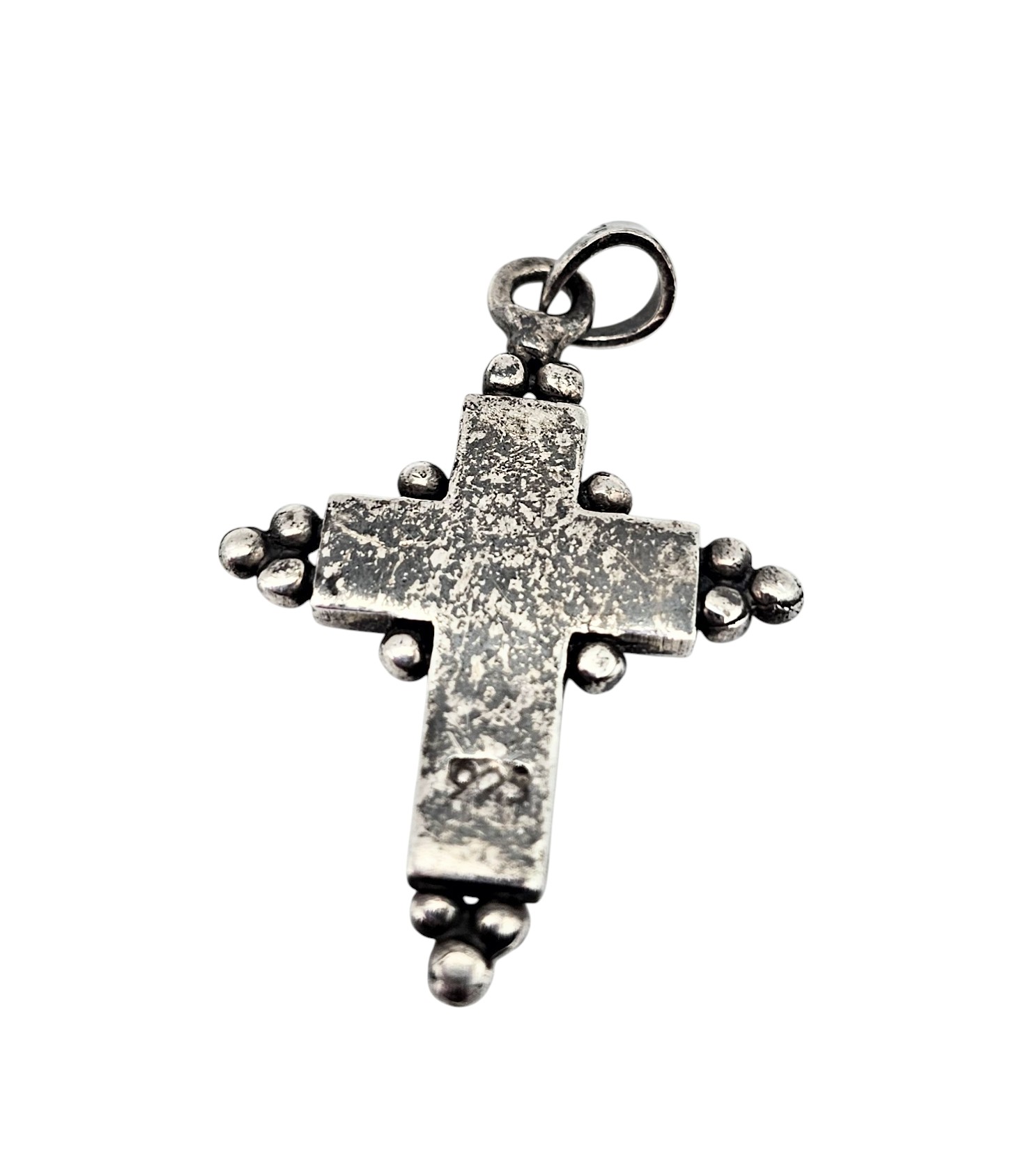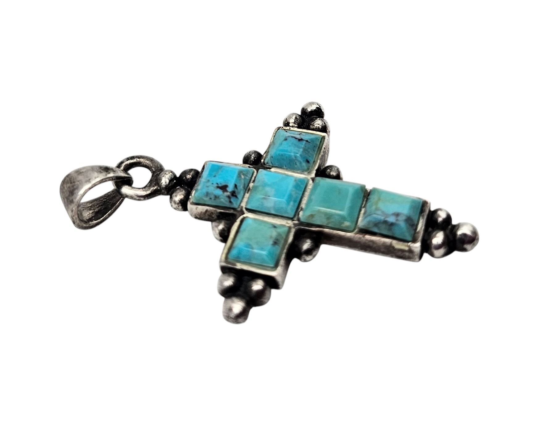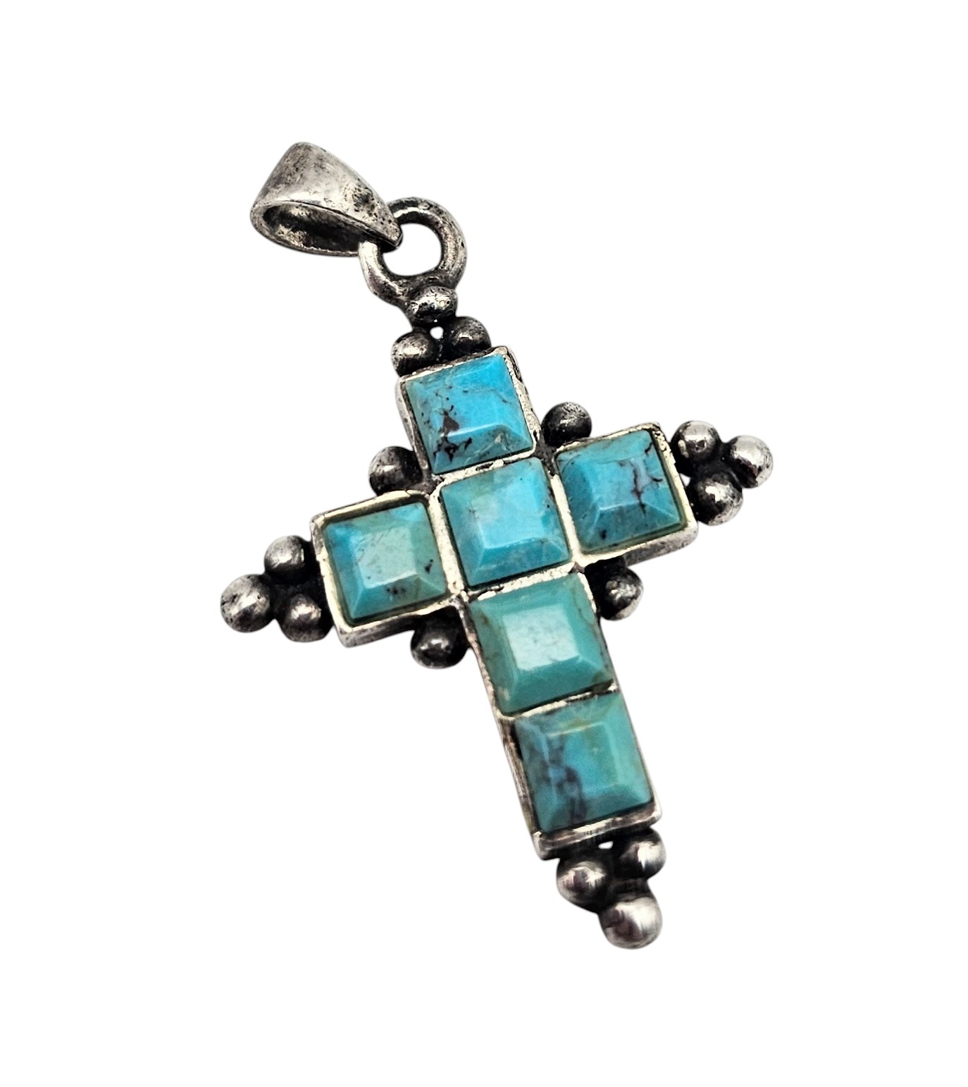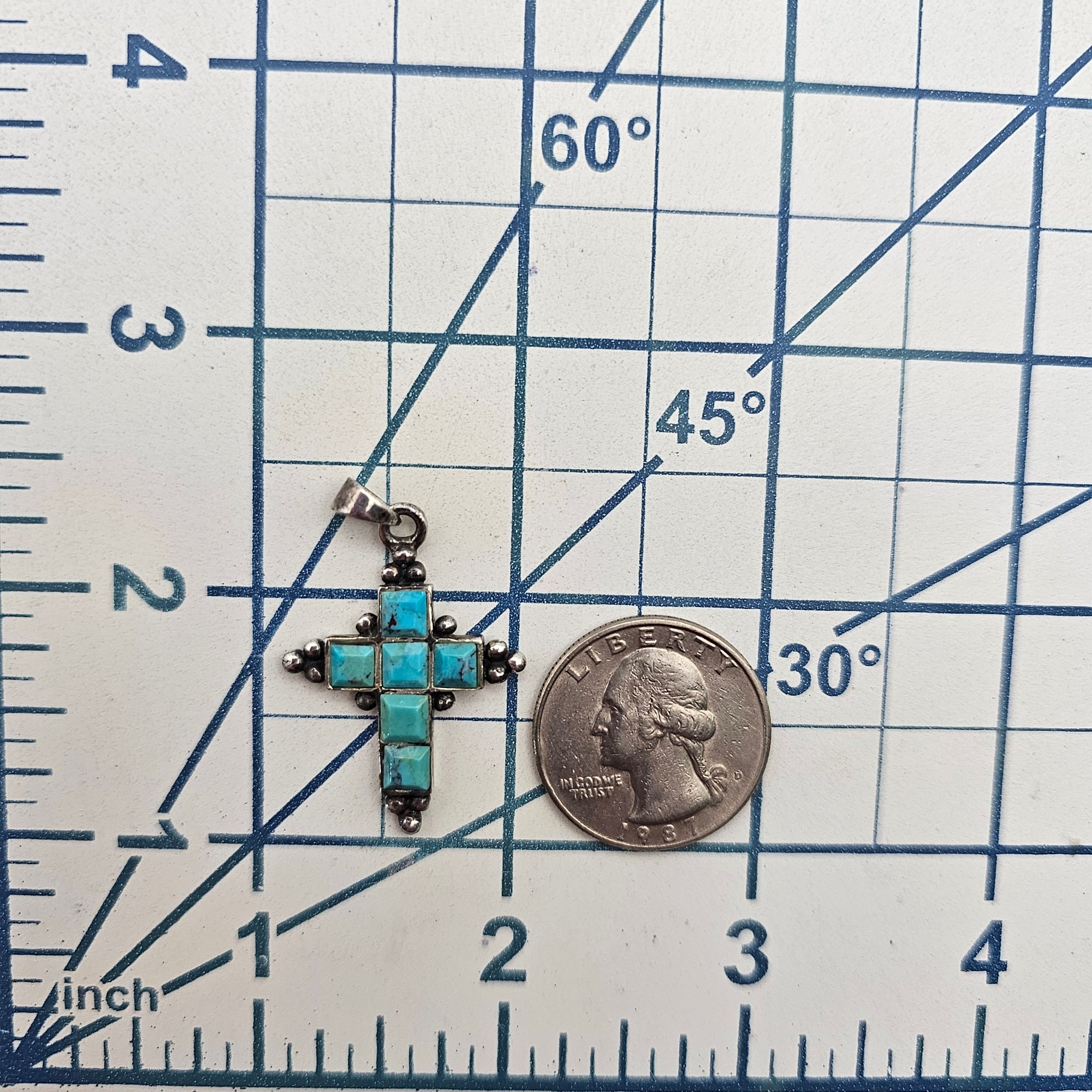 Southwestern Turquoise Sterling Silver Cross Pendant 4.7 G