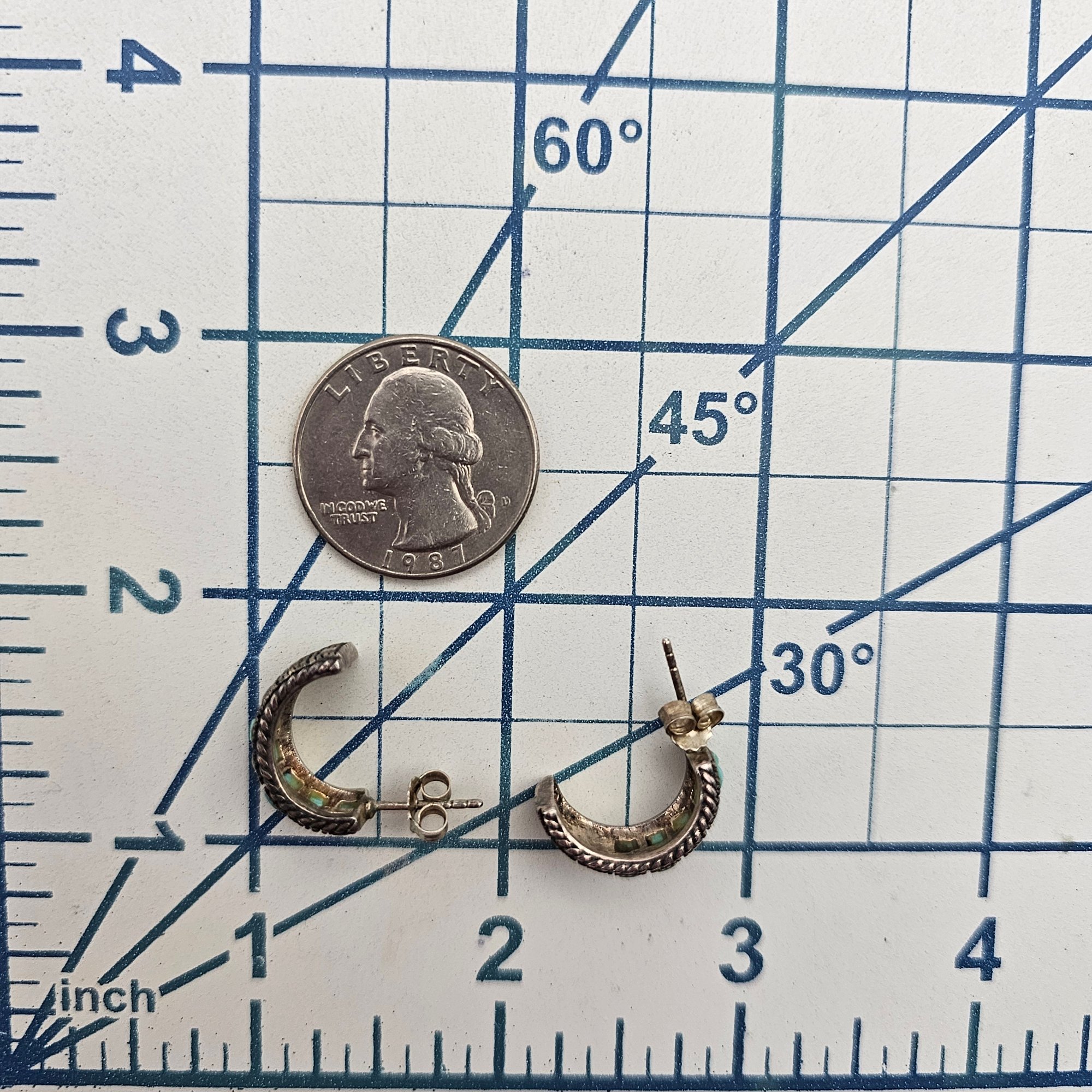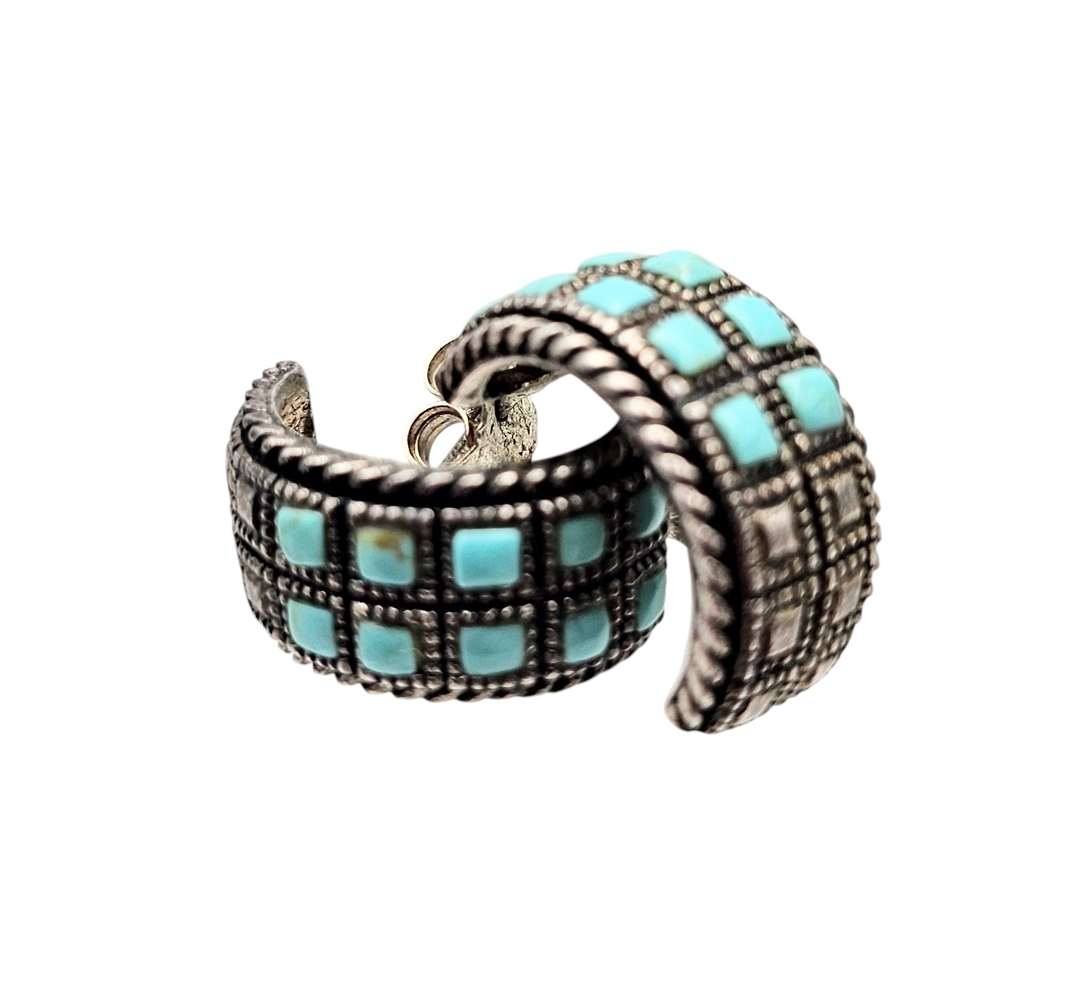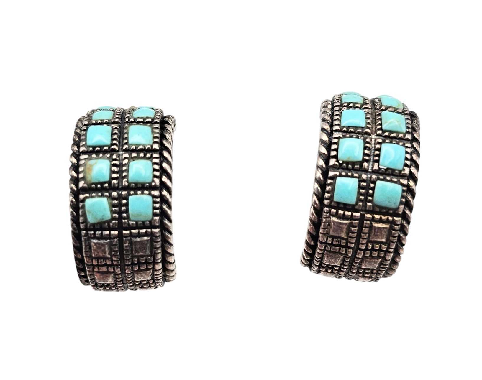 Southwestern Turquoise Sterling Silver Hoop Earrings 5.5 g