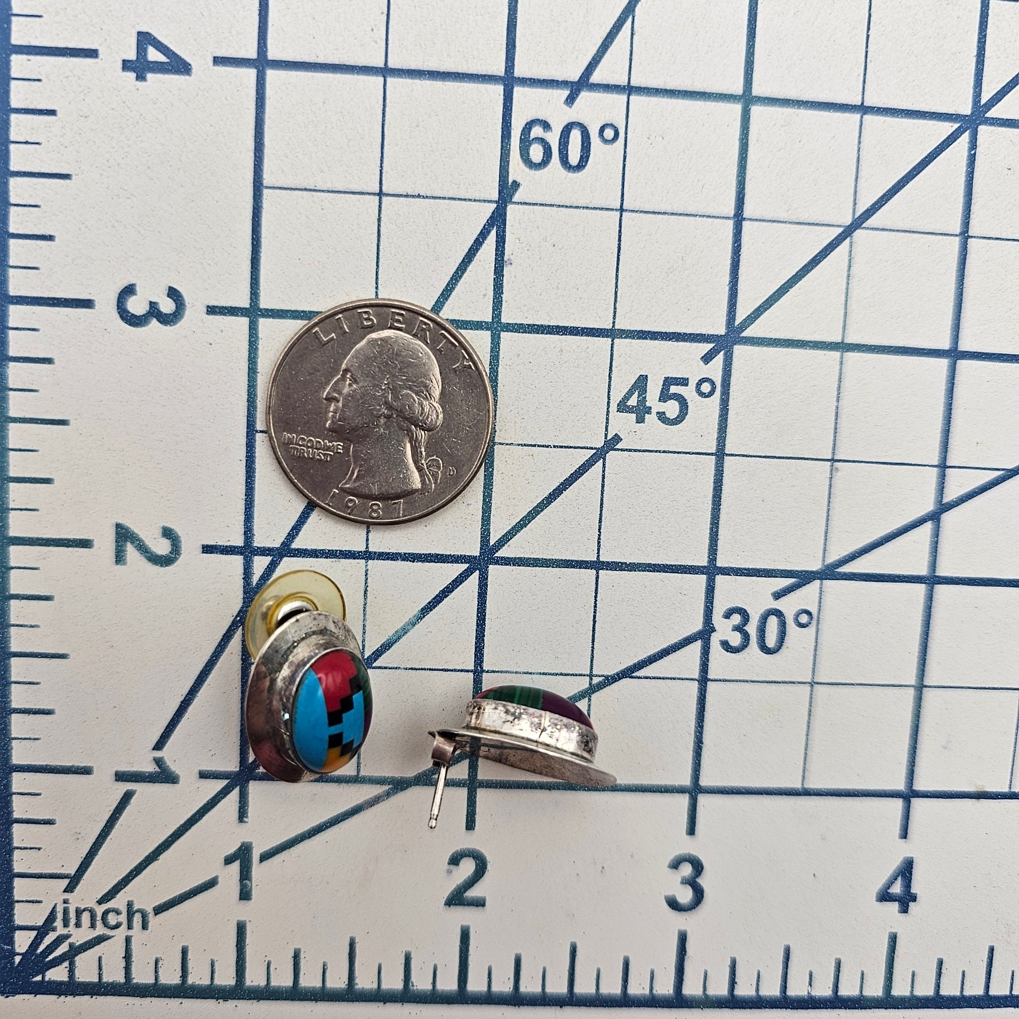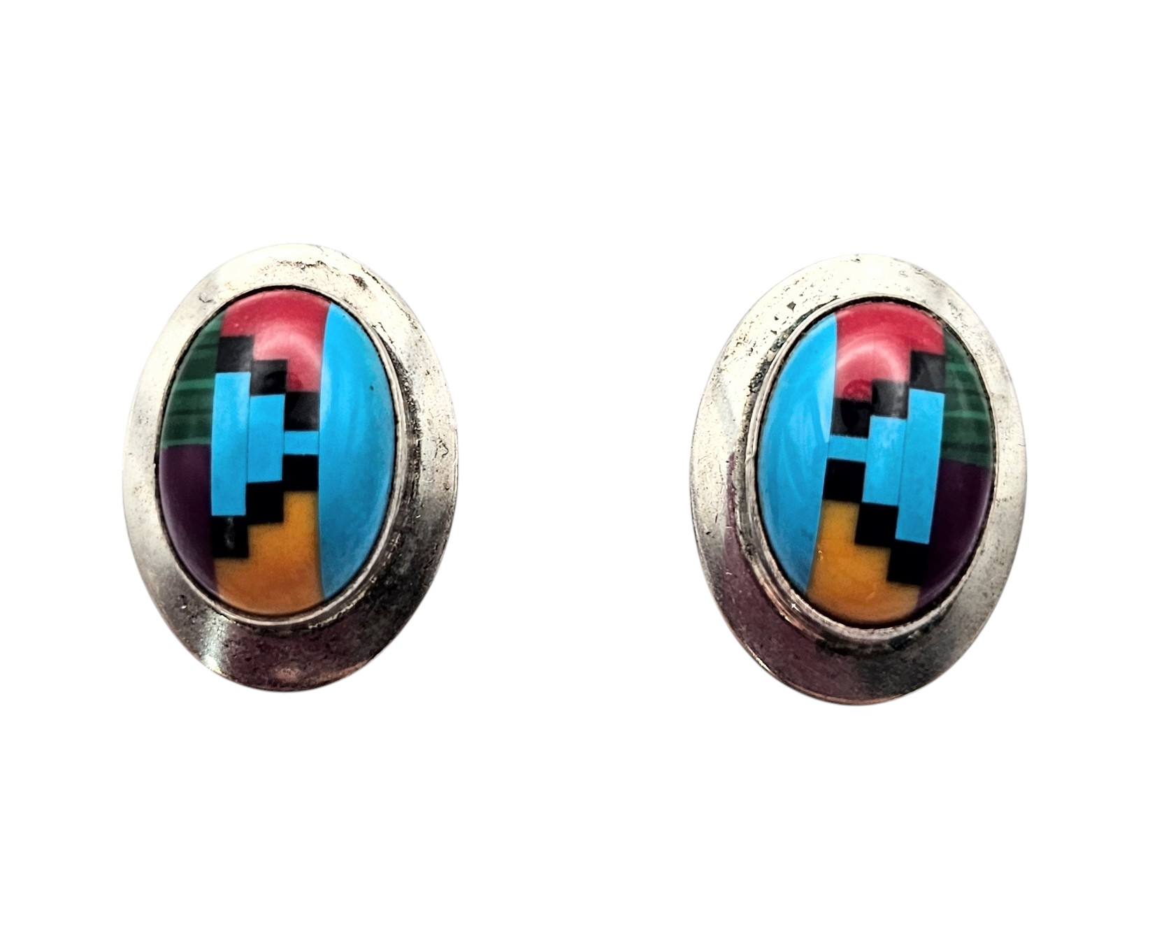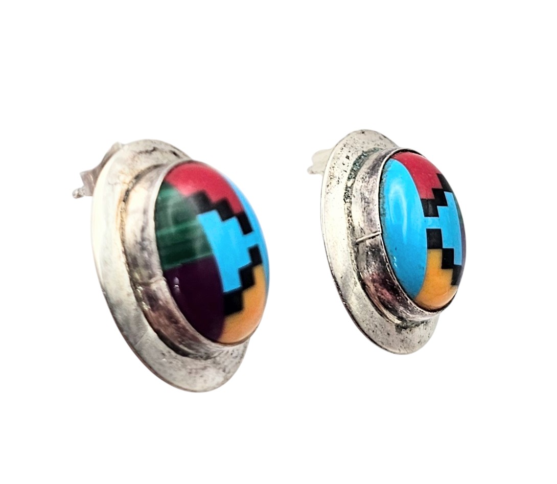 Southwestern Multi Stone Sterling Silver Earrings 5.1 G