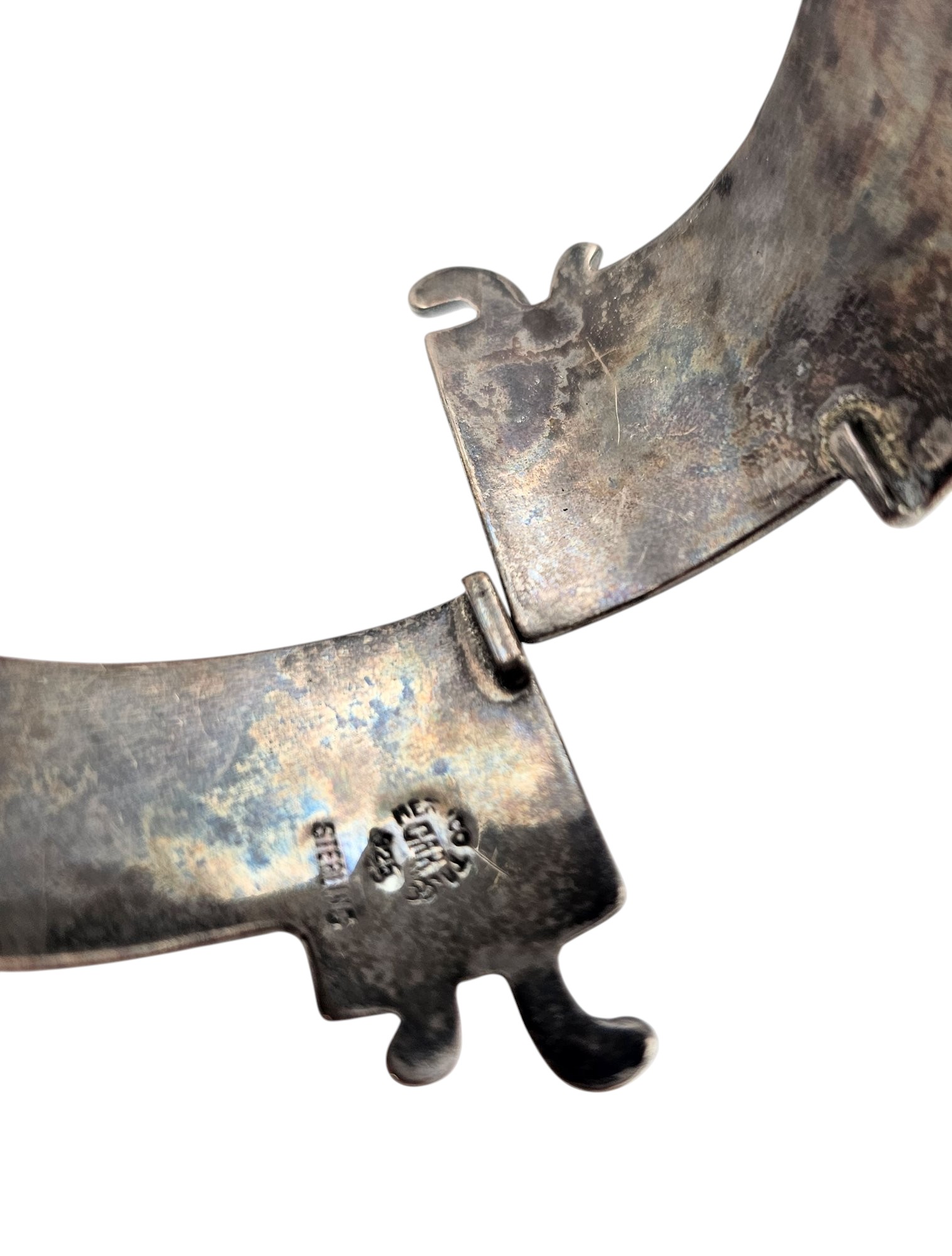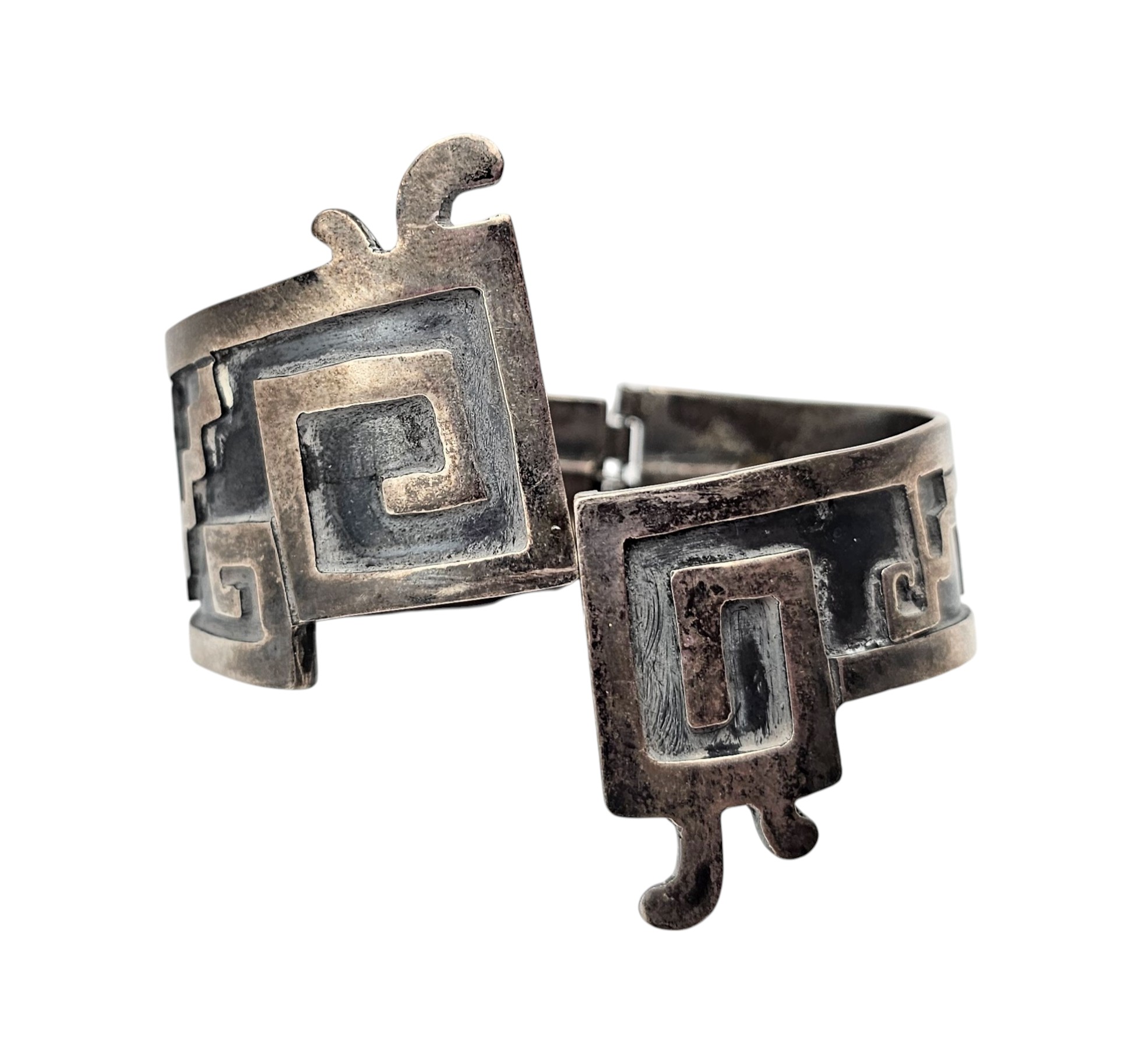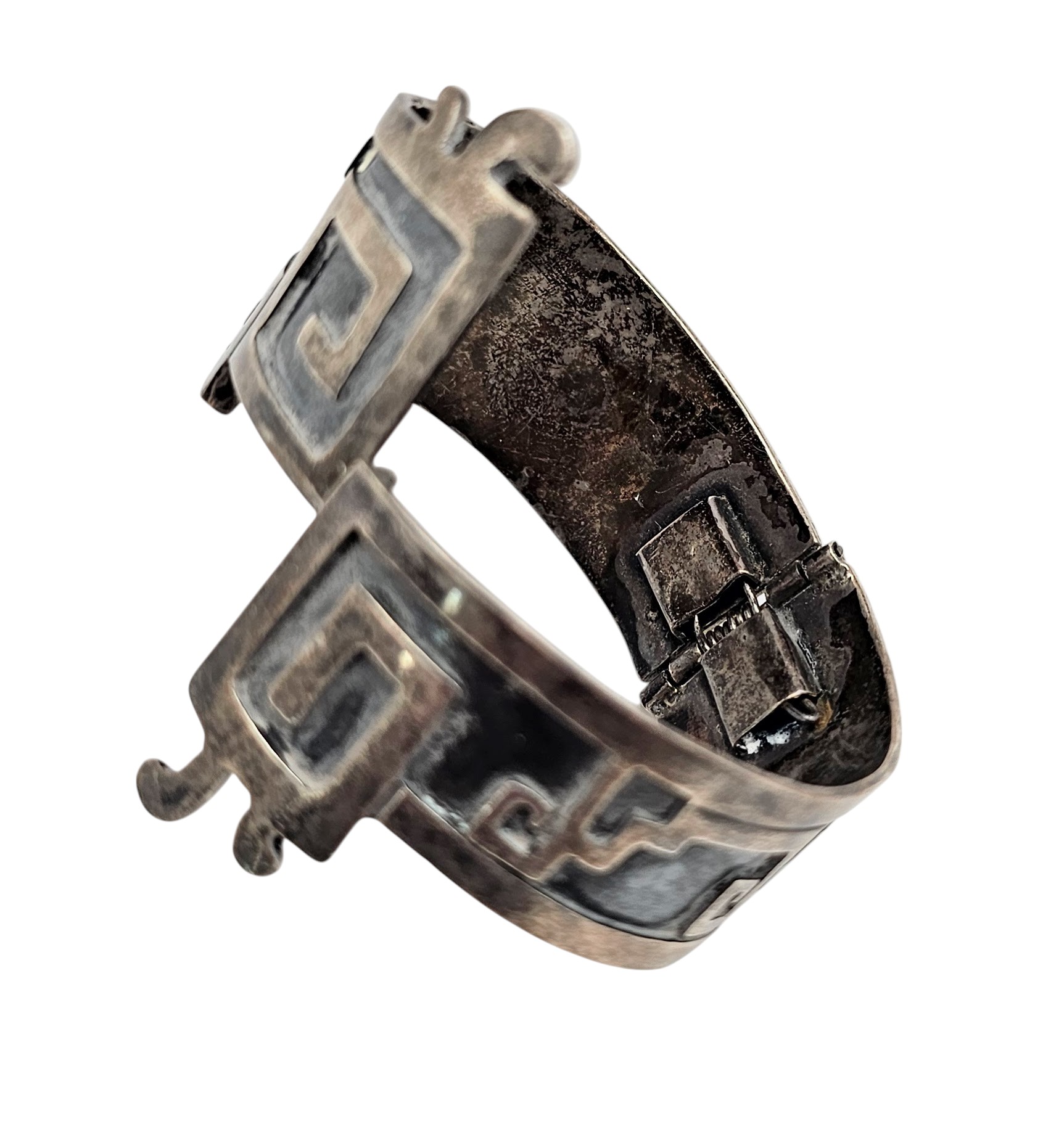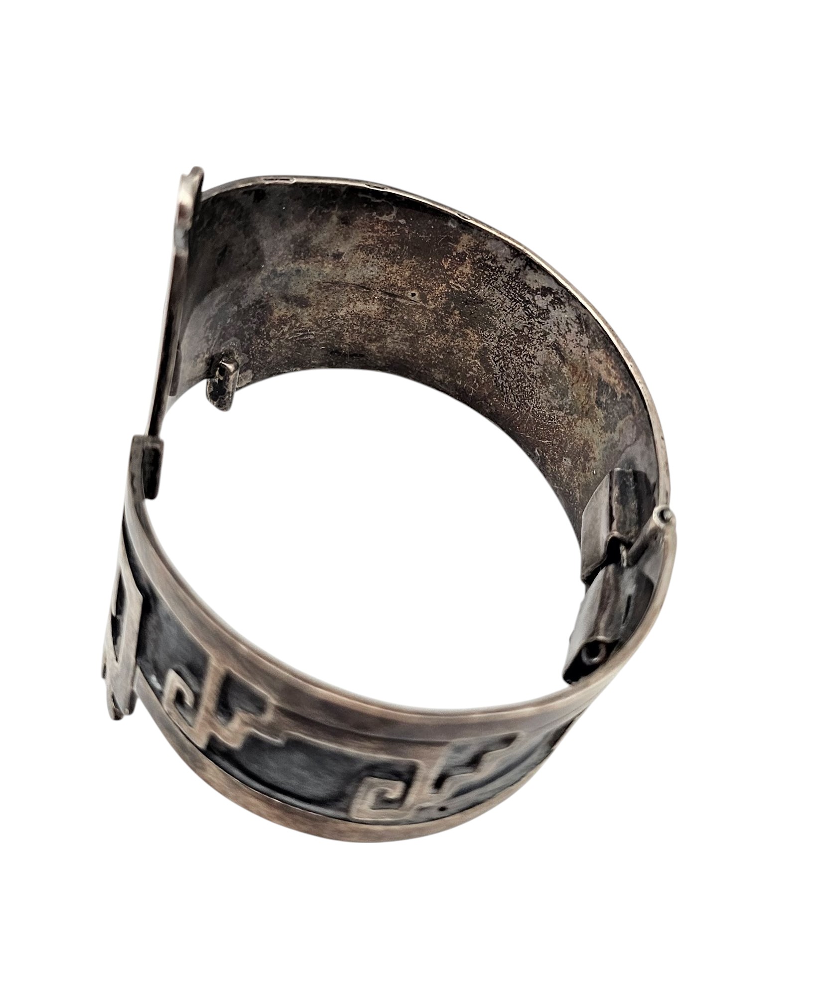 PAR Mexico Sterling Silver Aztec Style Hinge Bangle Bracelet 46.9 G