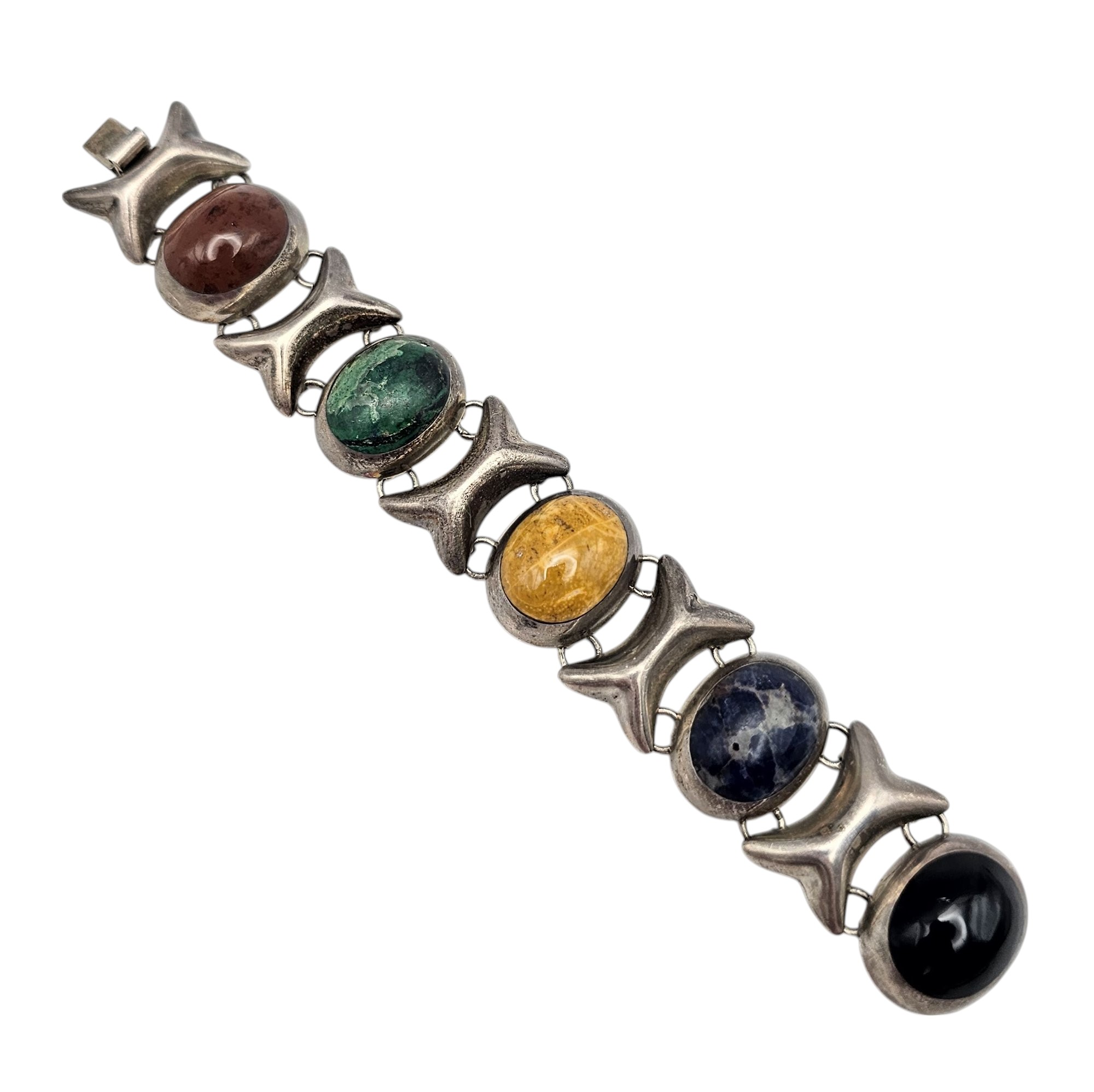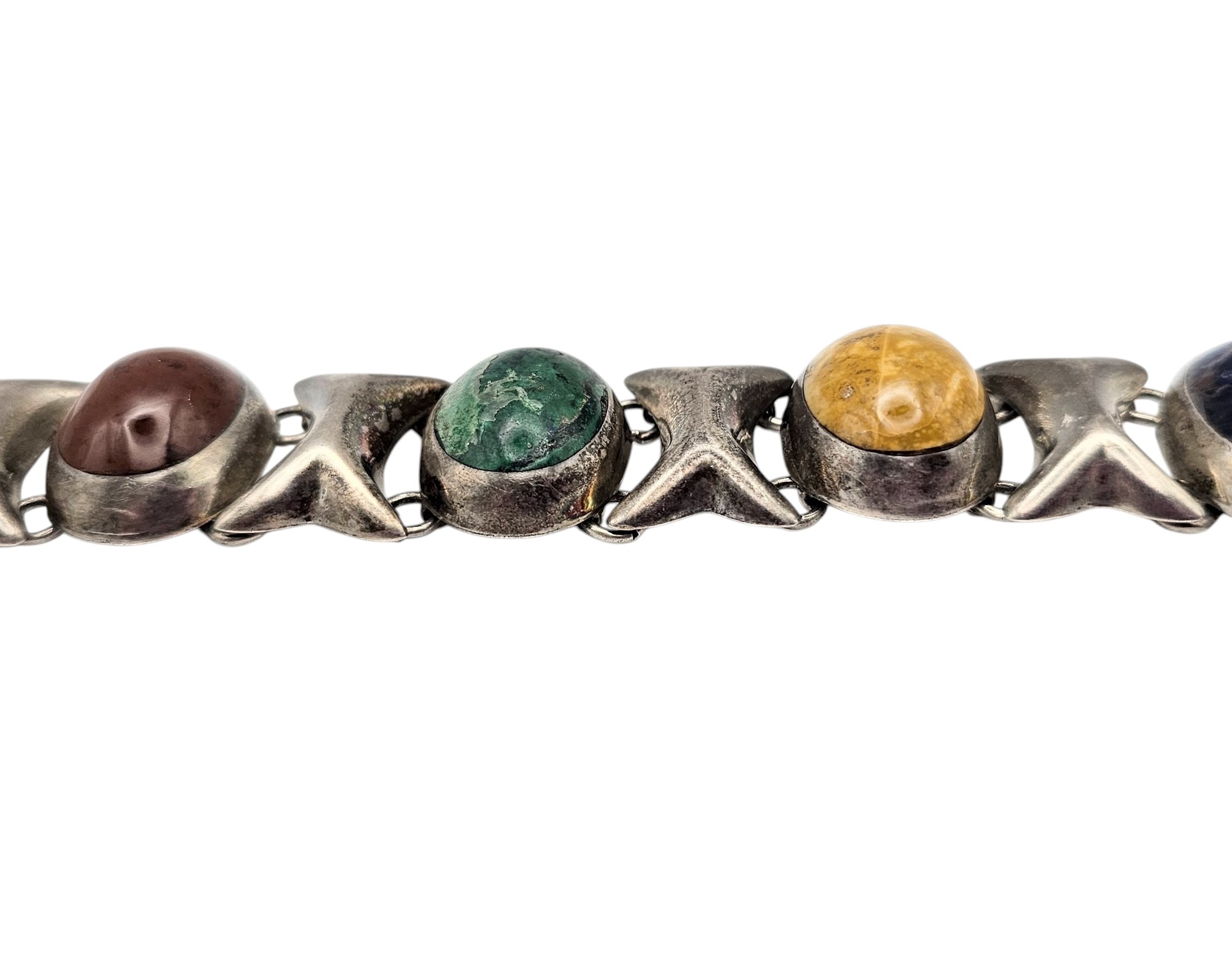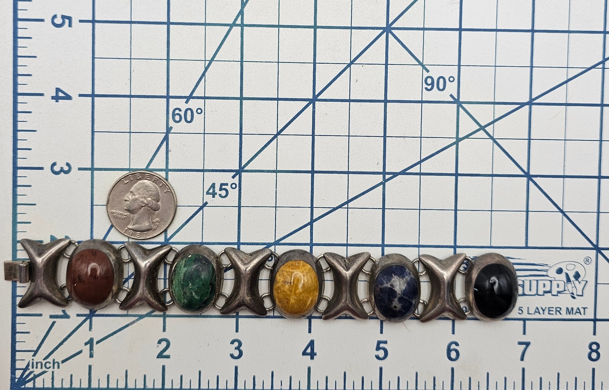 Mexico Taxco TC-138 Multi Stone Sterling Silver Bracelet 63.2 G