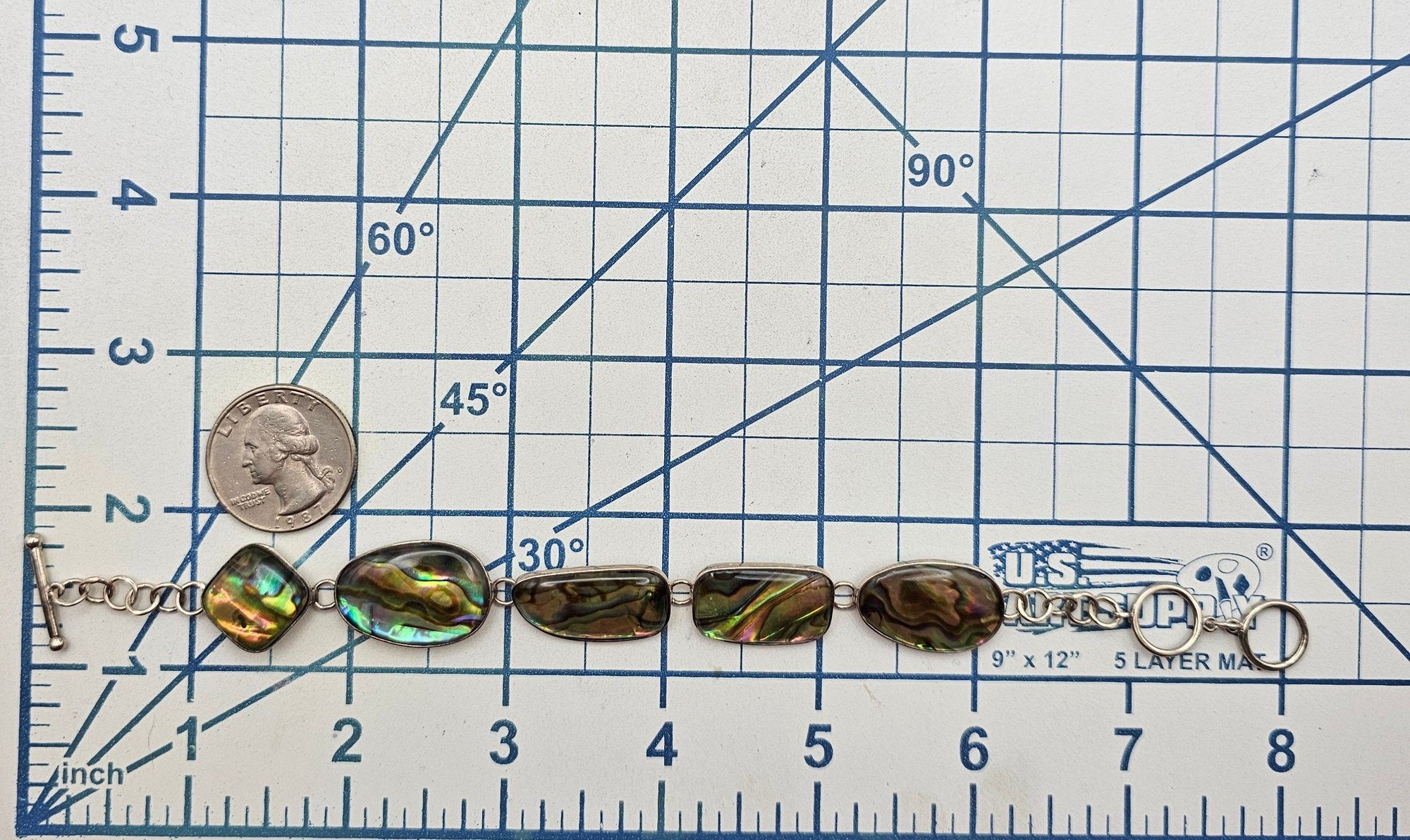 LUC Abalone Sterling silver Toggle Bracelet 11.3 G