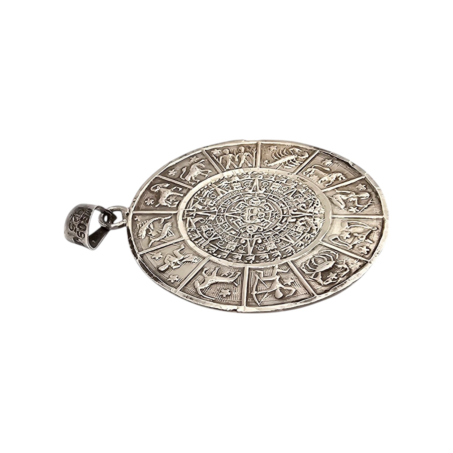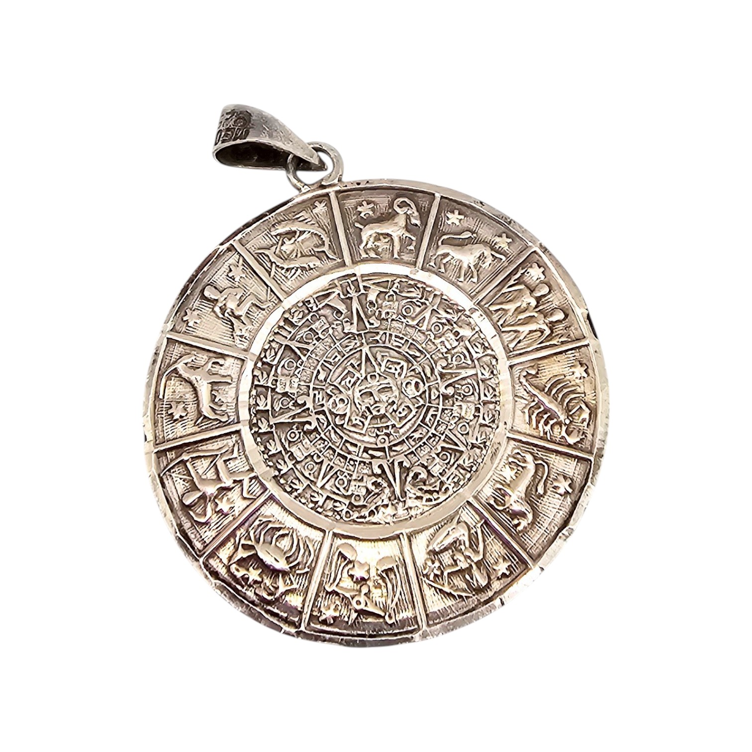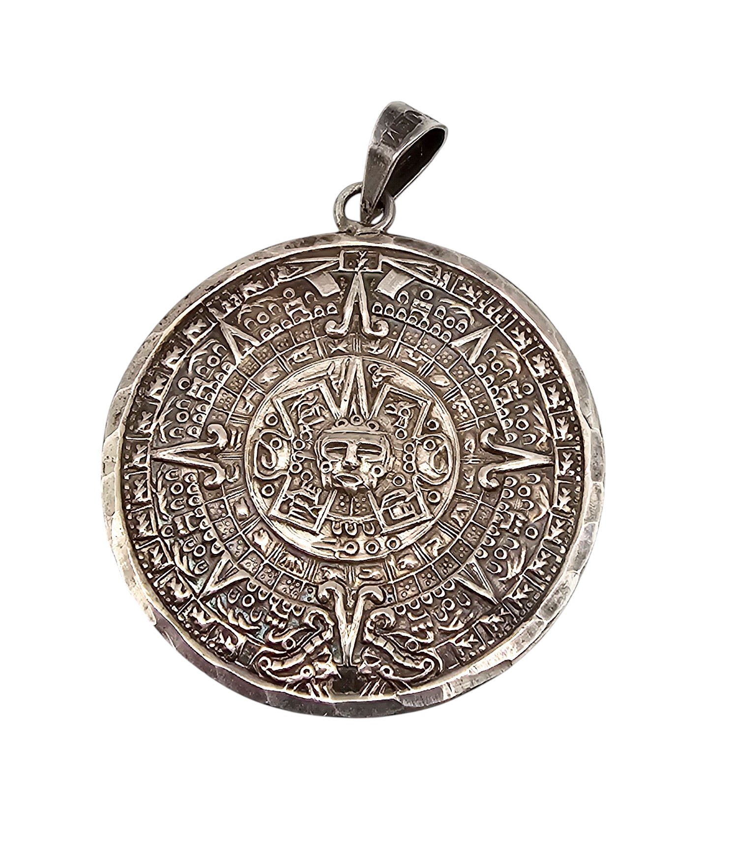 JEM Mexico Sterling Silver Aztec Zodiac Calendar Pendant 7.1 G