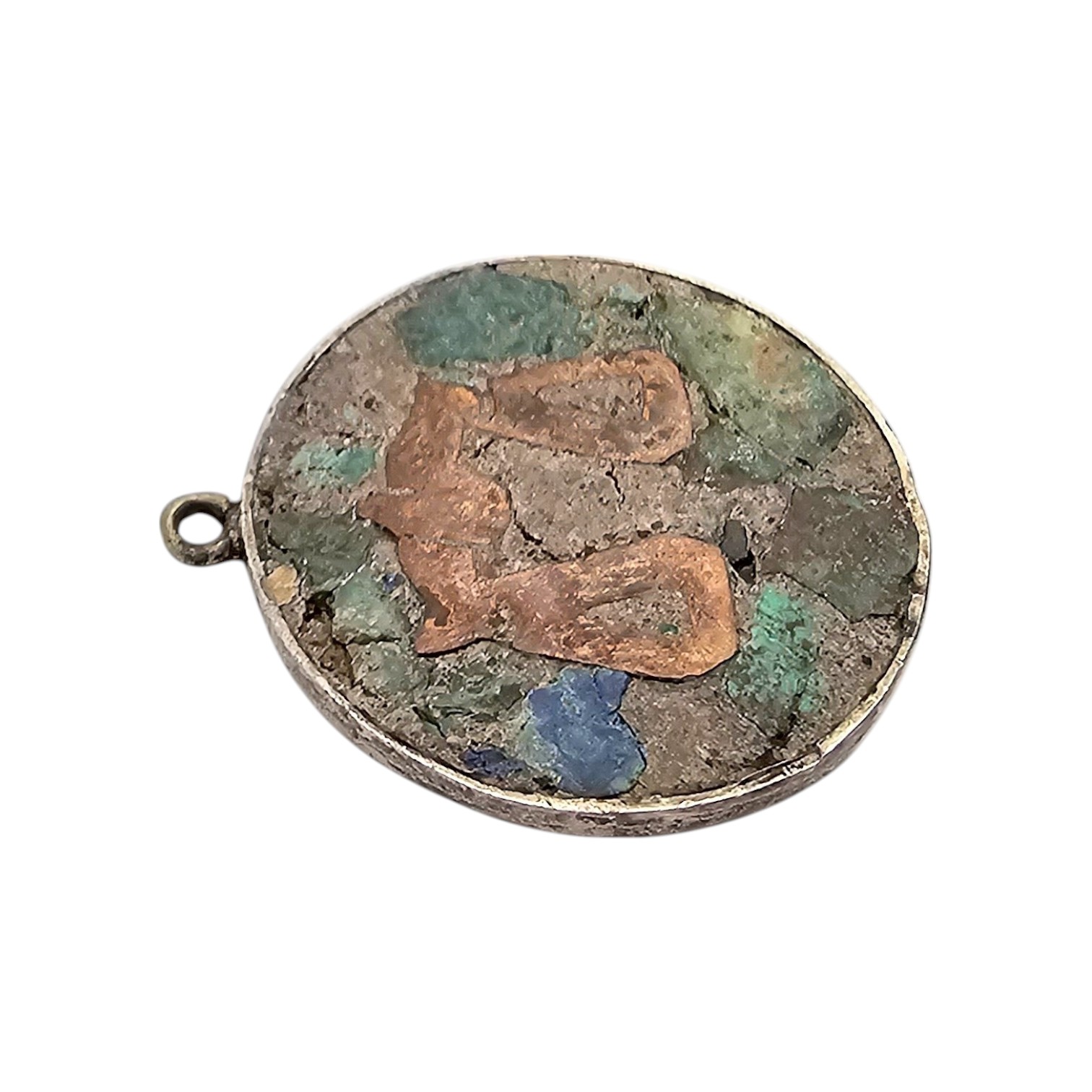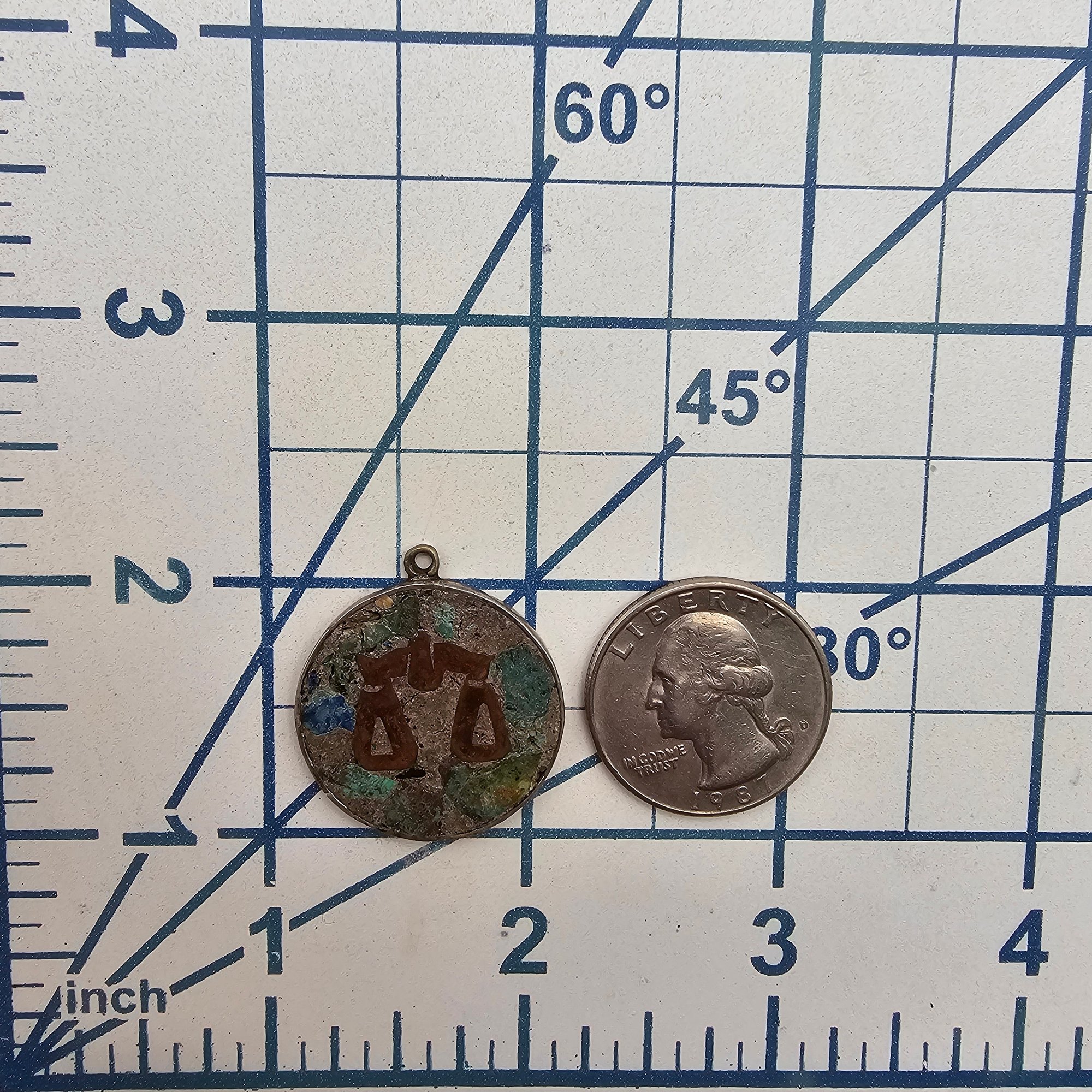 Crushed Turquoise Sterling Silver Copper Libra Zodiac Pendant 4.9 G