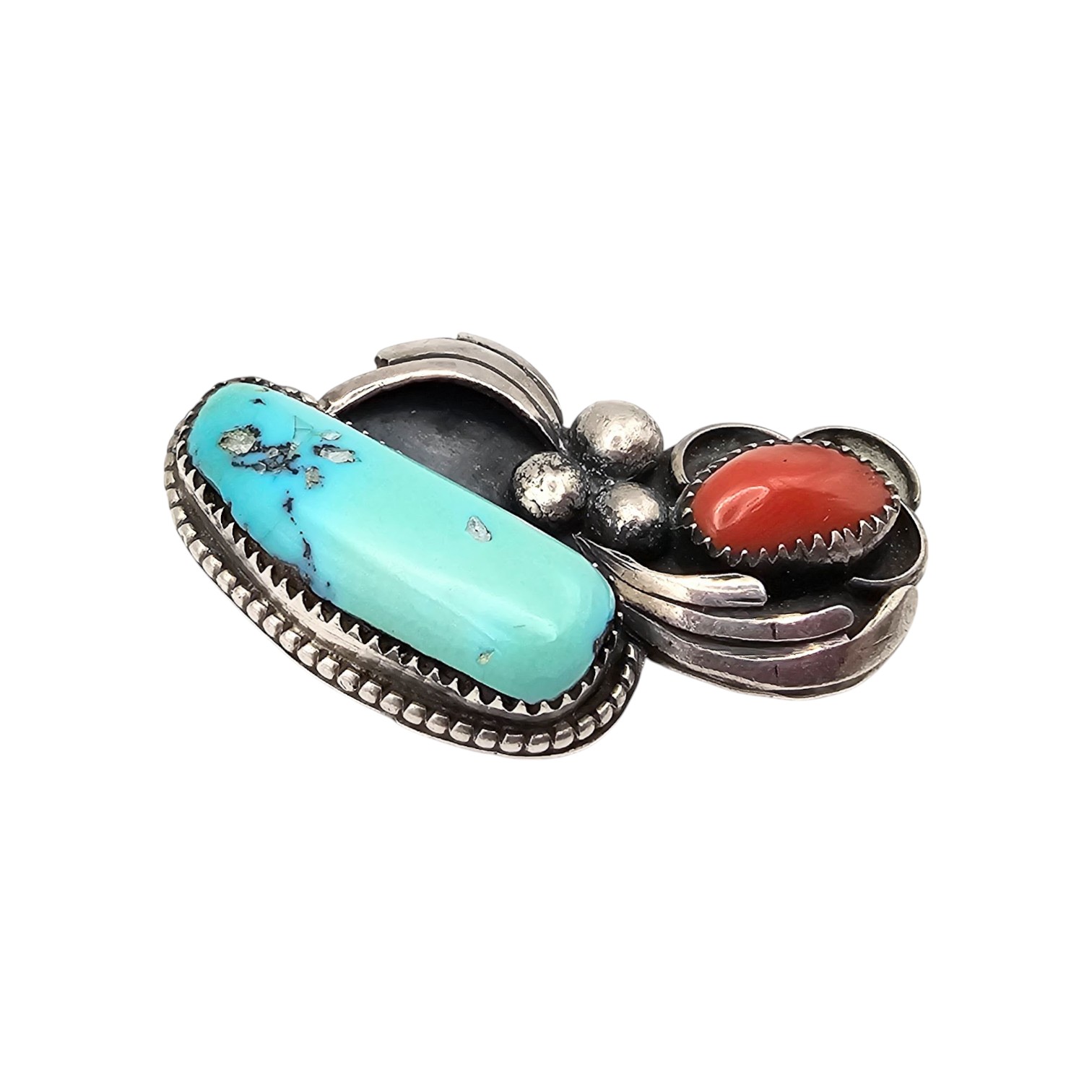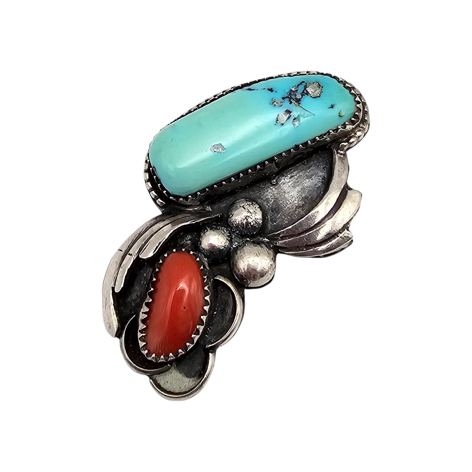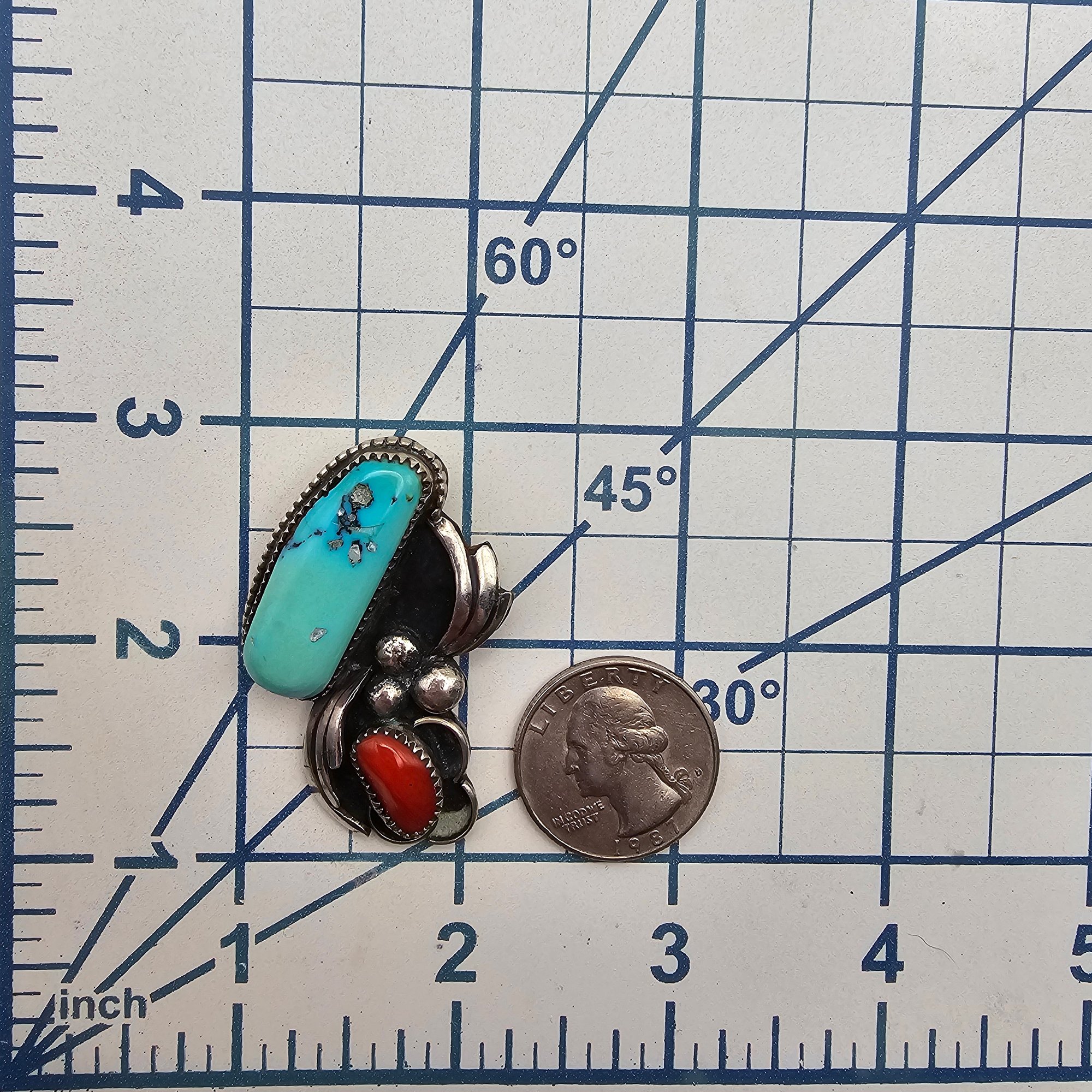 Navajo Turquoise Coral Sterling Silver Pendant 16.5 G