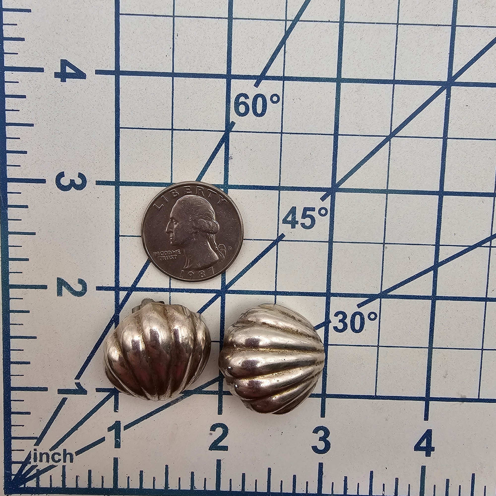 Mexico TV-30 Sterling Silver Hollow Form Shell Earrings 15.3 G