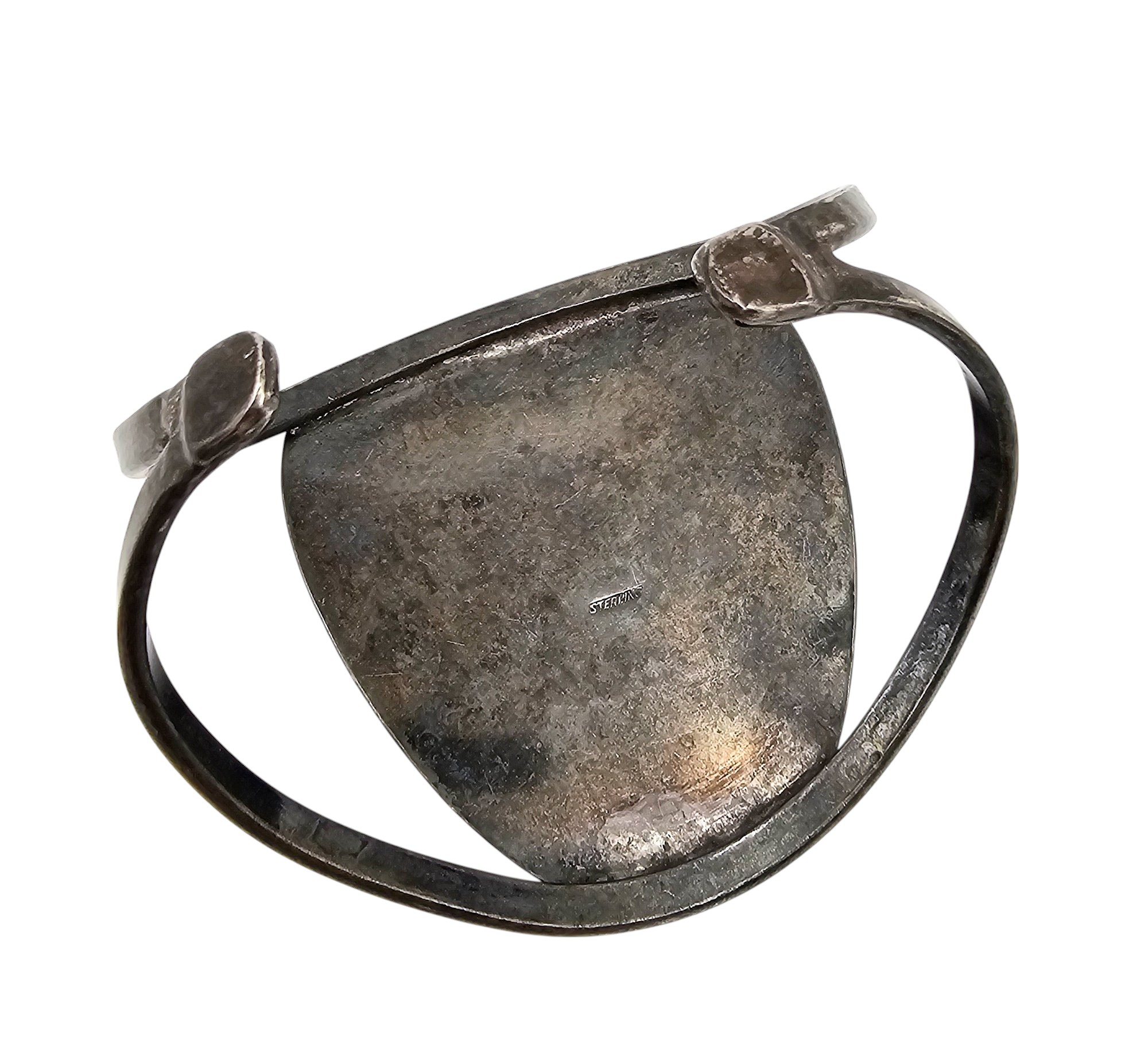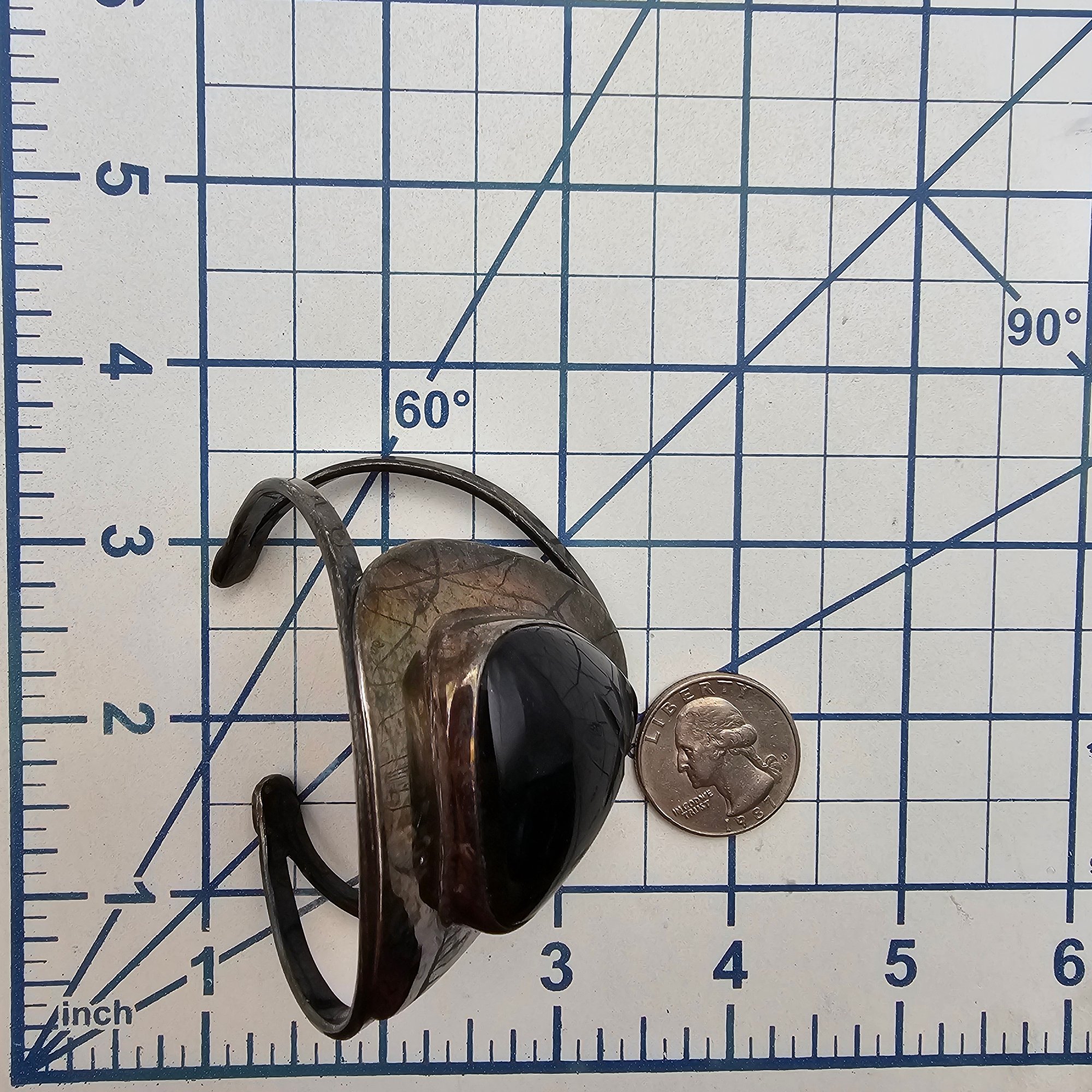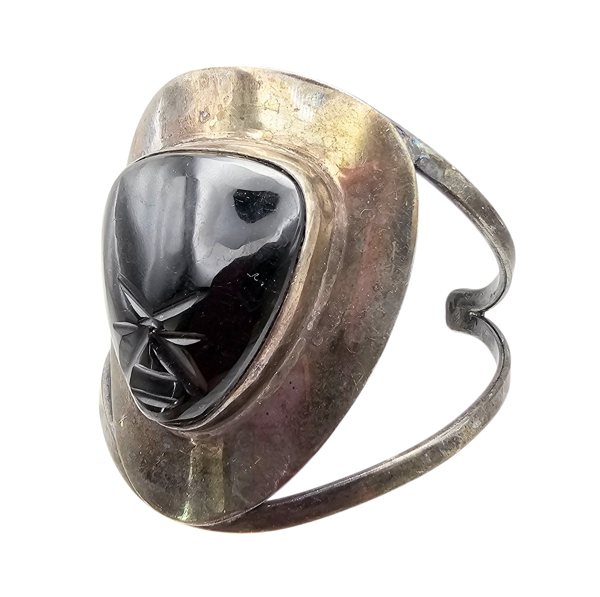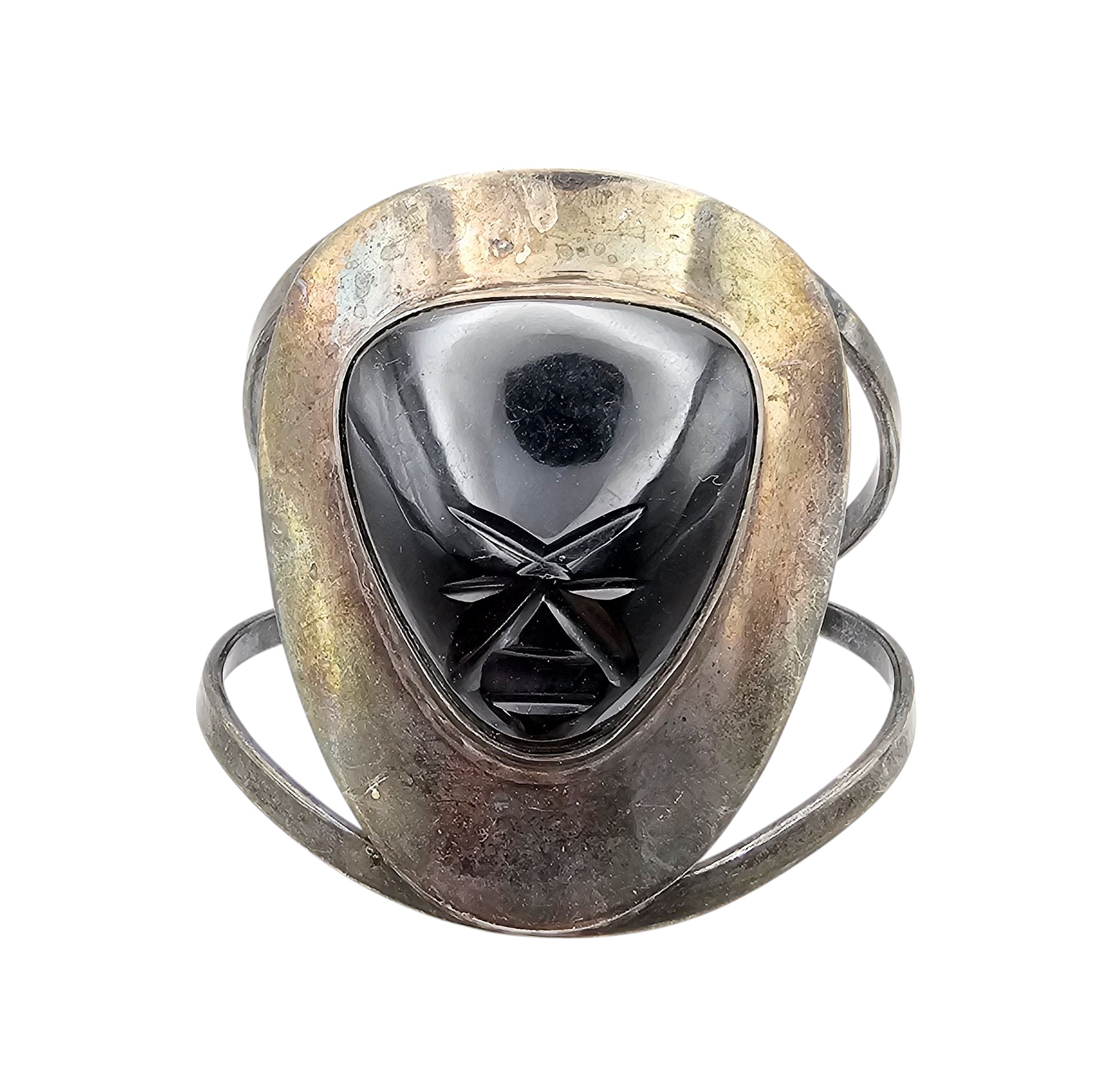 Obsidian Sterling Silver Carved Face Mask Cuff Bracelet 55.2 G