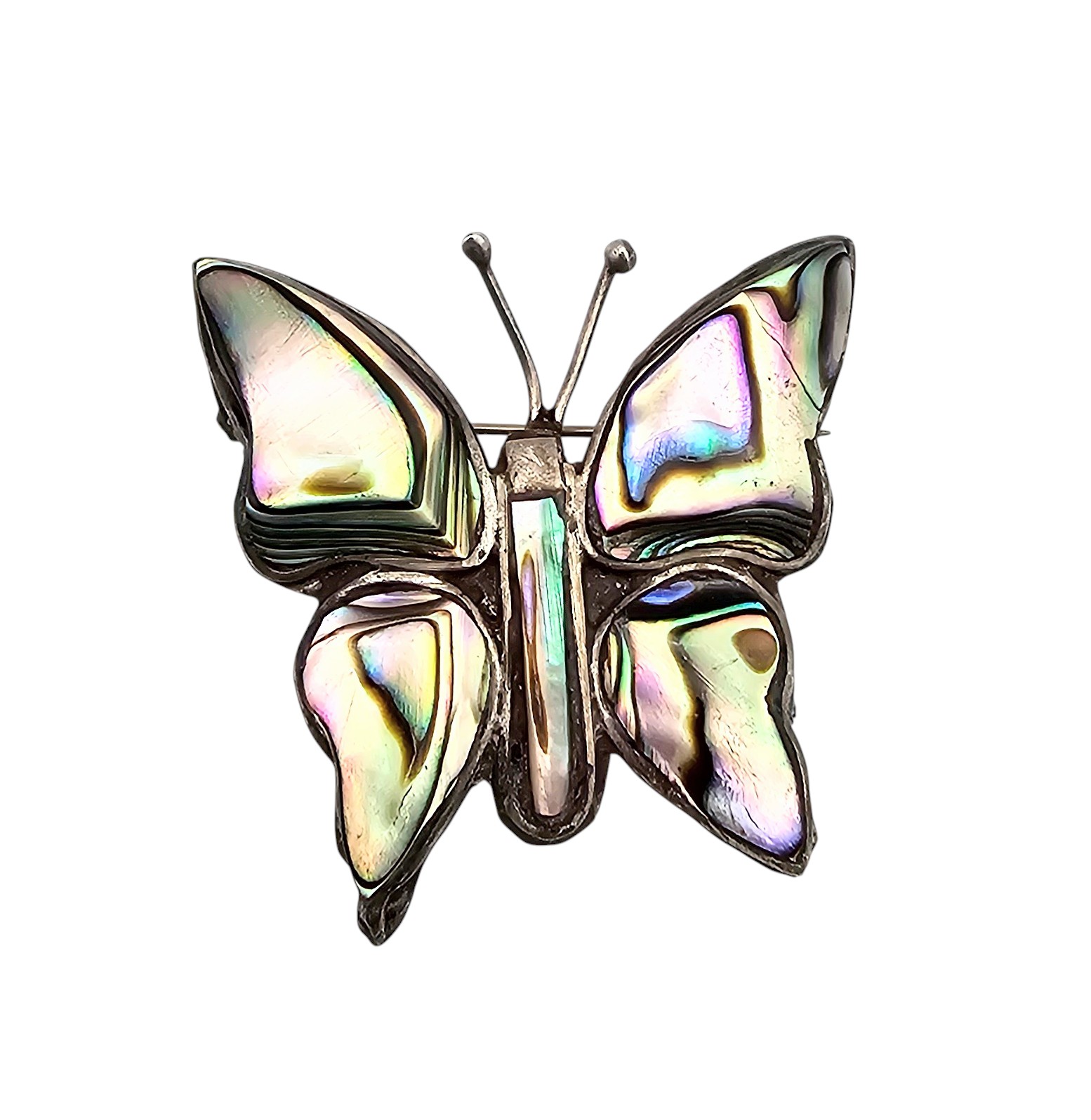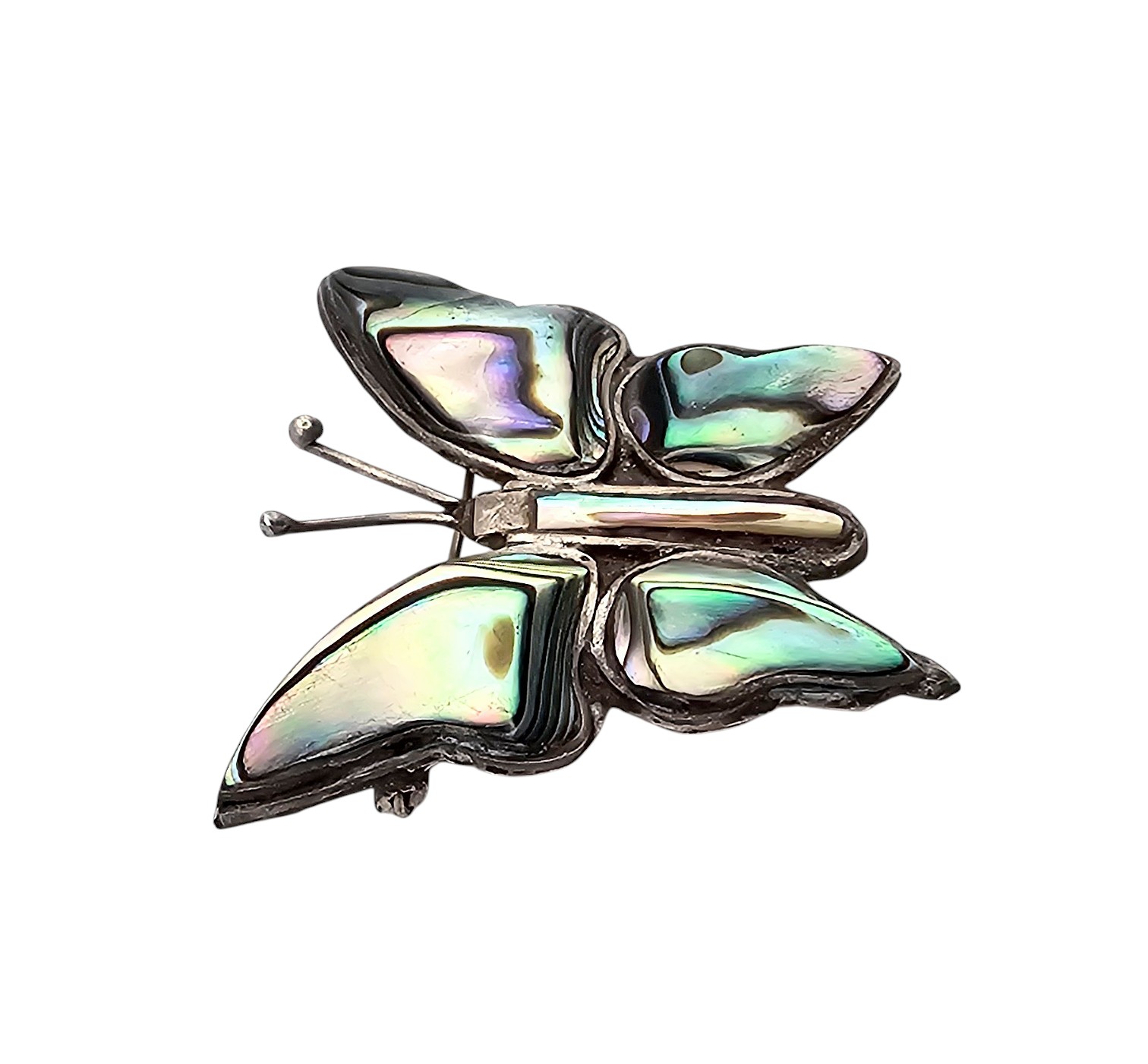 Alpaca Mexico Abalone Butterfly Brooch 5.9 G