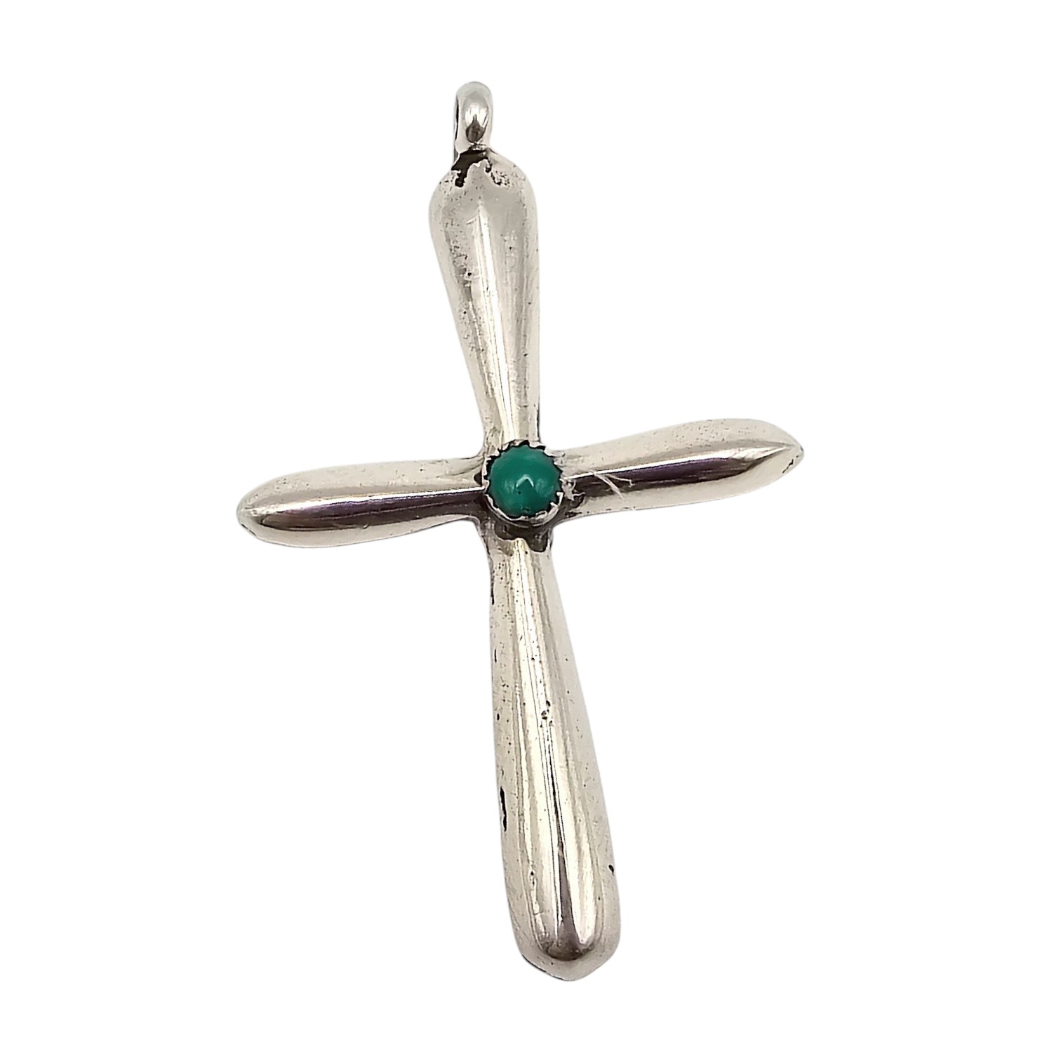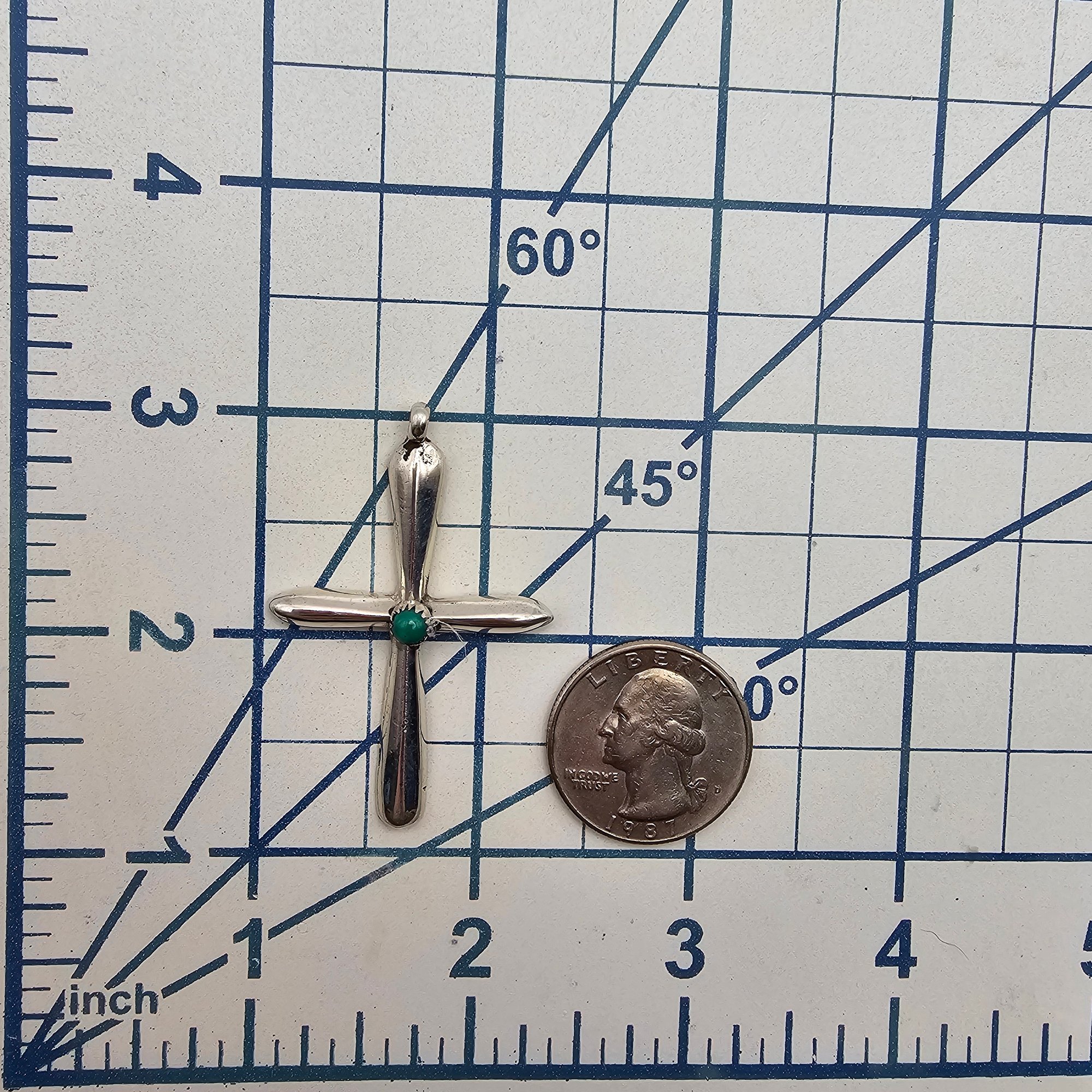 Navajo Turquoise Sterling Silver Cross Pendant 6.7 G