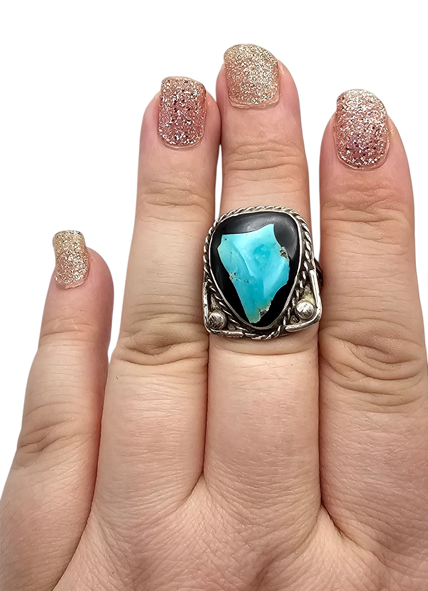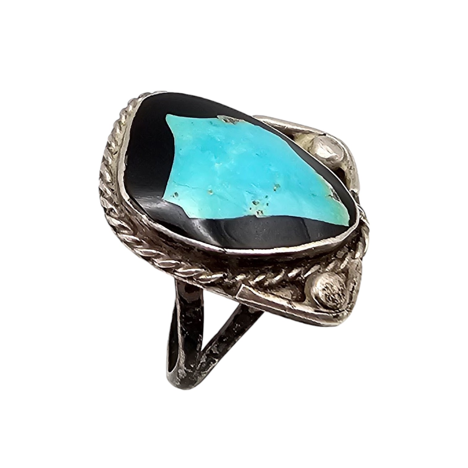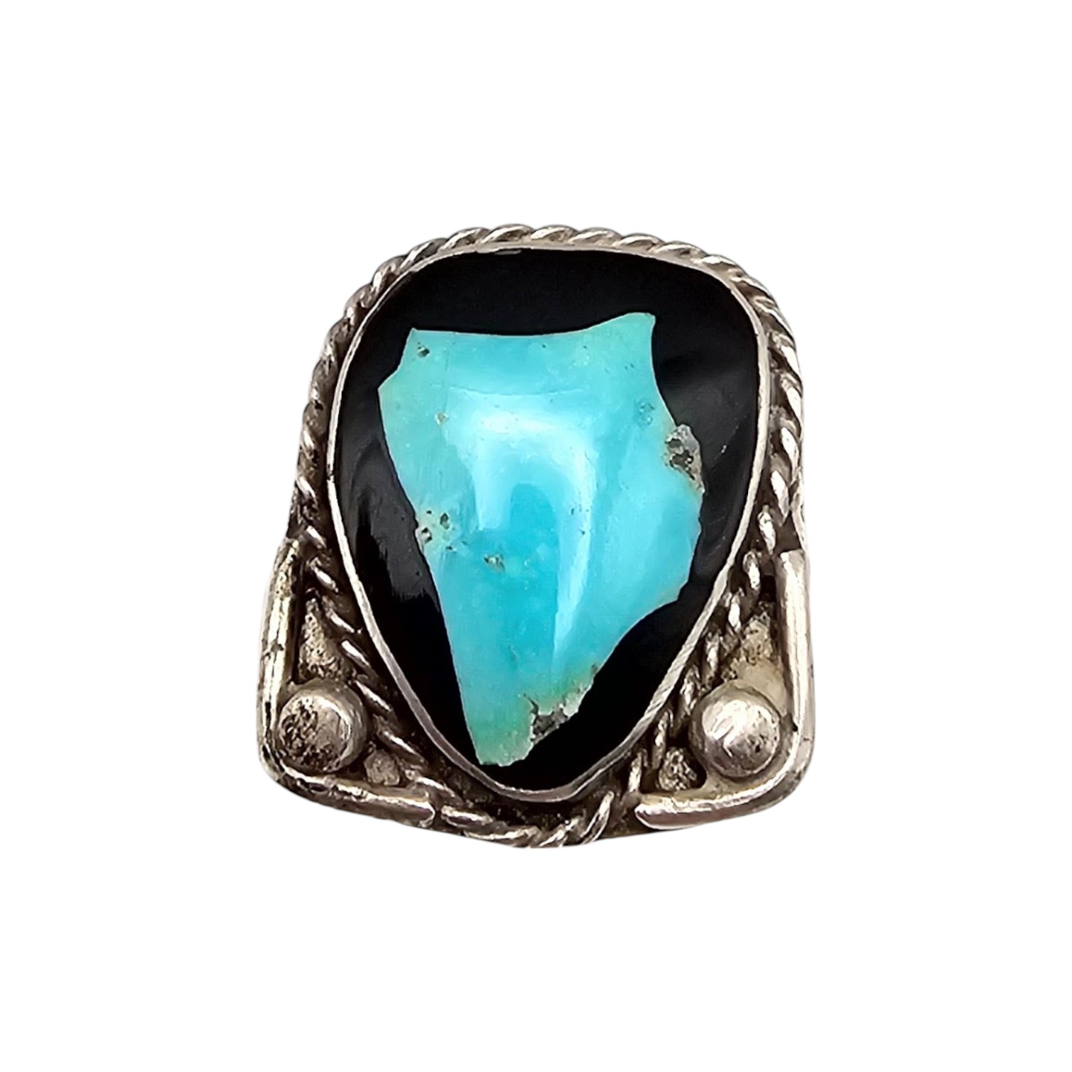 Native Turquoise Onyx Sterling Silver Ring Size 9.25 6.6 G
