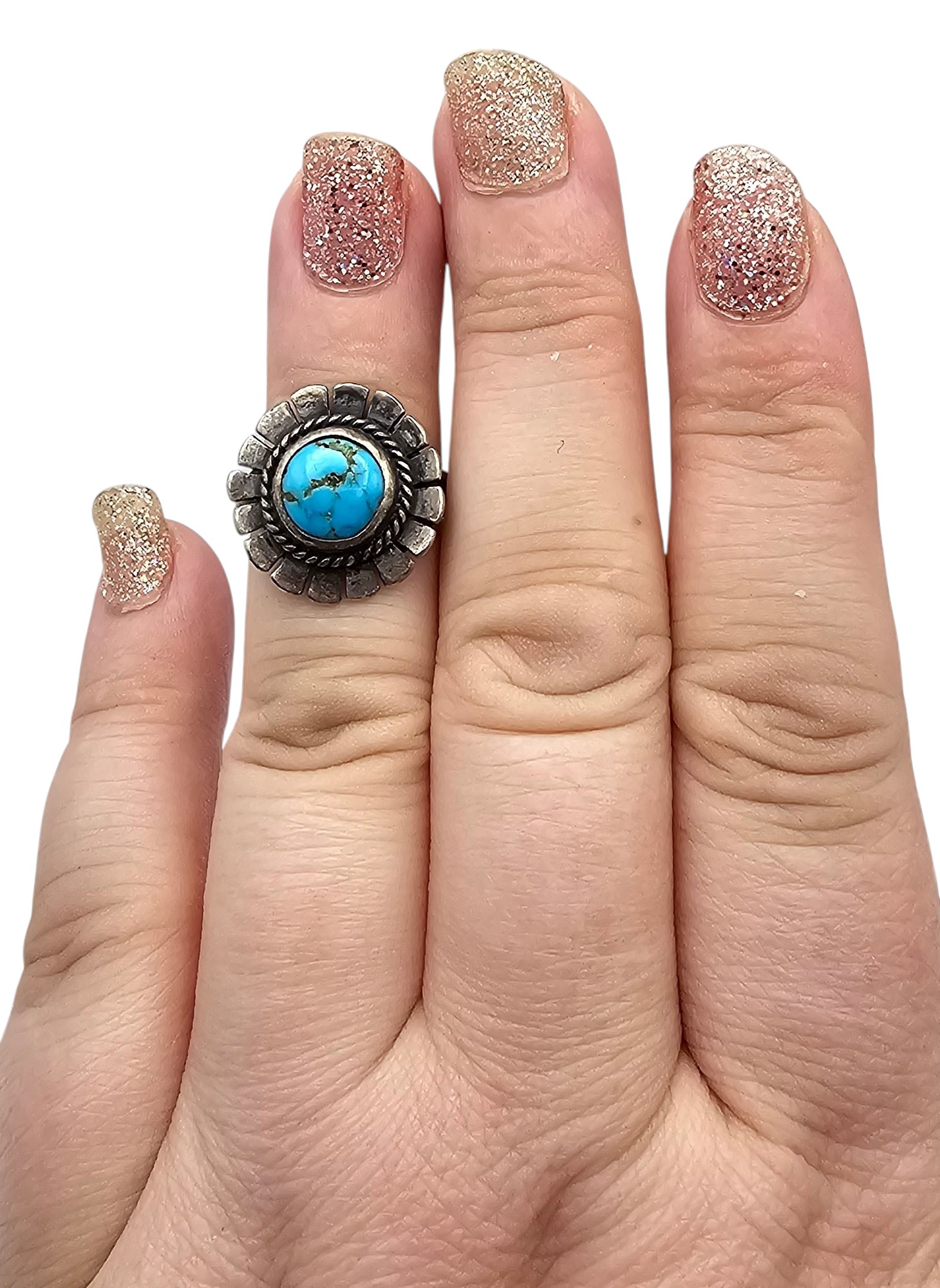 Native Turquoise Sterling Silver Ring Size 5.25 4.9 G