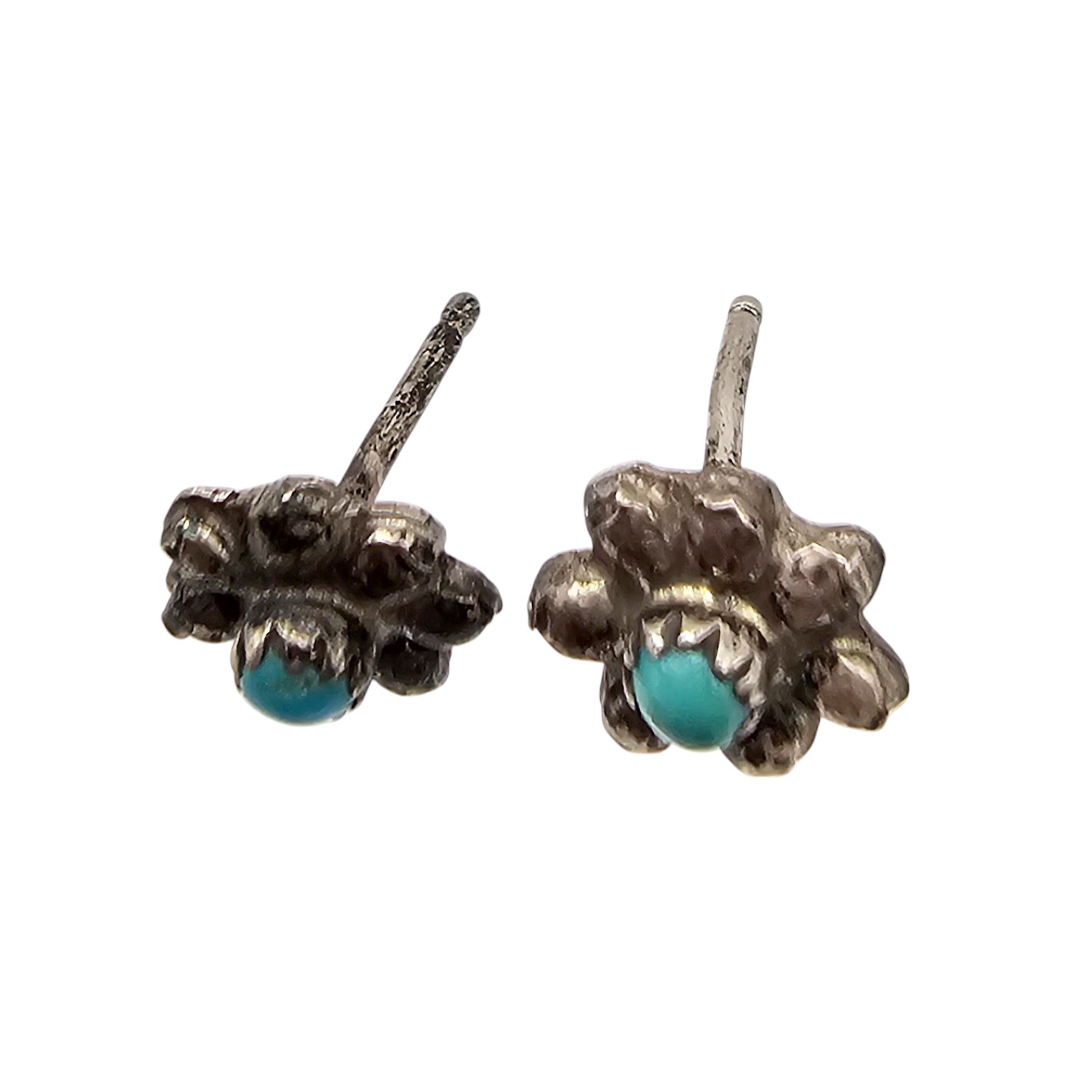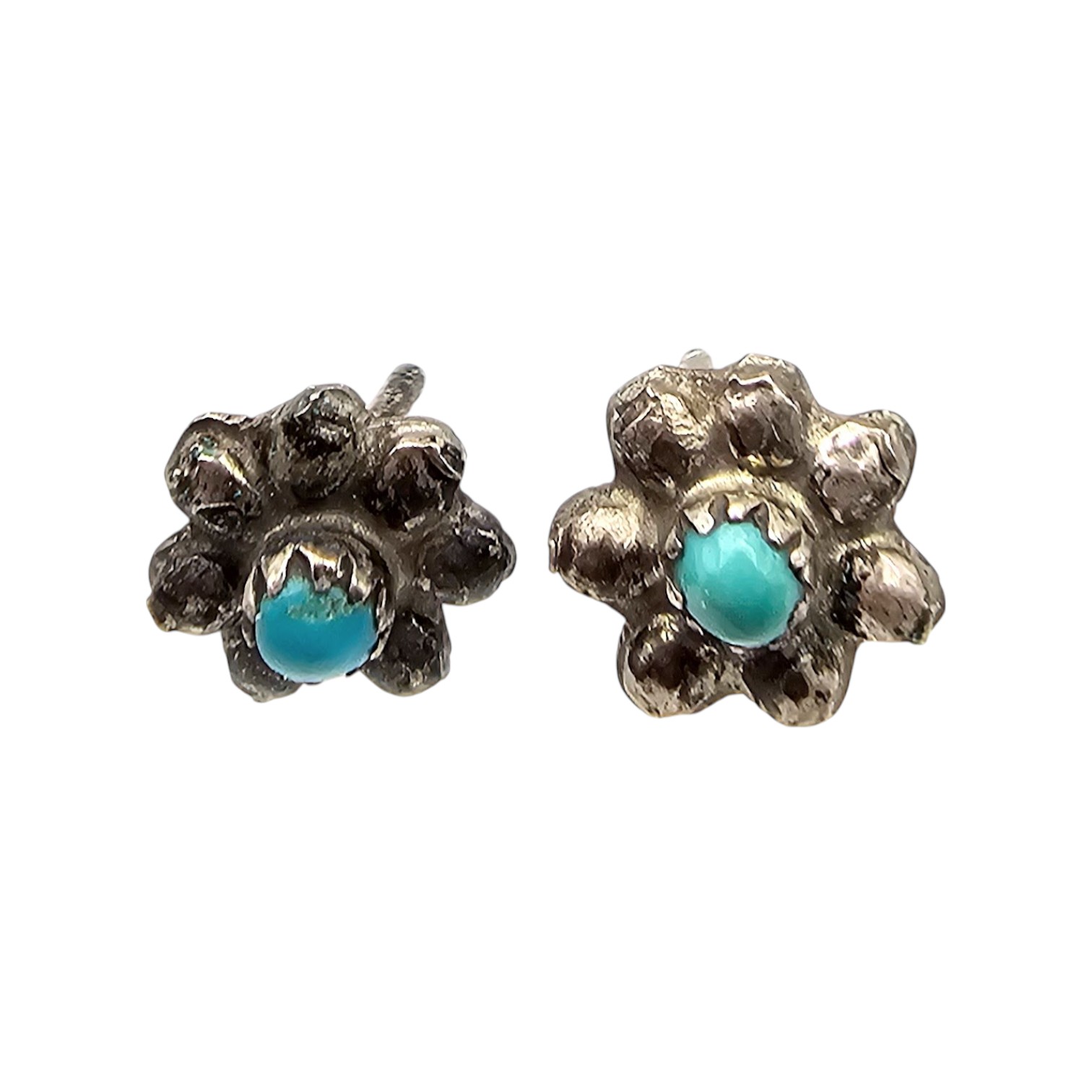 Native Turquoise Sterling Silver Flower Earrings 1.1 G