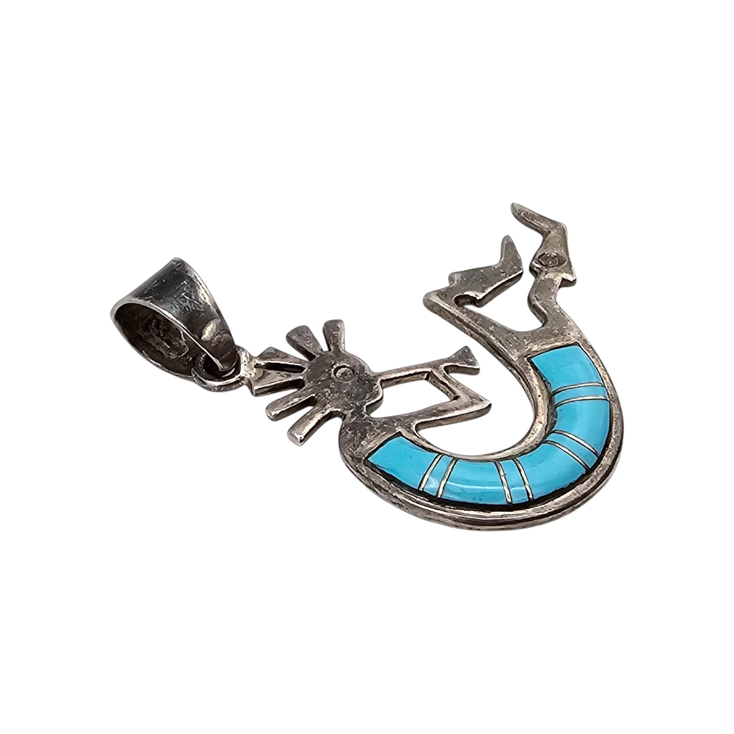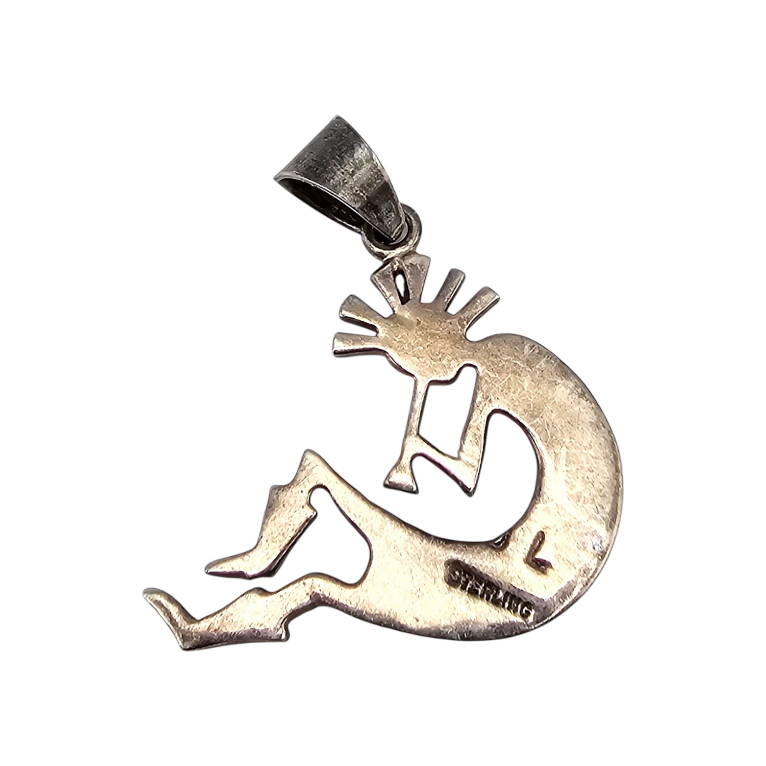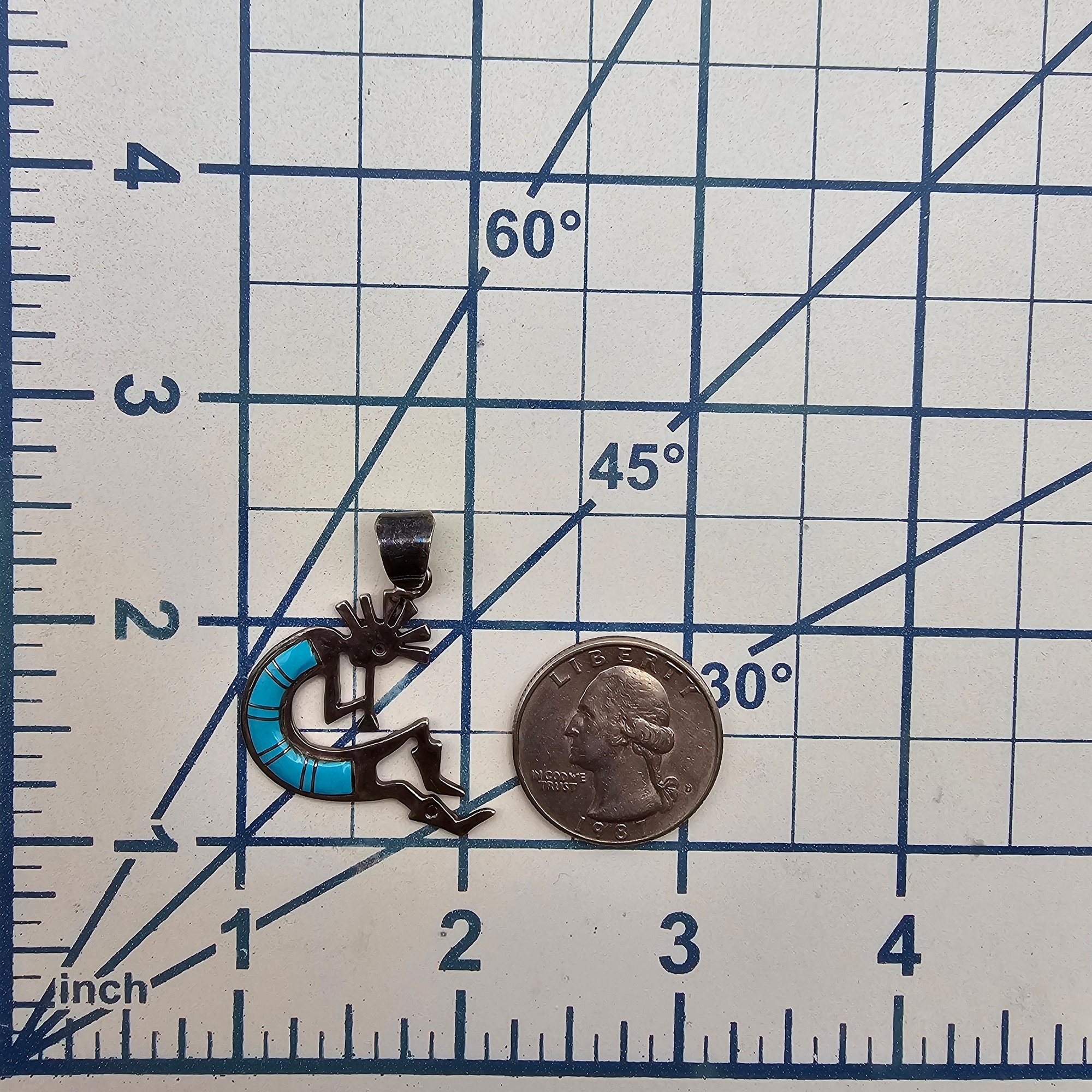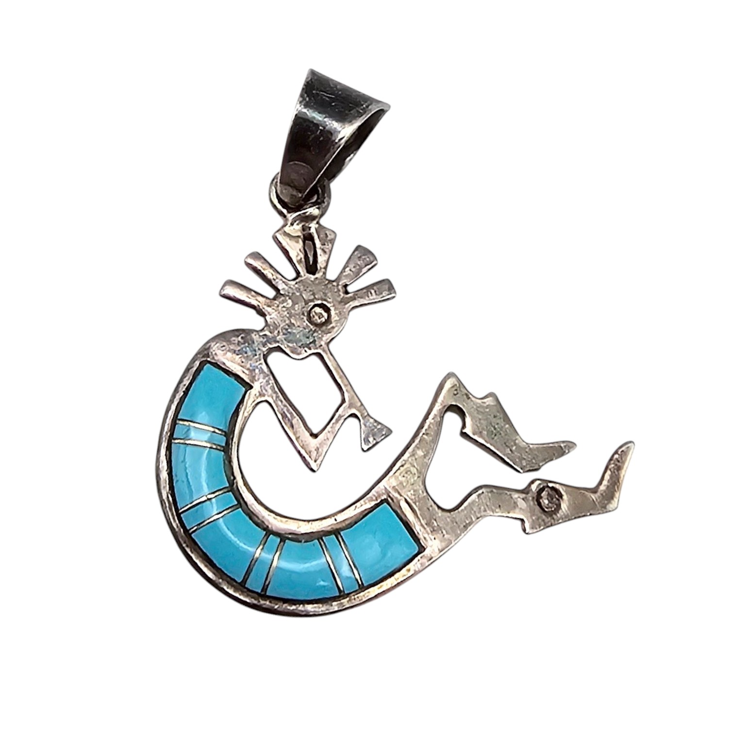 Signed L? Turquoise Sterling Silver Kokopelli Pendant 3.6 G