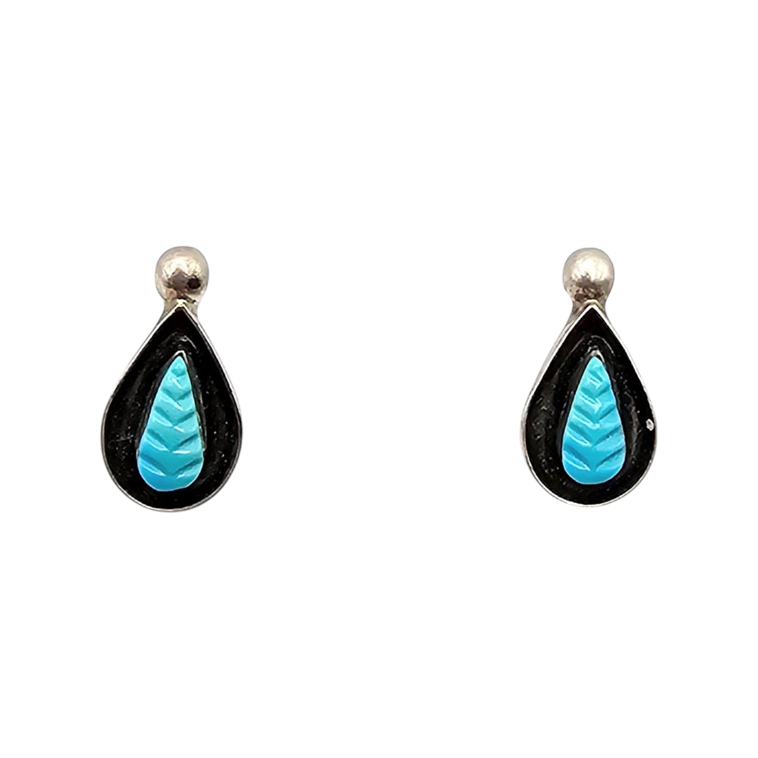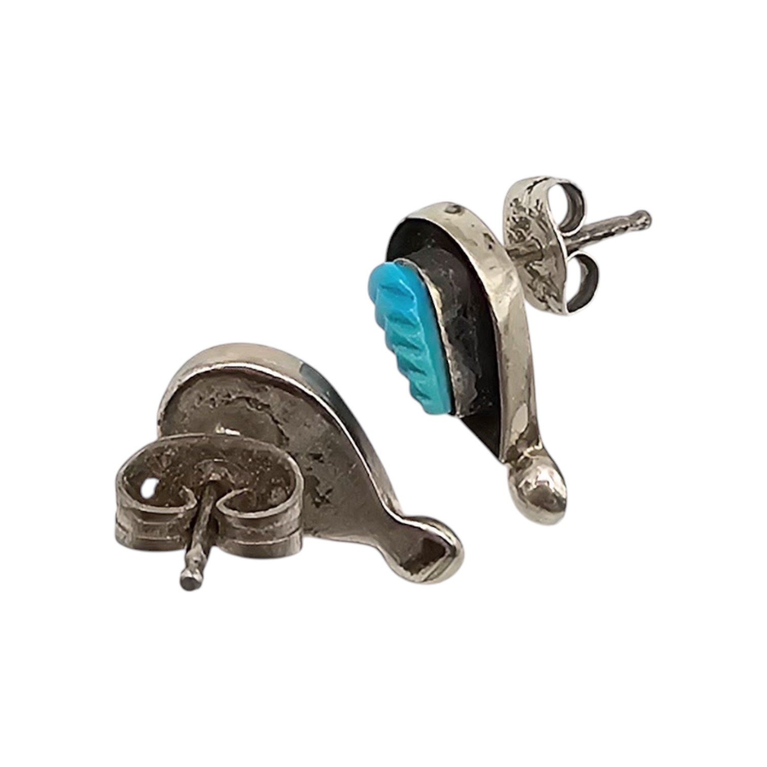 Native Carved Turquoise Sterling silver Earrings 1.5 G