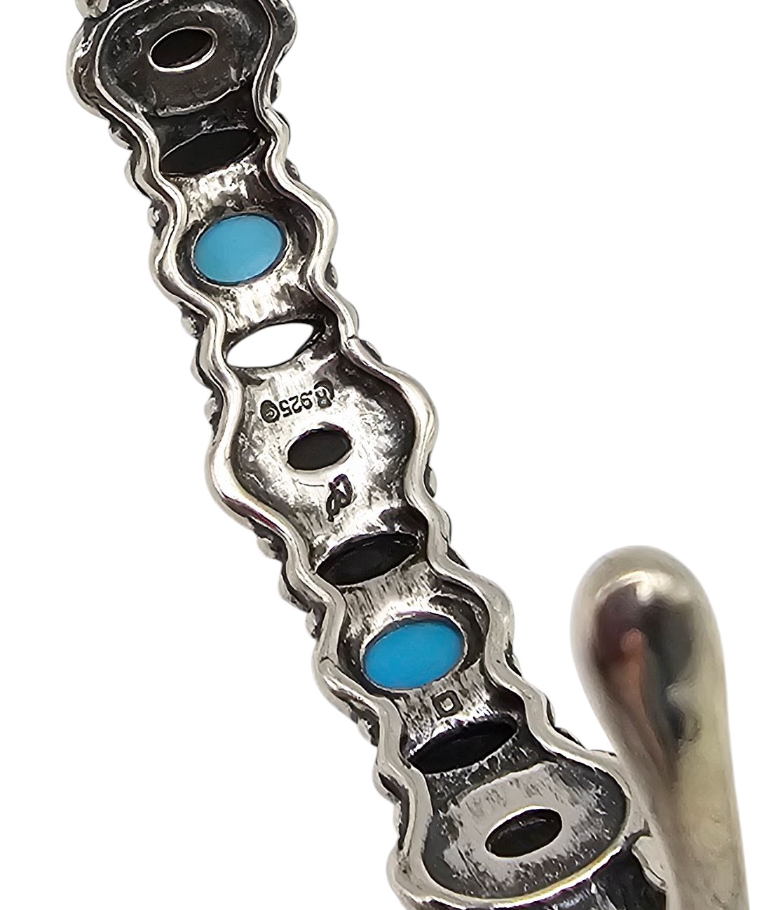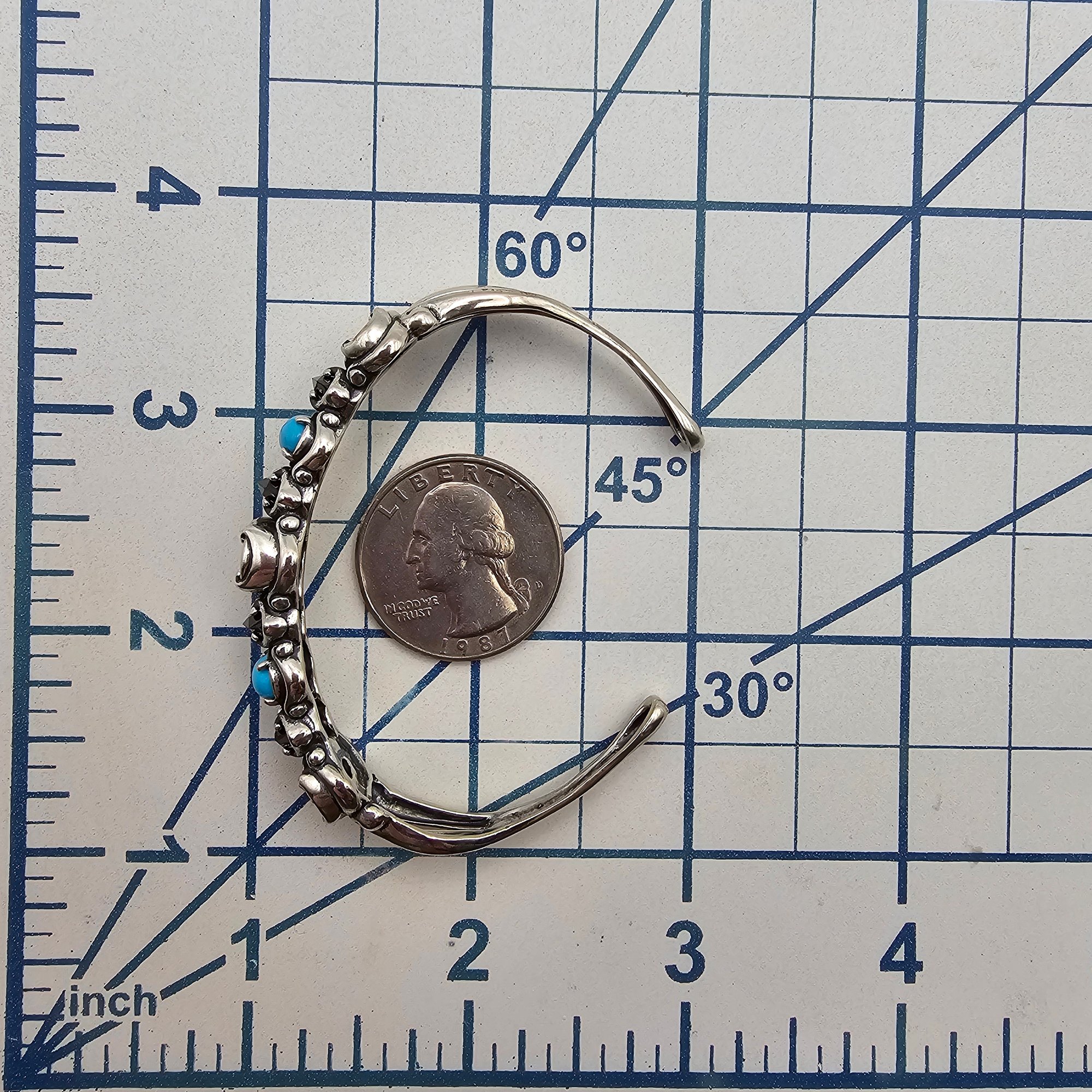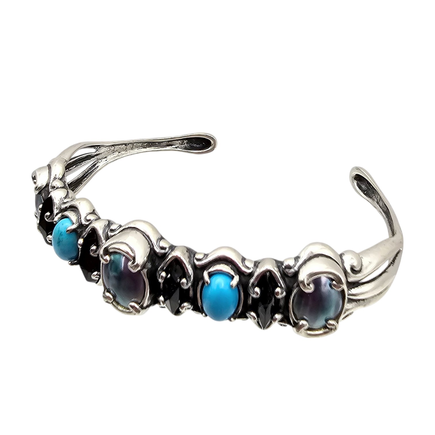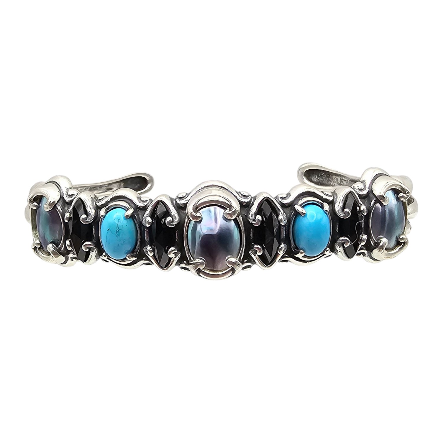 Old Carlisle Jewelry Albuquerque Onyx Pearl Turquoise Sterling Silver Cuff Bracelet 17.9 G