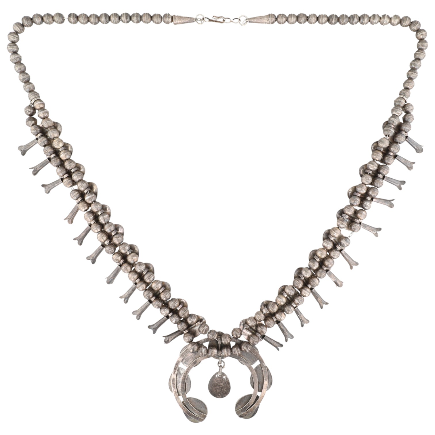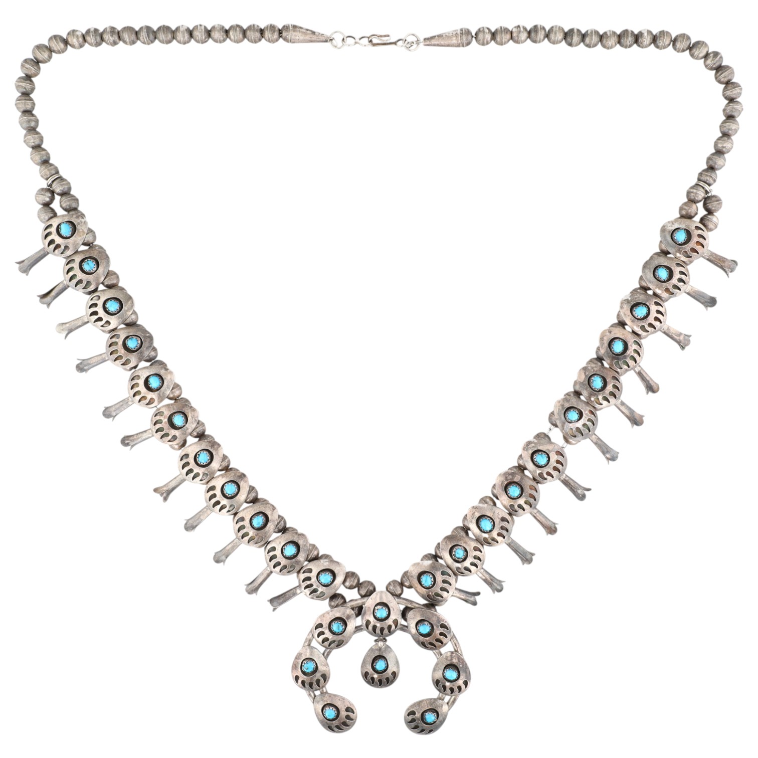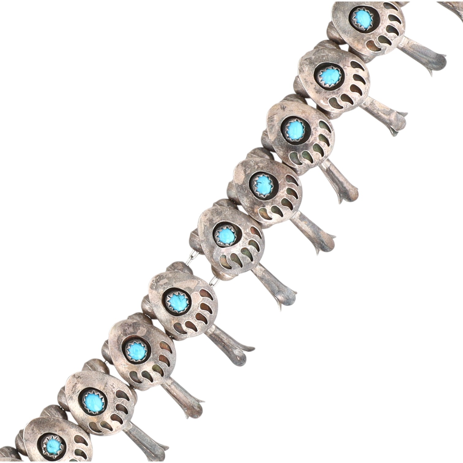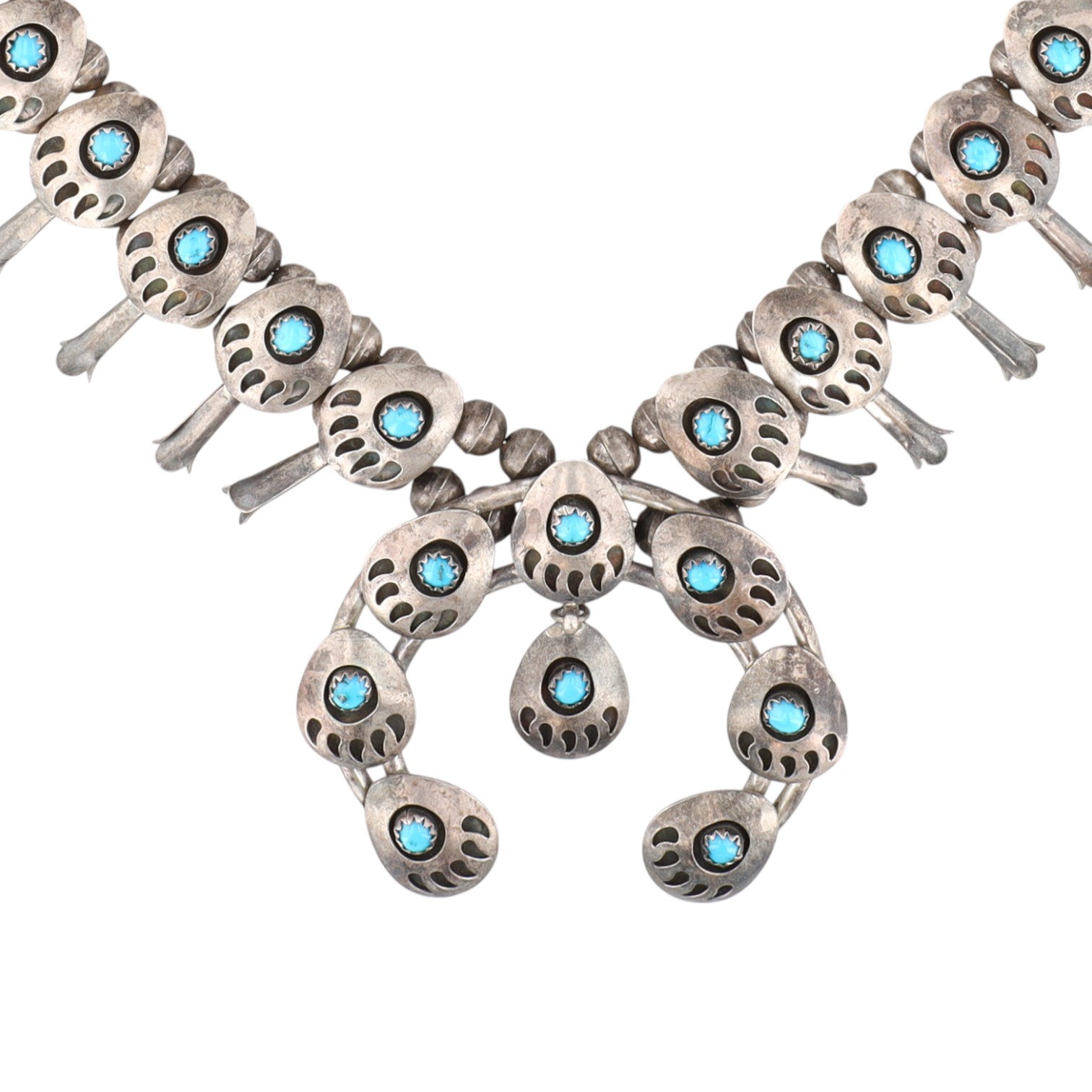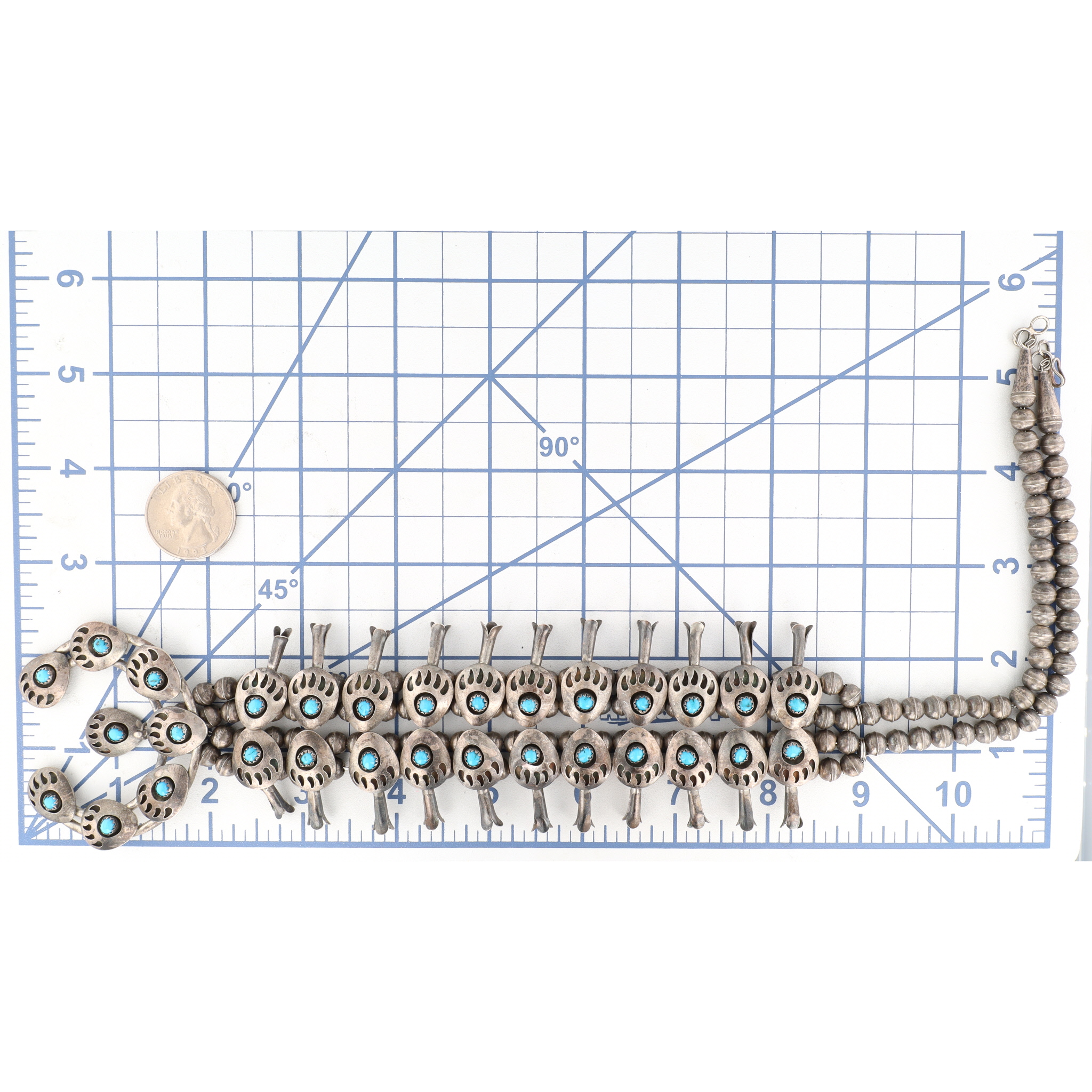 Vintage Navajo Sterling Turquoise Bear Paw Shadow Box Squash Blossom 80.5g