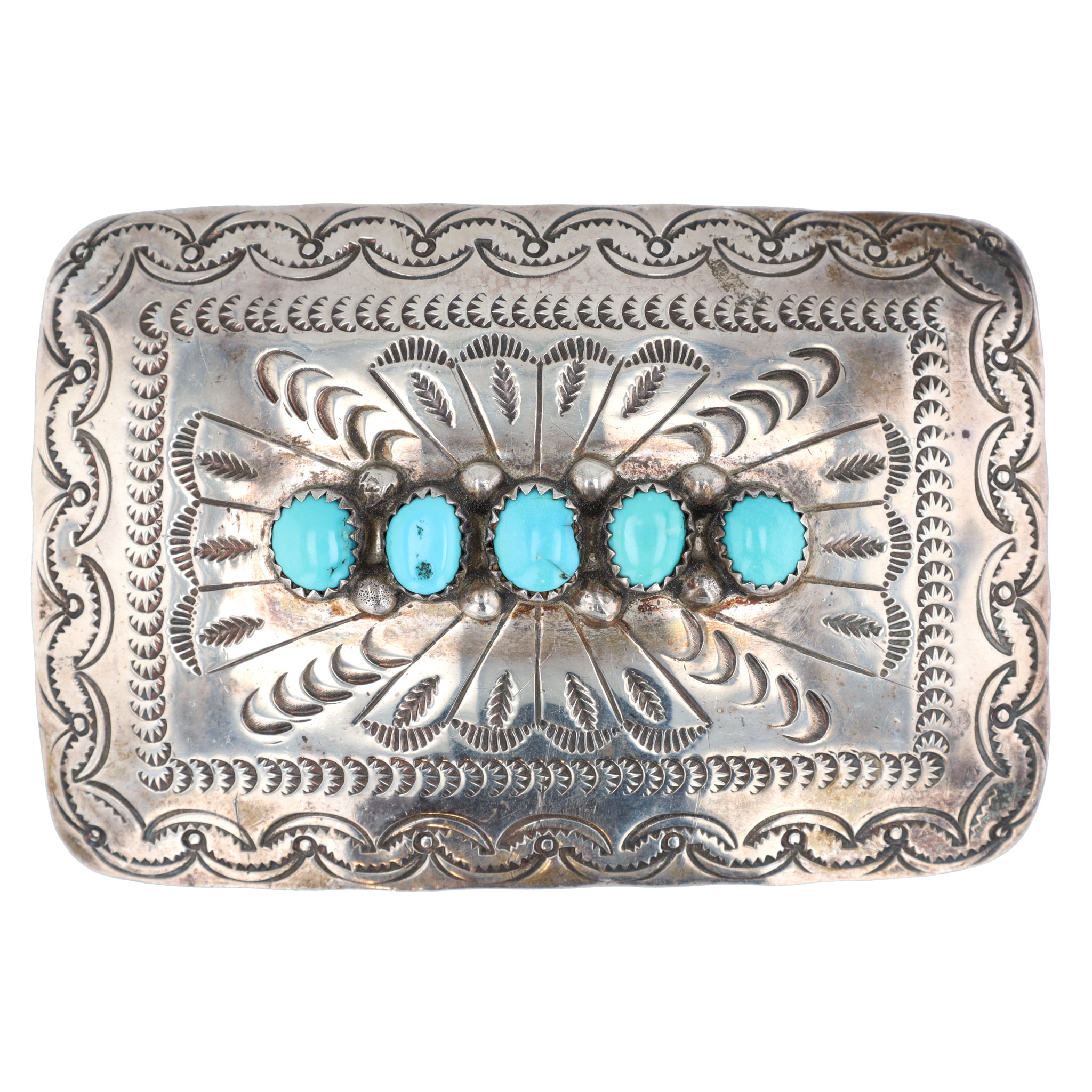 Vintage Navajo Sterling Turquoise Brooch 30g