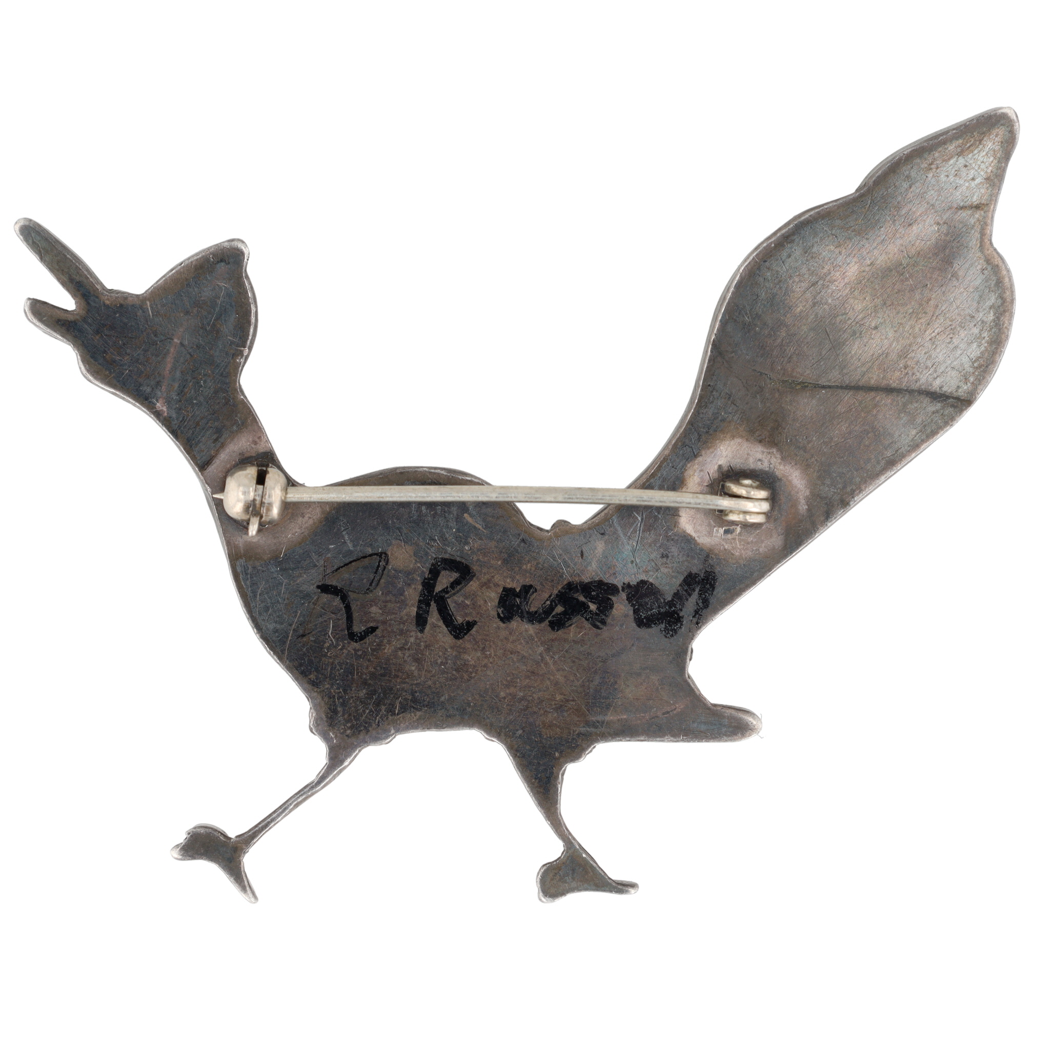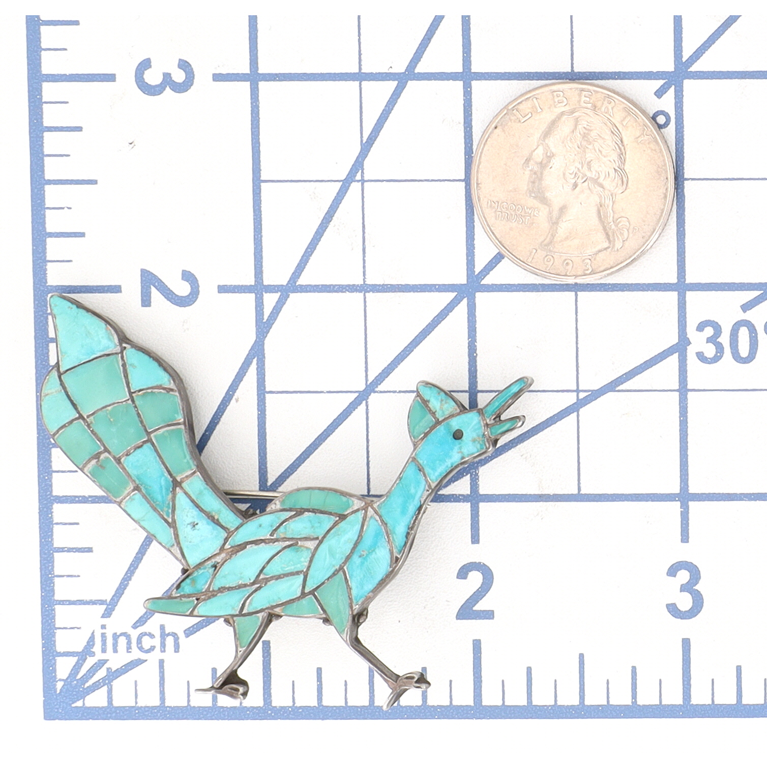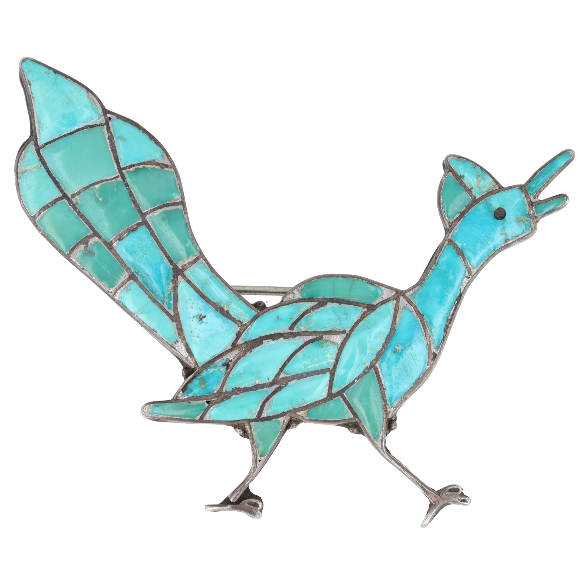 Vintage Navajo Sterling Turquoise Inlay Roadrunner Brooch 11g
