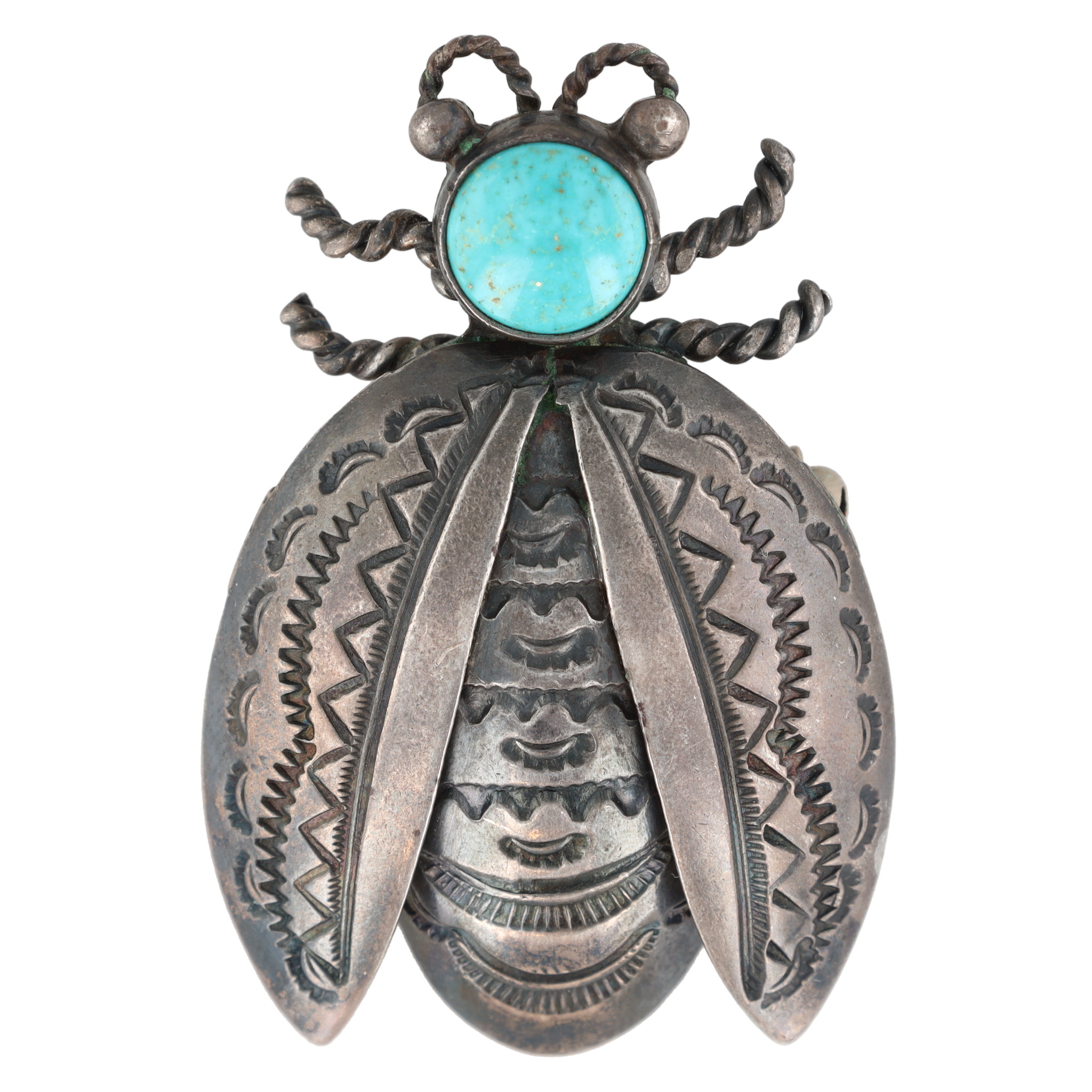 Vintage Navajo Sterling Turquoise Ladybug Brooch 12.5g