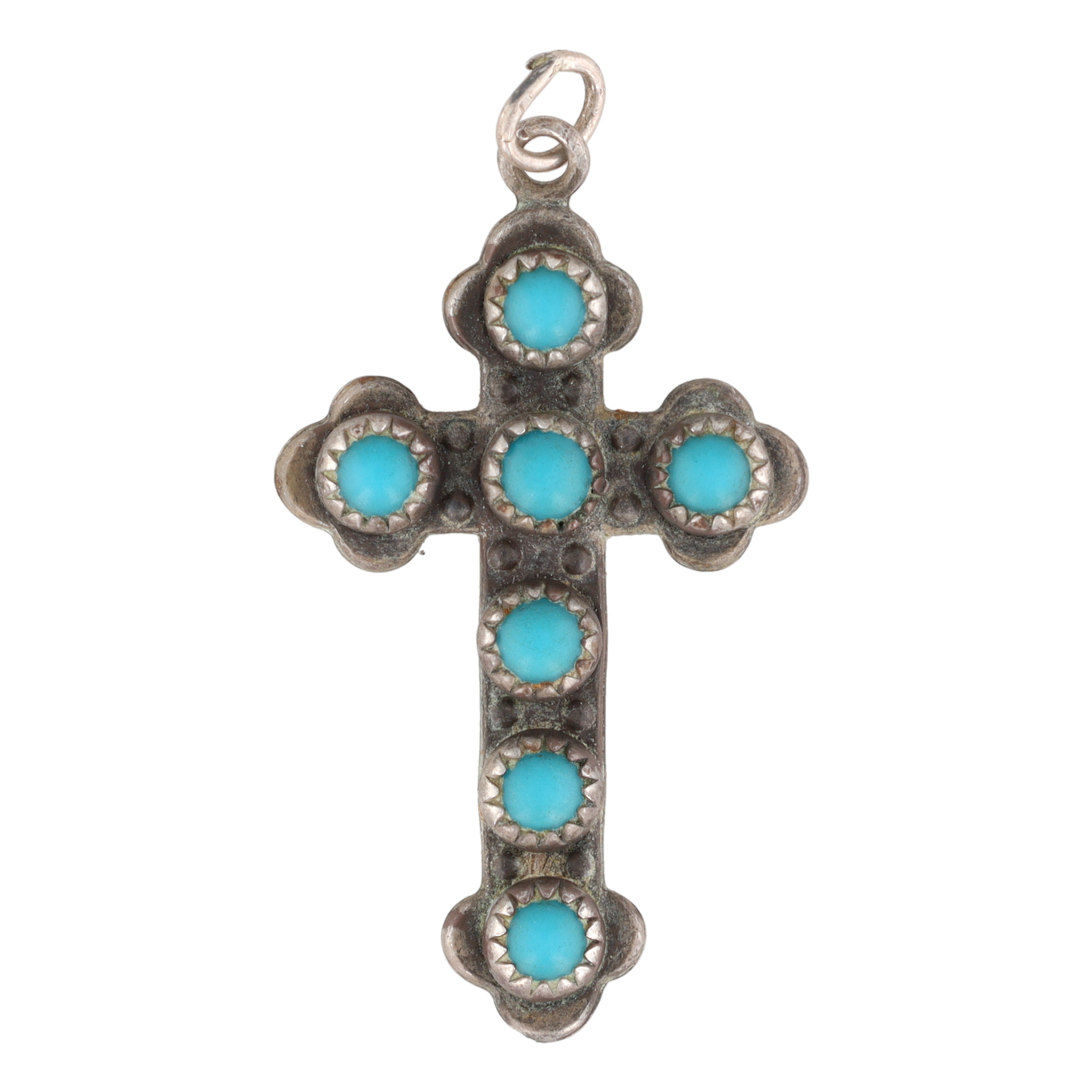 Bell Trading Post Sterling Snake Eye Turquoise Cross Pendant 2g