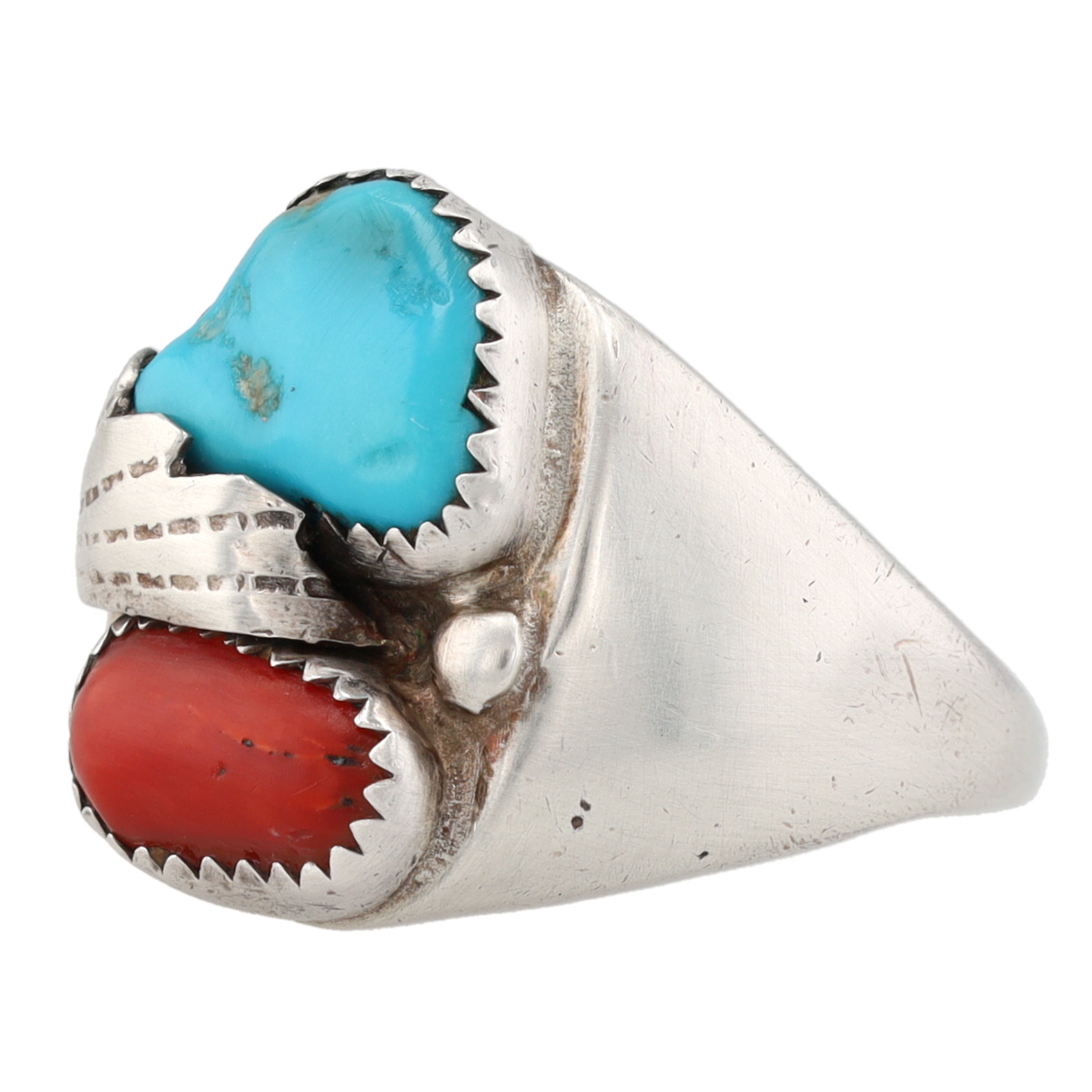 Vintage Navajo Sterling Multi Stone Ring Sz. 11.25, 17.5g