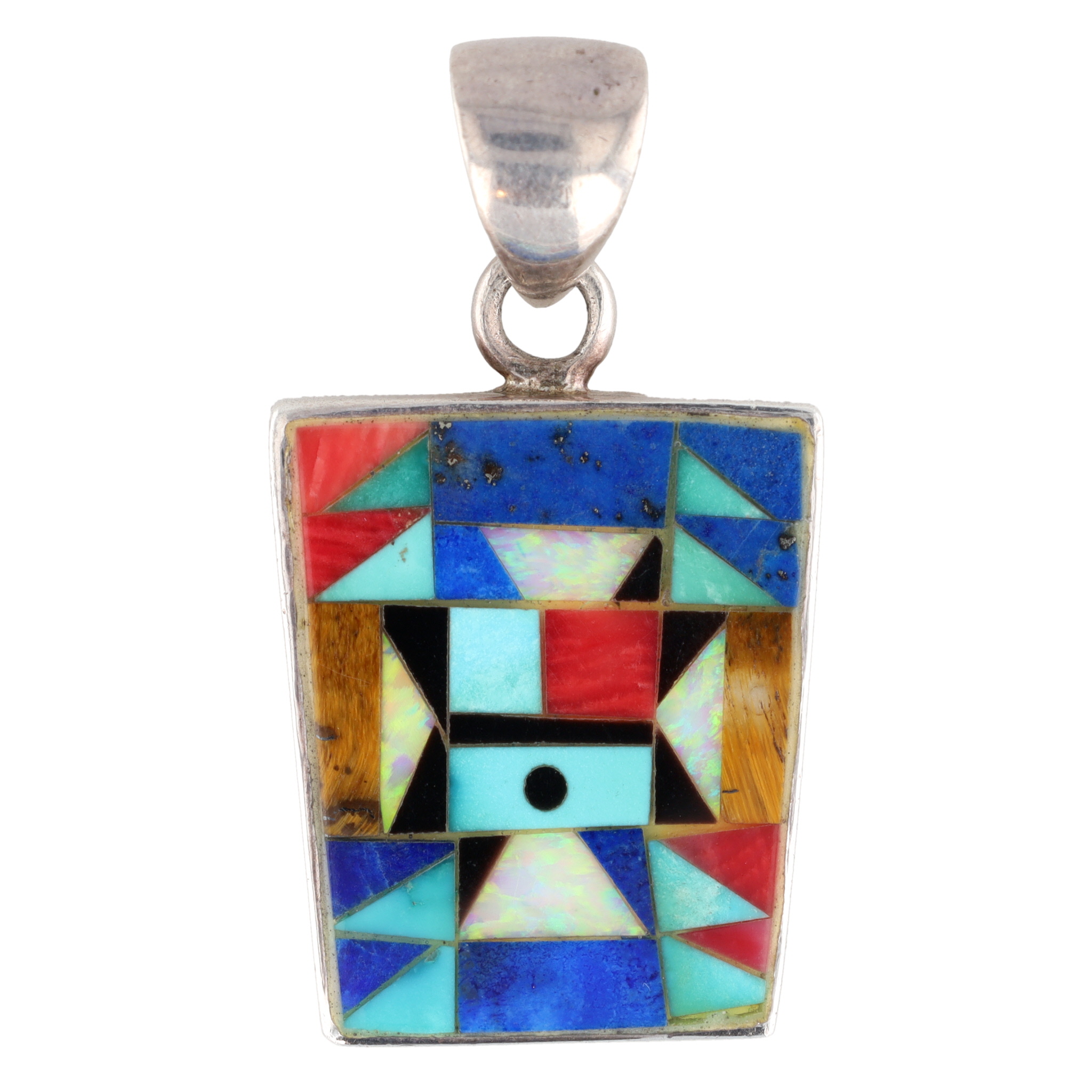 Vintage Navajo Sterling Multi Stone Sunface Inlay Pendant 8.5g