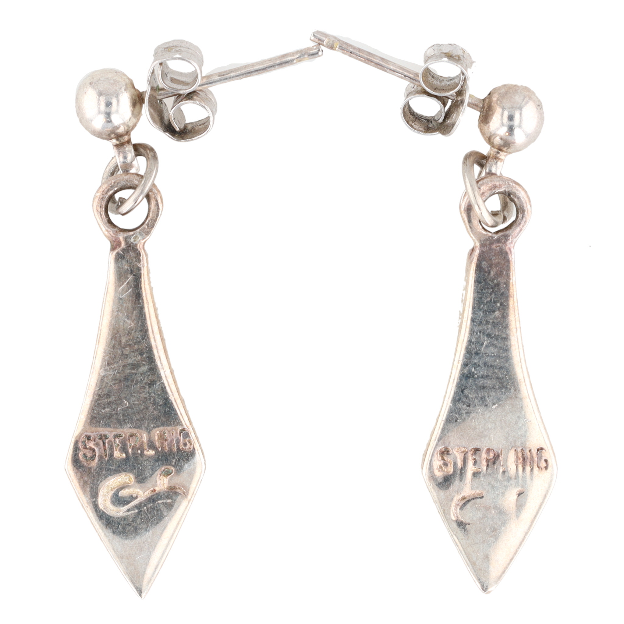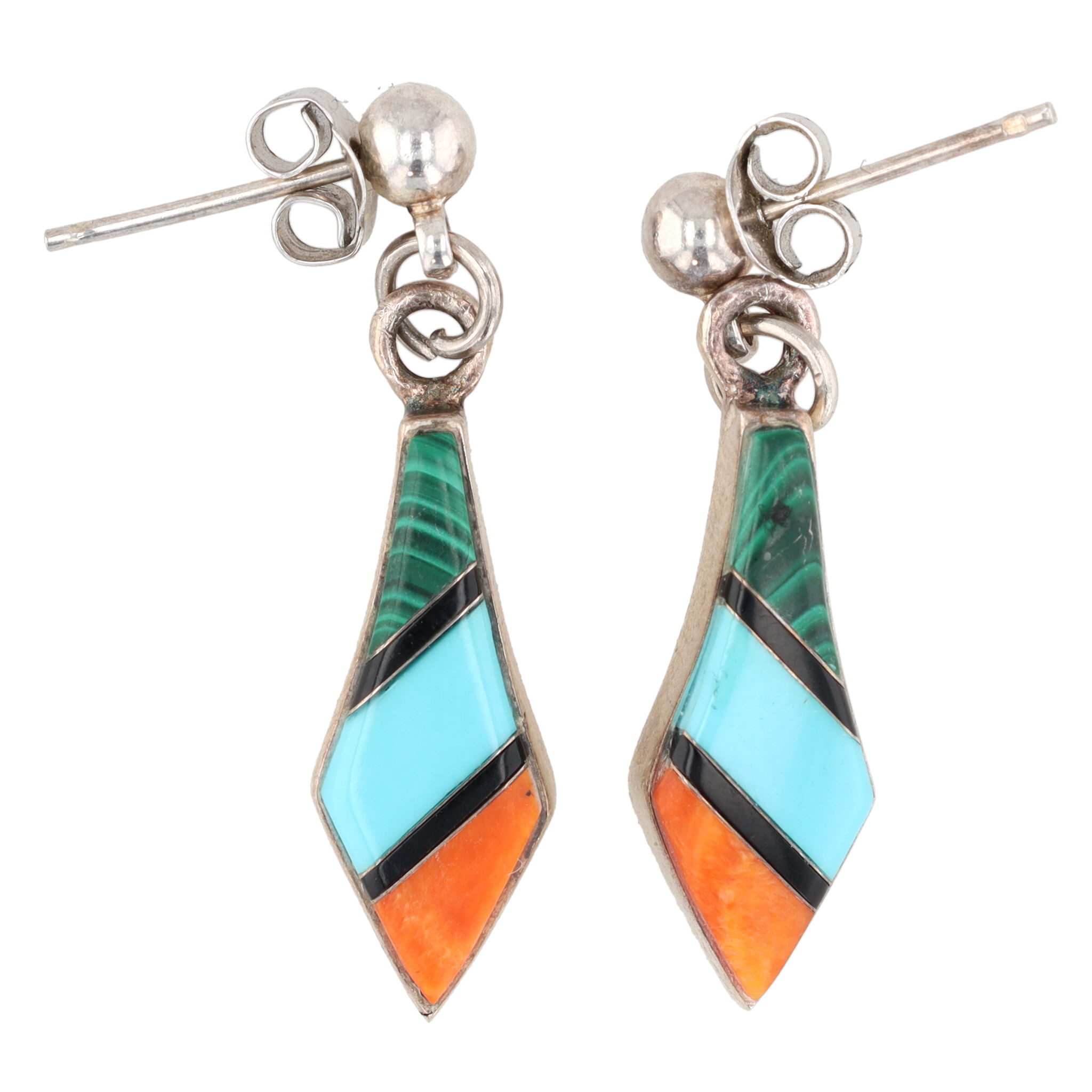Calvin Peterson Navajo Sterling Multi Stone Inlay Earrings 3.5g