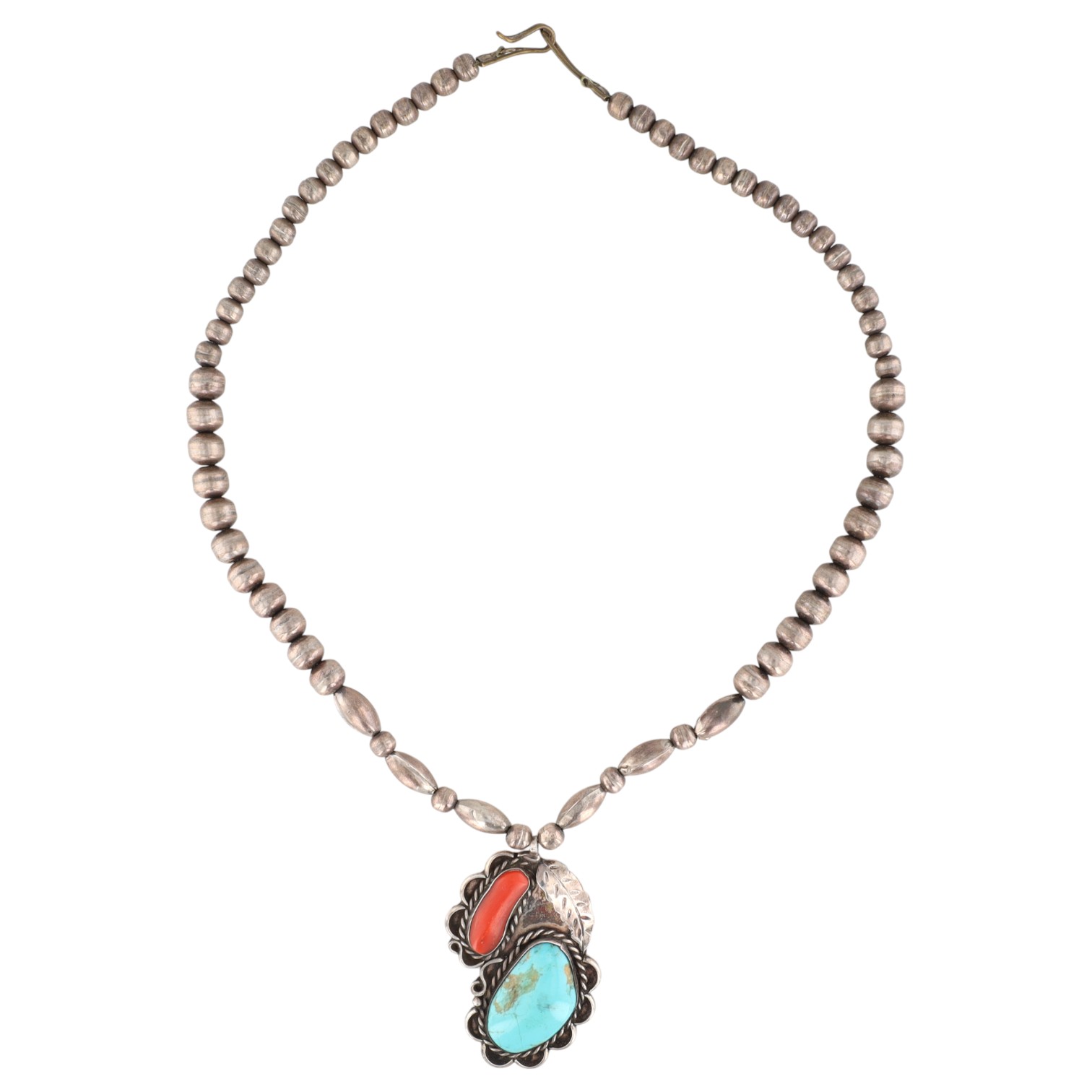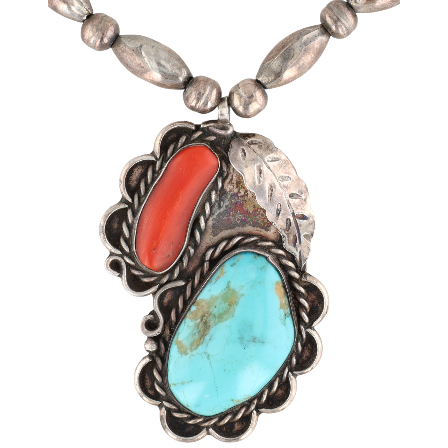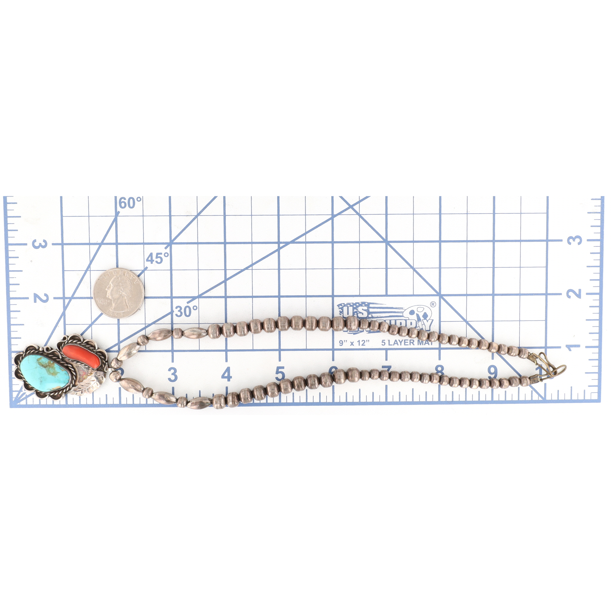 Vintage Navajo Sterling Turquoise Coral Choker 27.5g