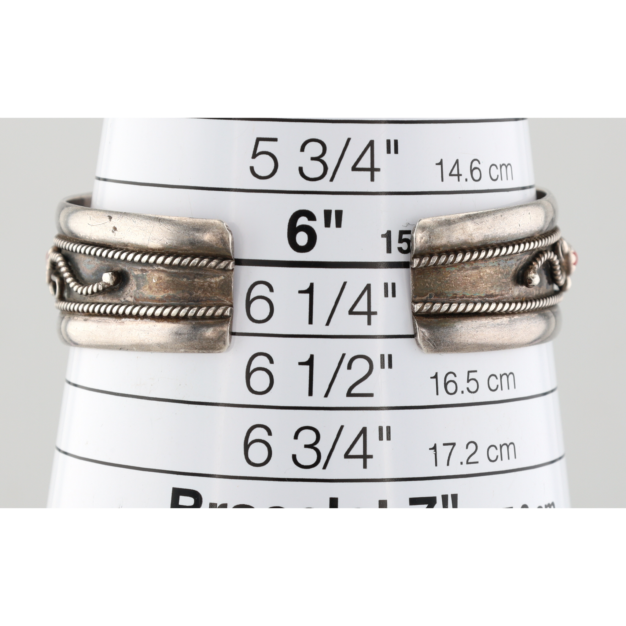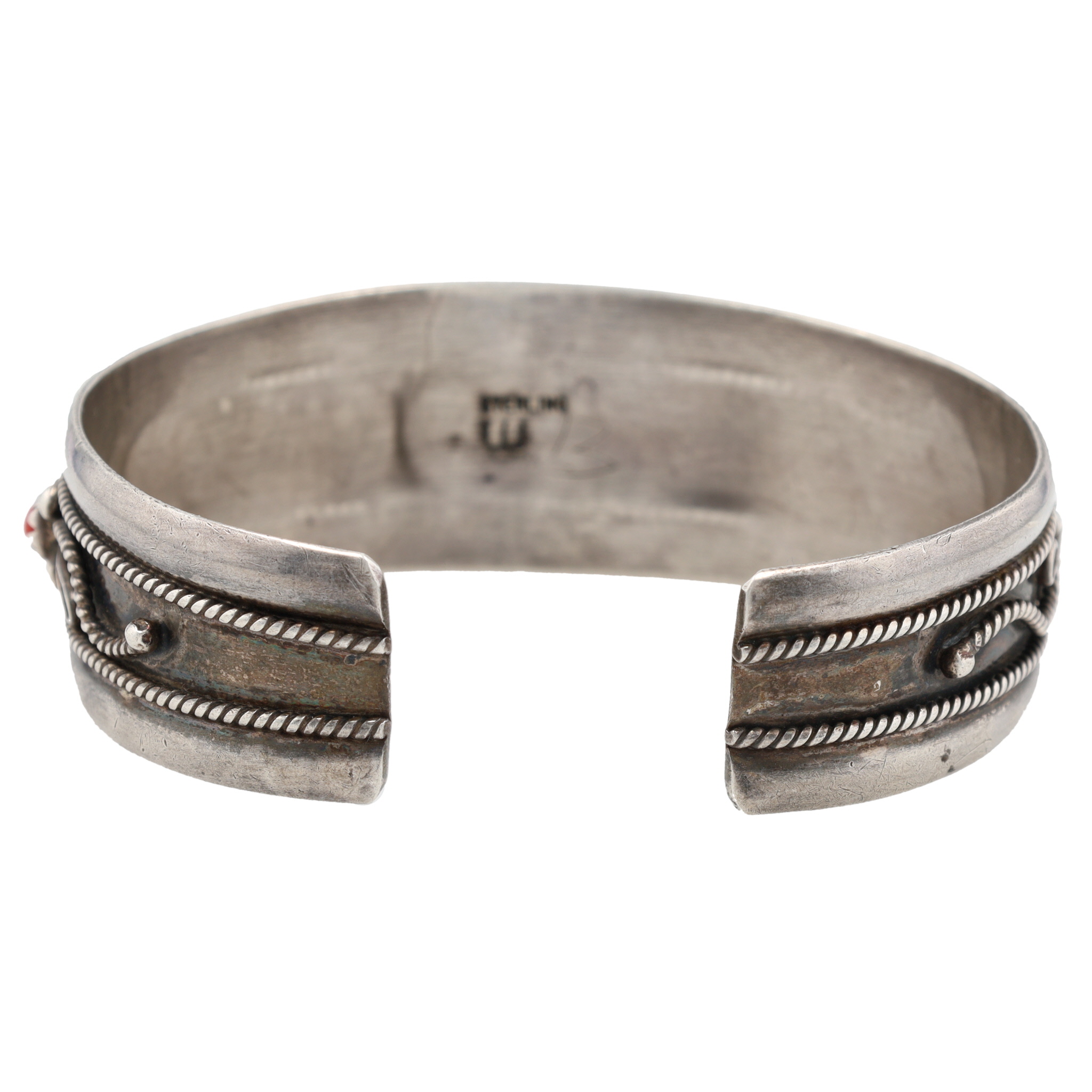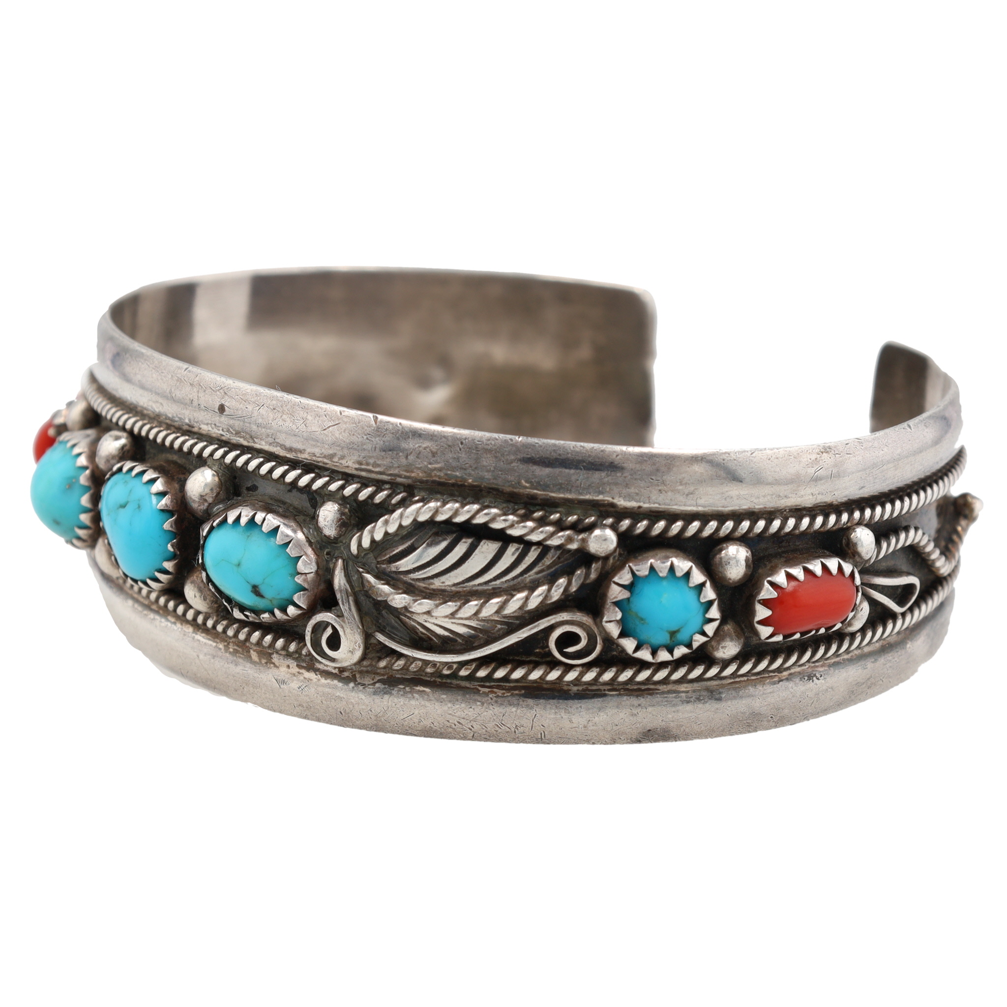 Signed W Navajo Sterling Turquoise Coral Cuff Bracelet 26g