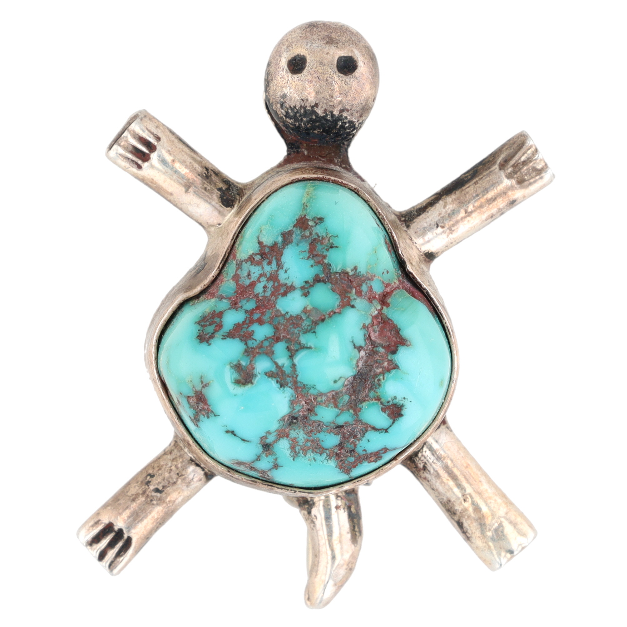 3 Hogan Sterling Turquoise Turtle Brooch 5.5g