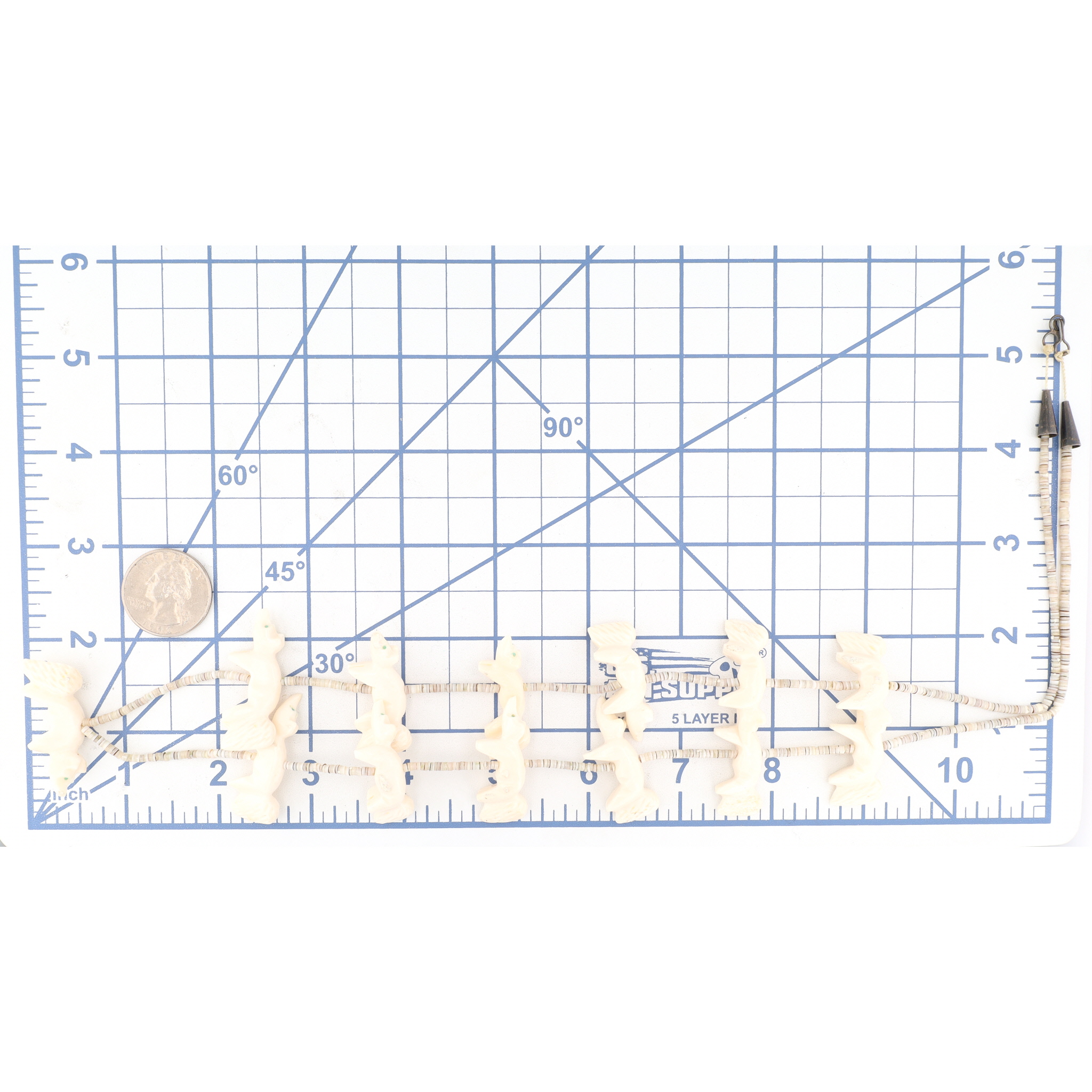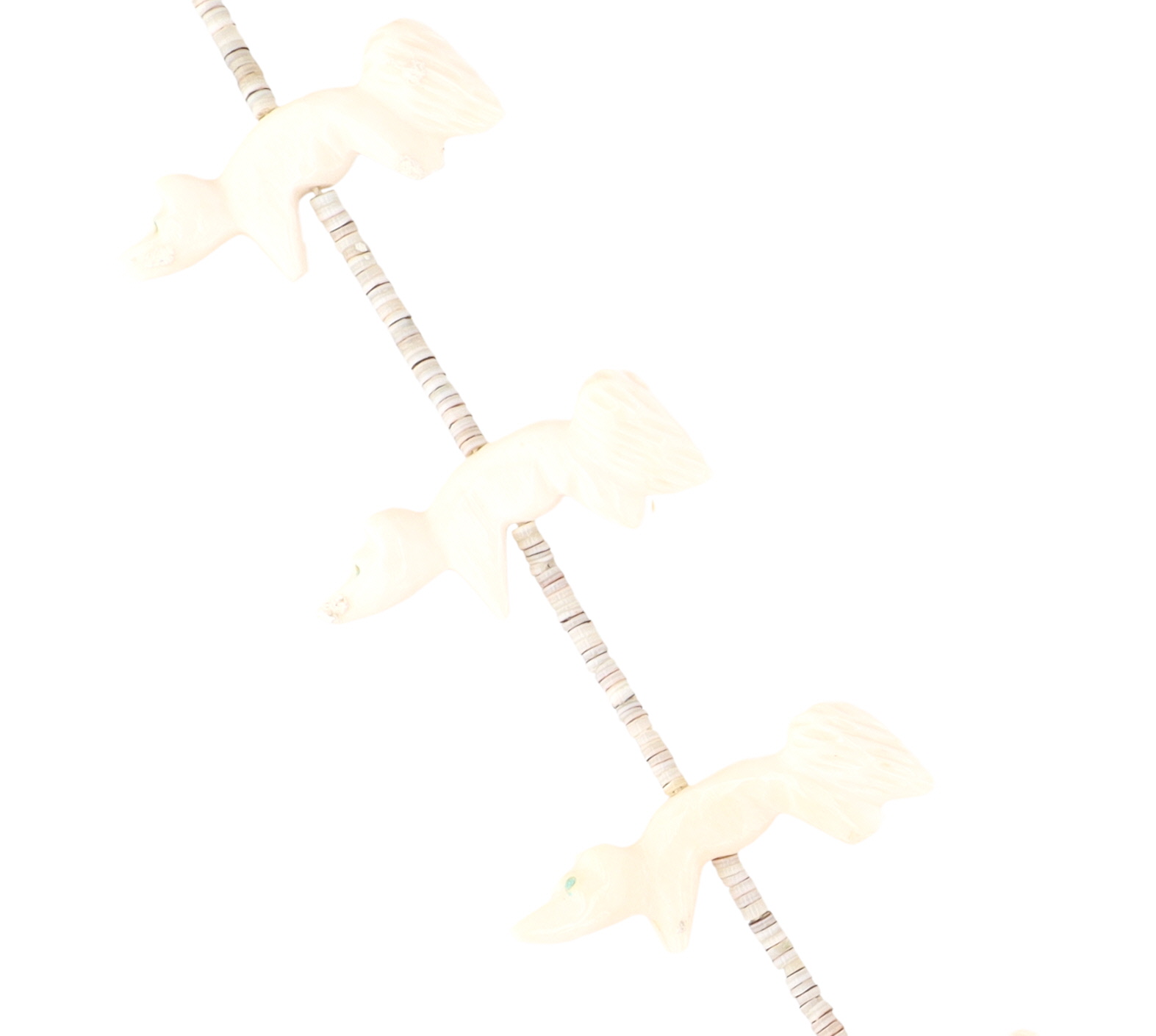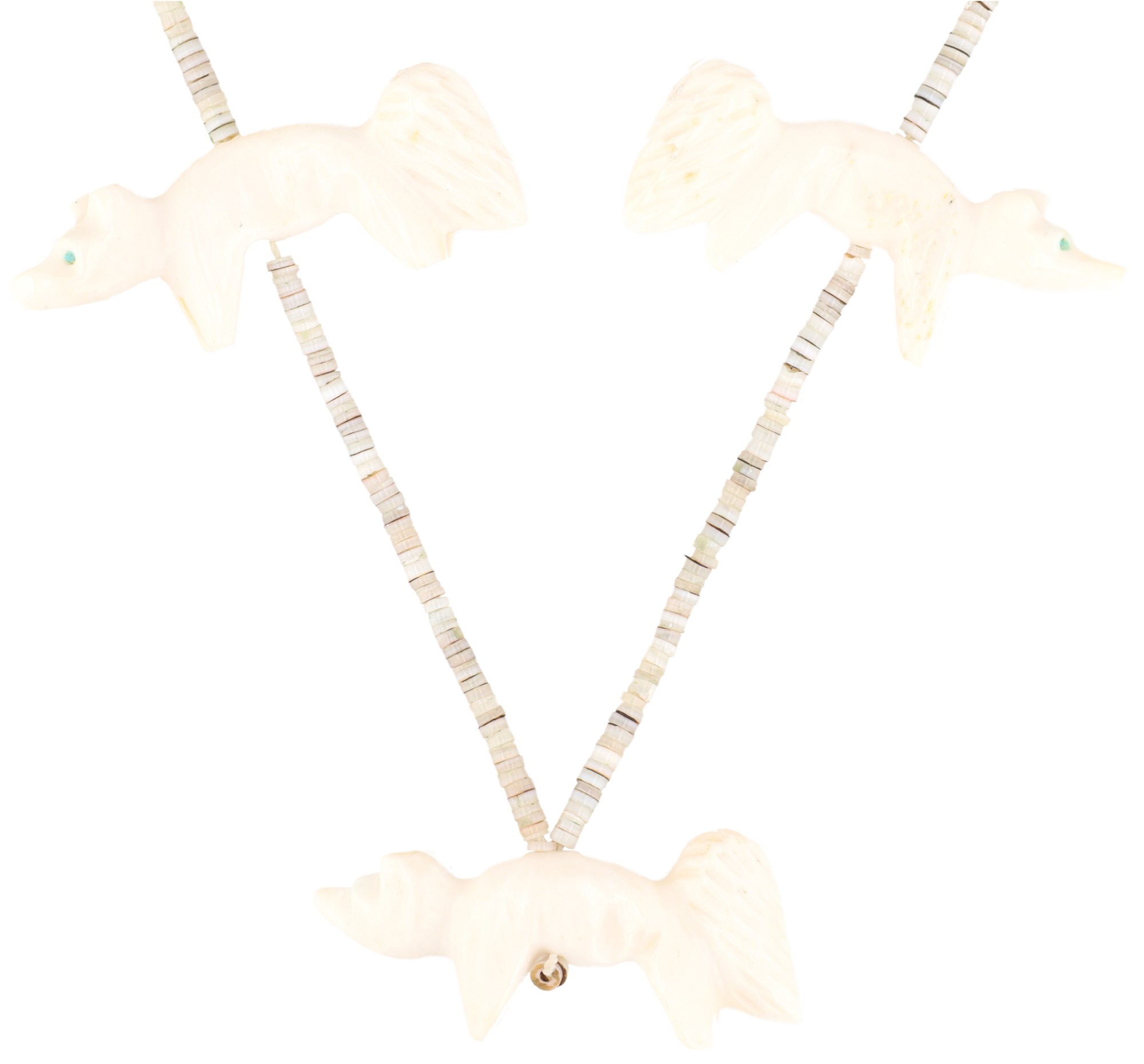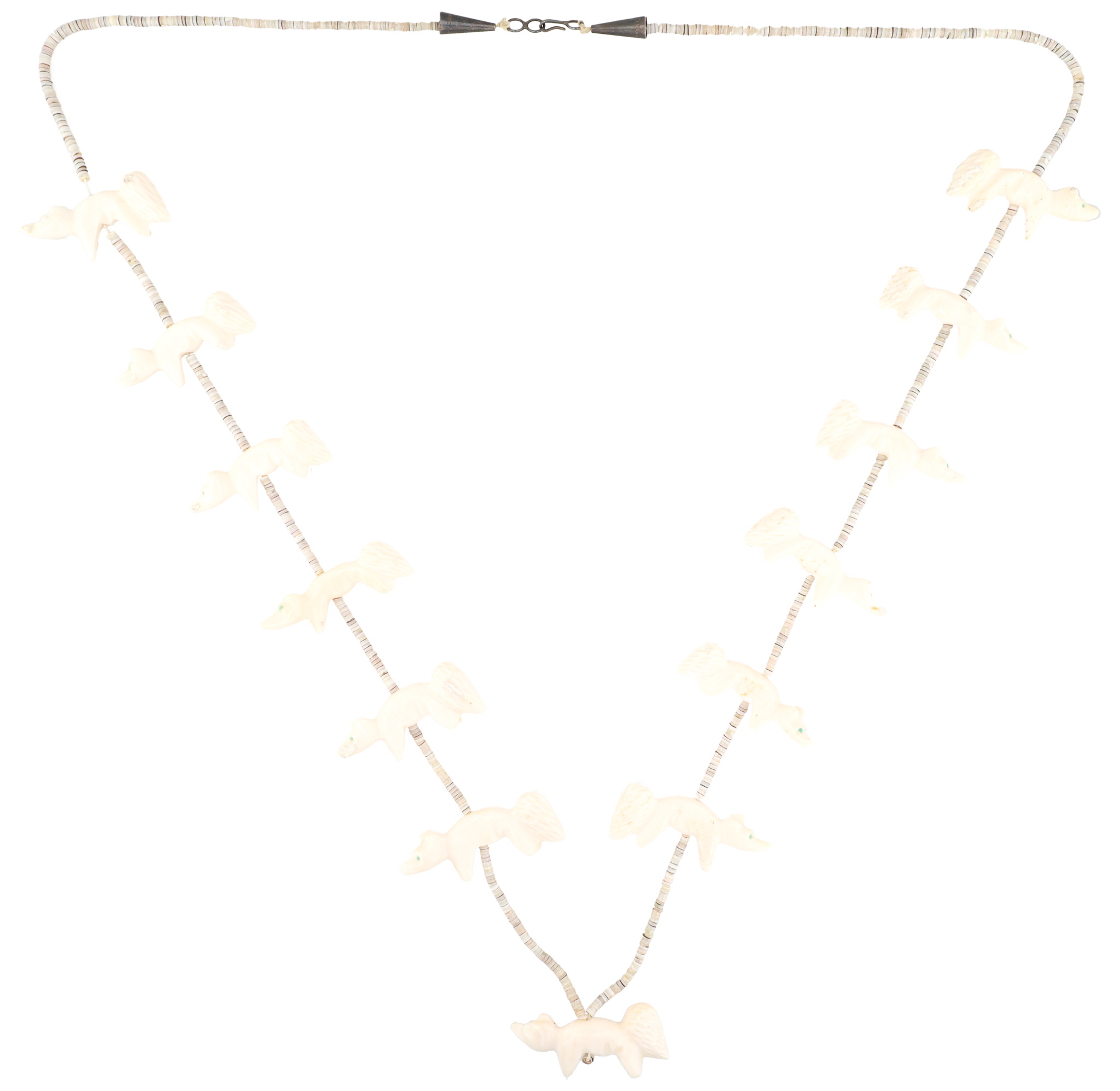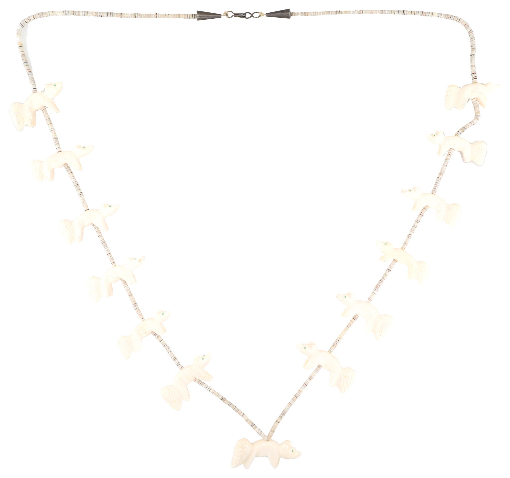 Vintage Zuni Sterling Carved Bone Fox Heishi Necklace 40g