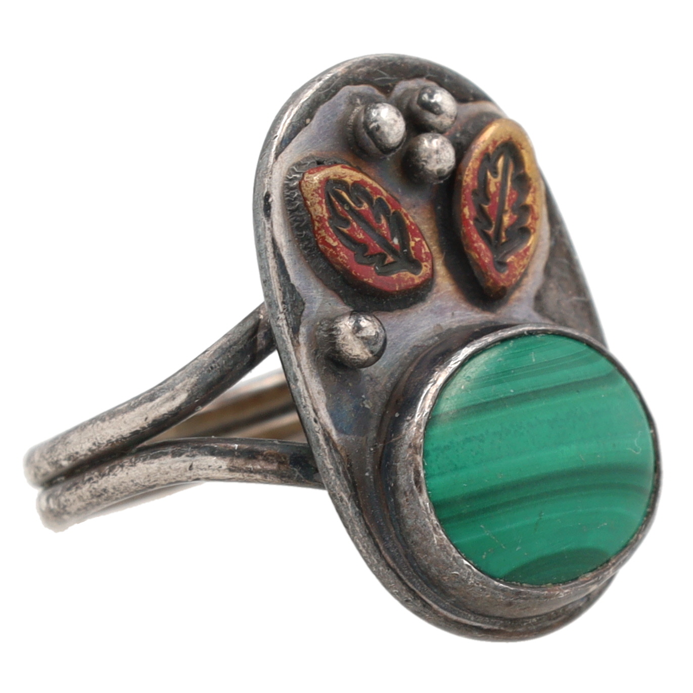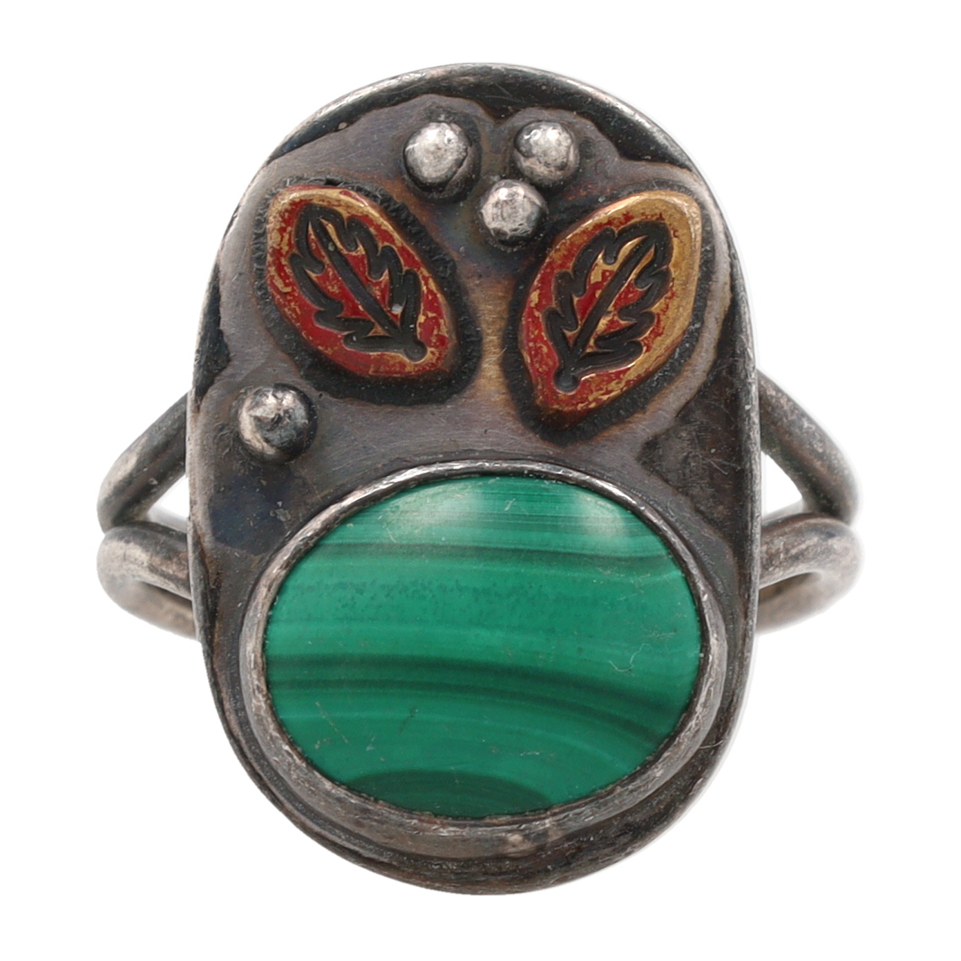 Signed GROWING WT Sterling Malachite Ring Sz. 7.5, 7.5g
