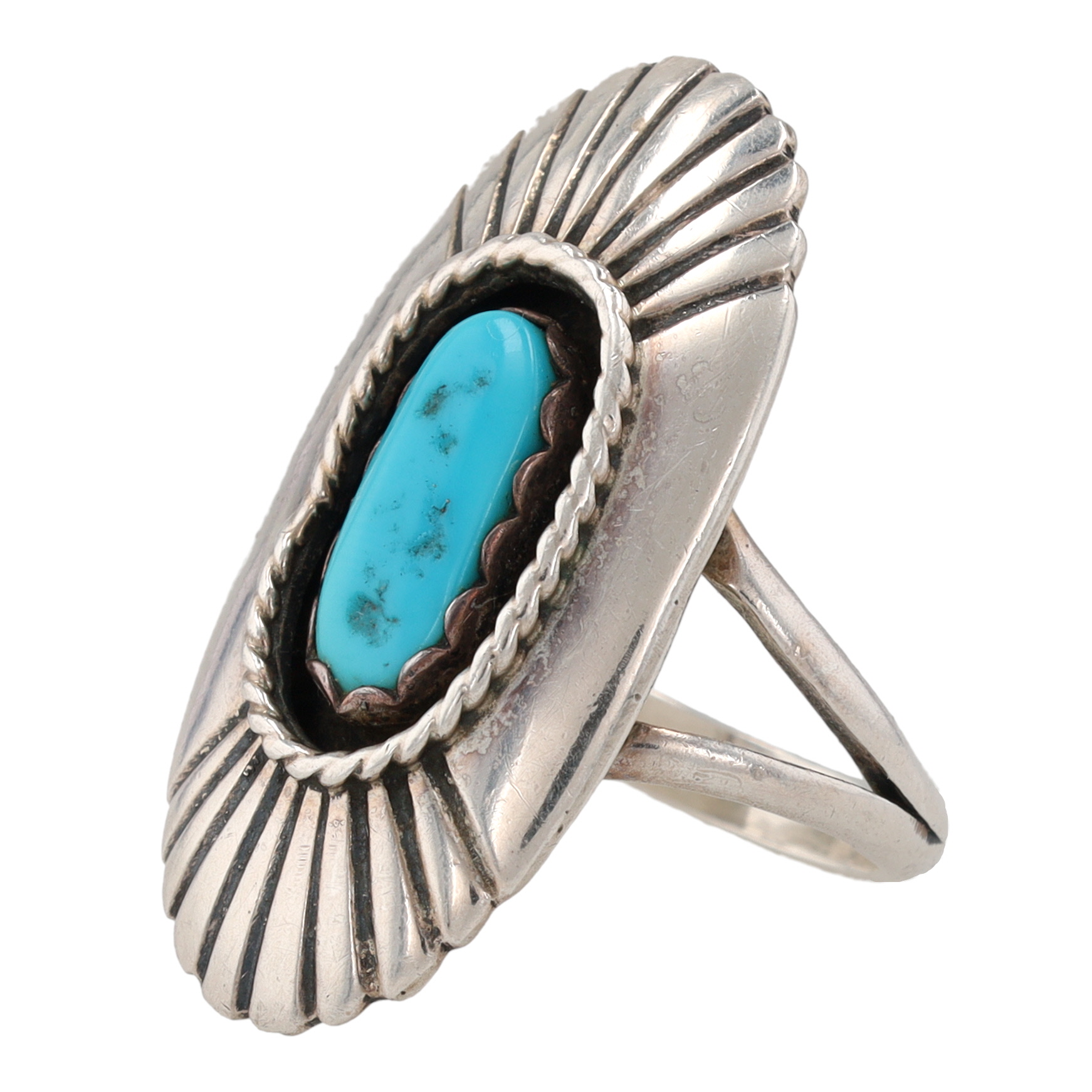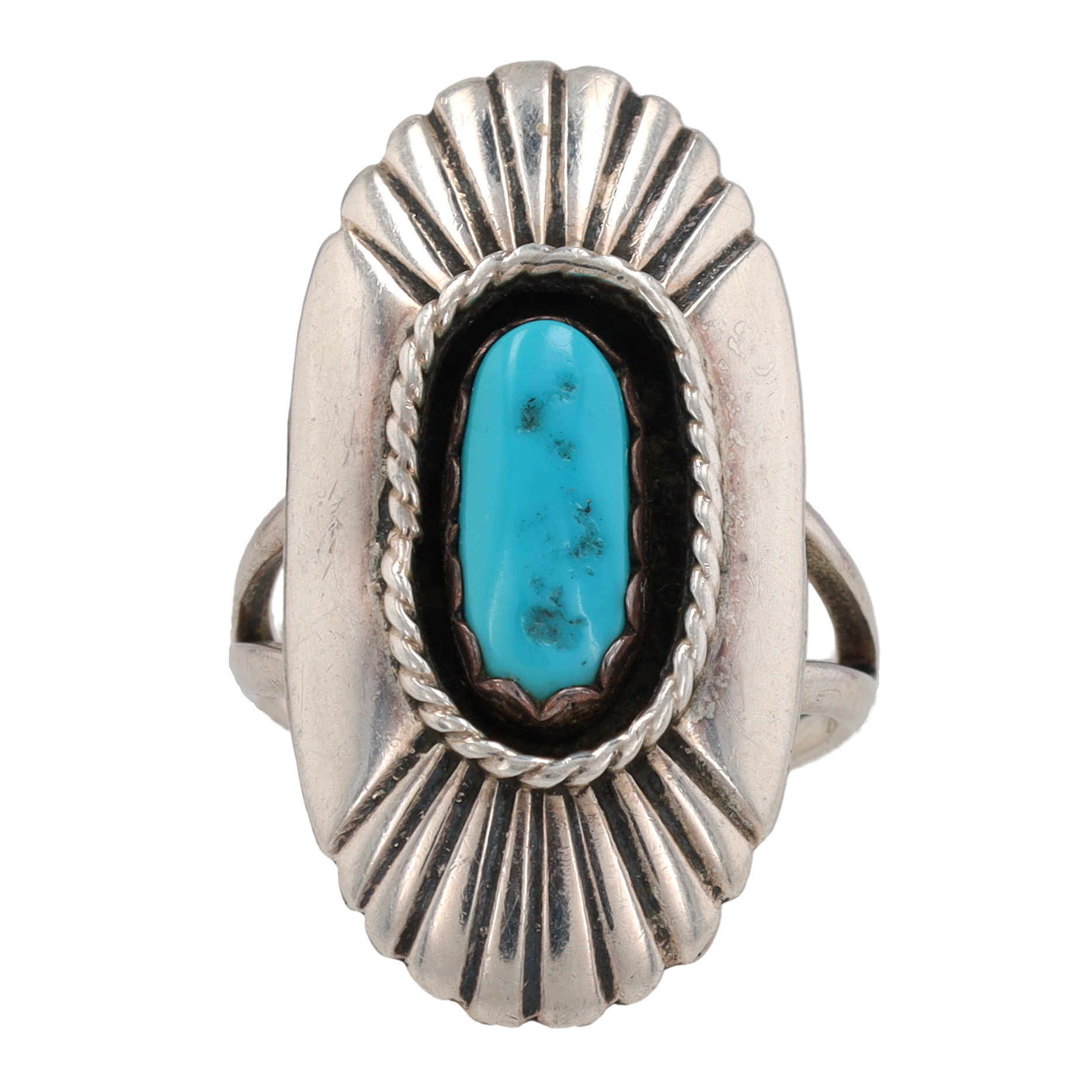 Vernon Judy Wallace Zuni Sterling Turquoise Ring Sz. 7.5, 7.5g