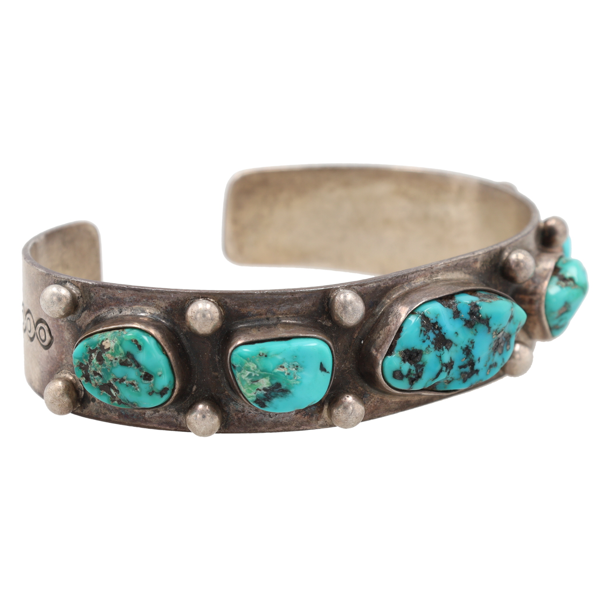 Vintage Navajo Sterling Turquoise Cuff Bracelet 34g