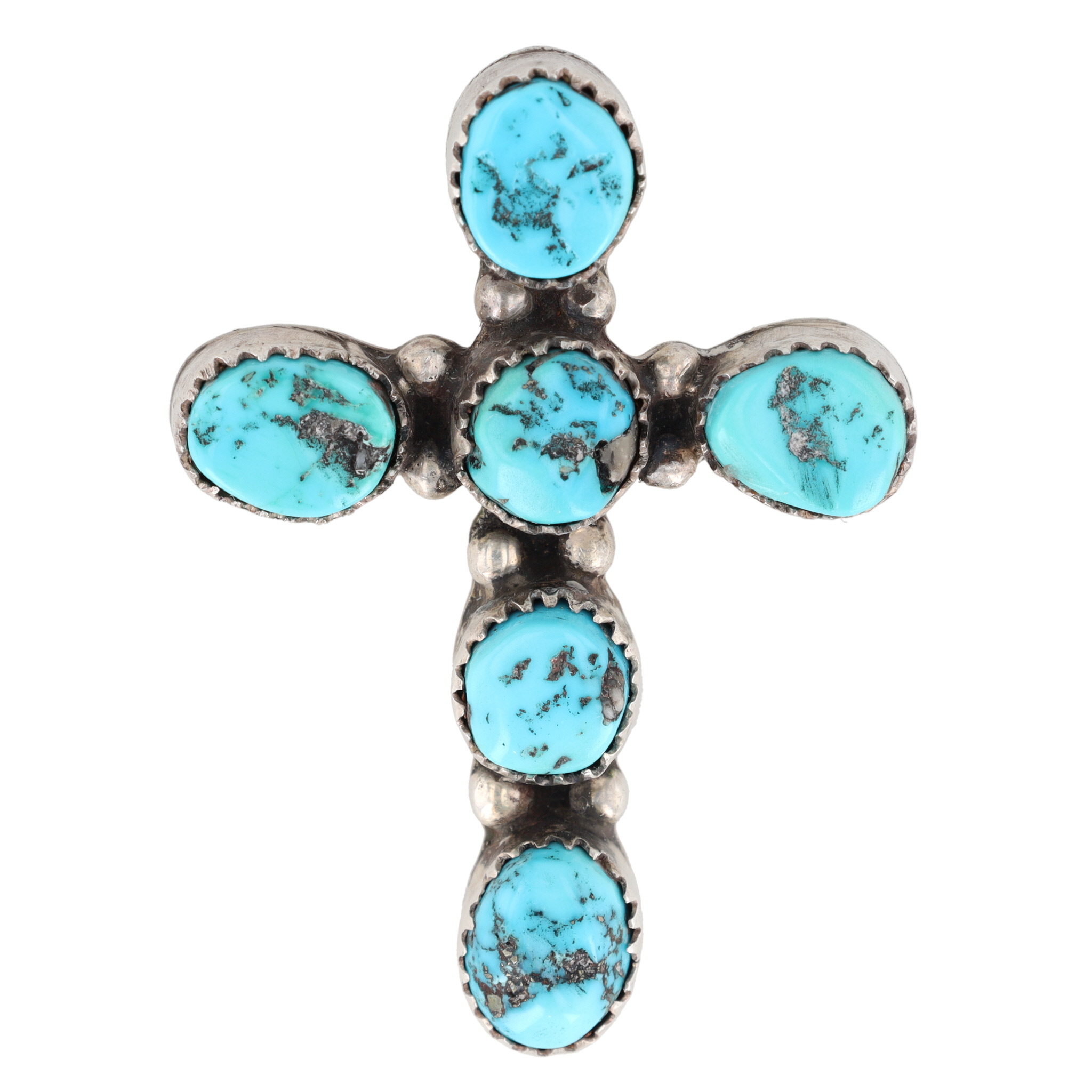 Vintage Navajo Sterling Turquoise Cross Pendant 8.5g