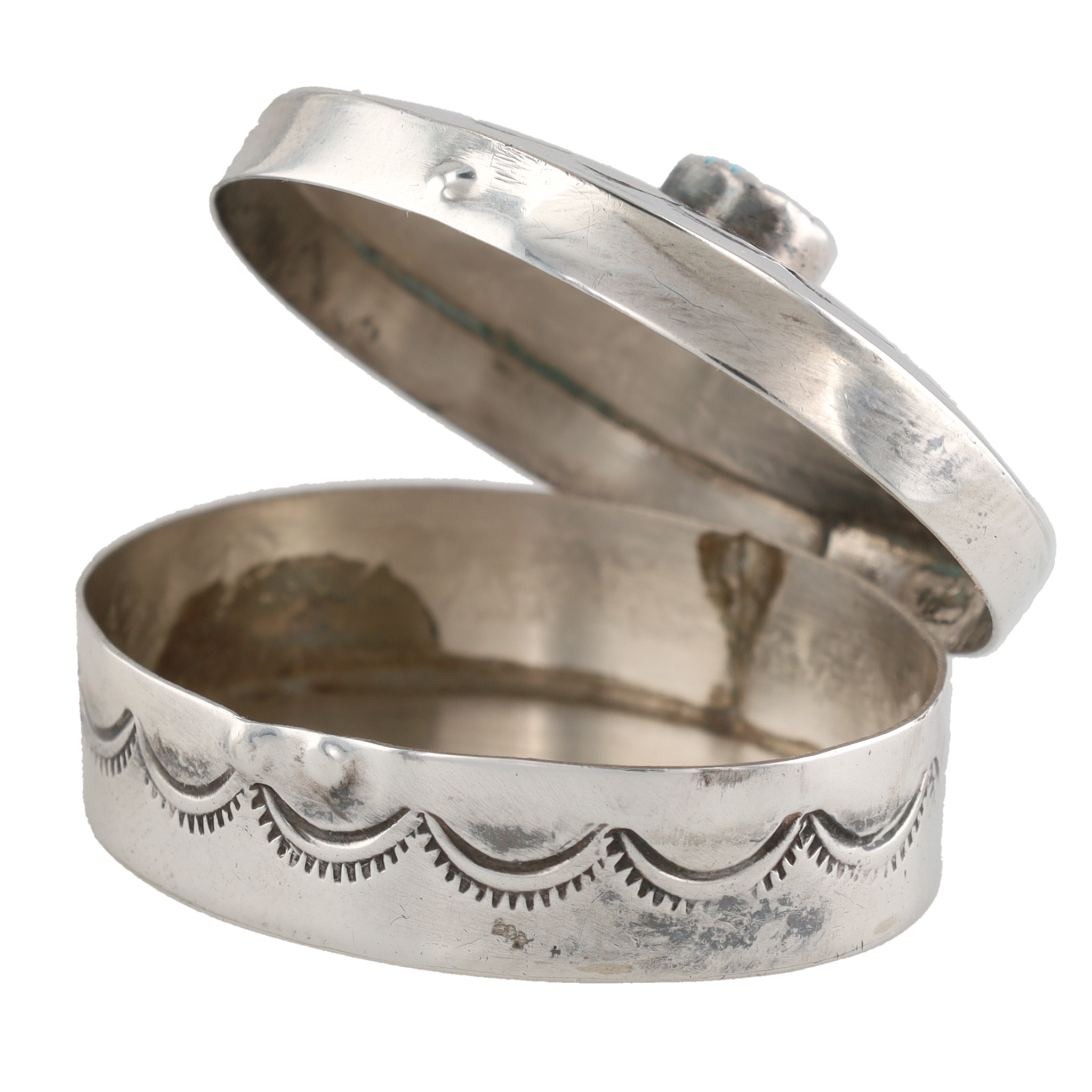 Vintage Navajo Sterling Turquoise Pill Box 11.5g