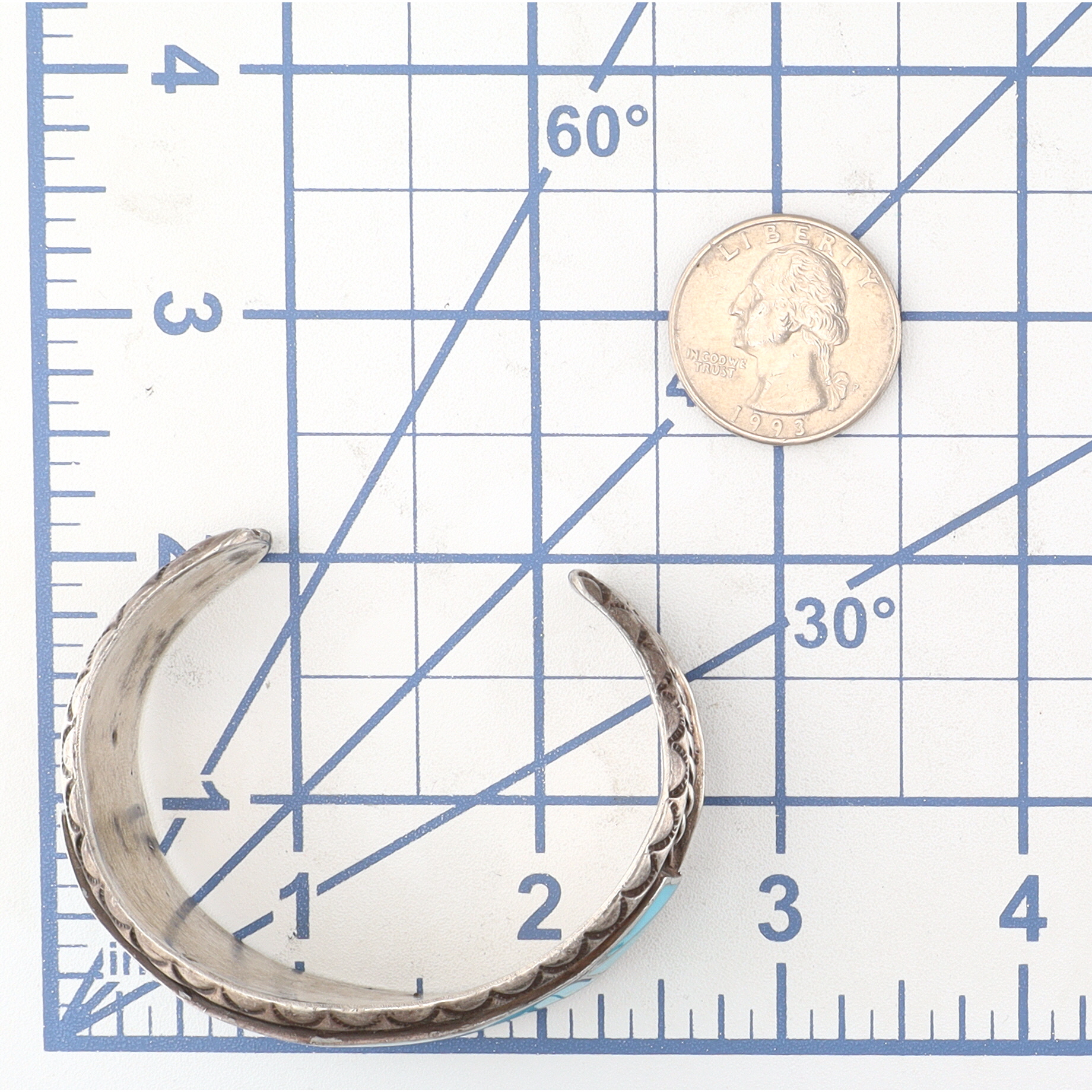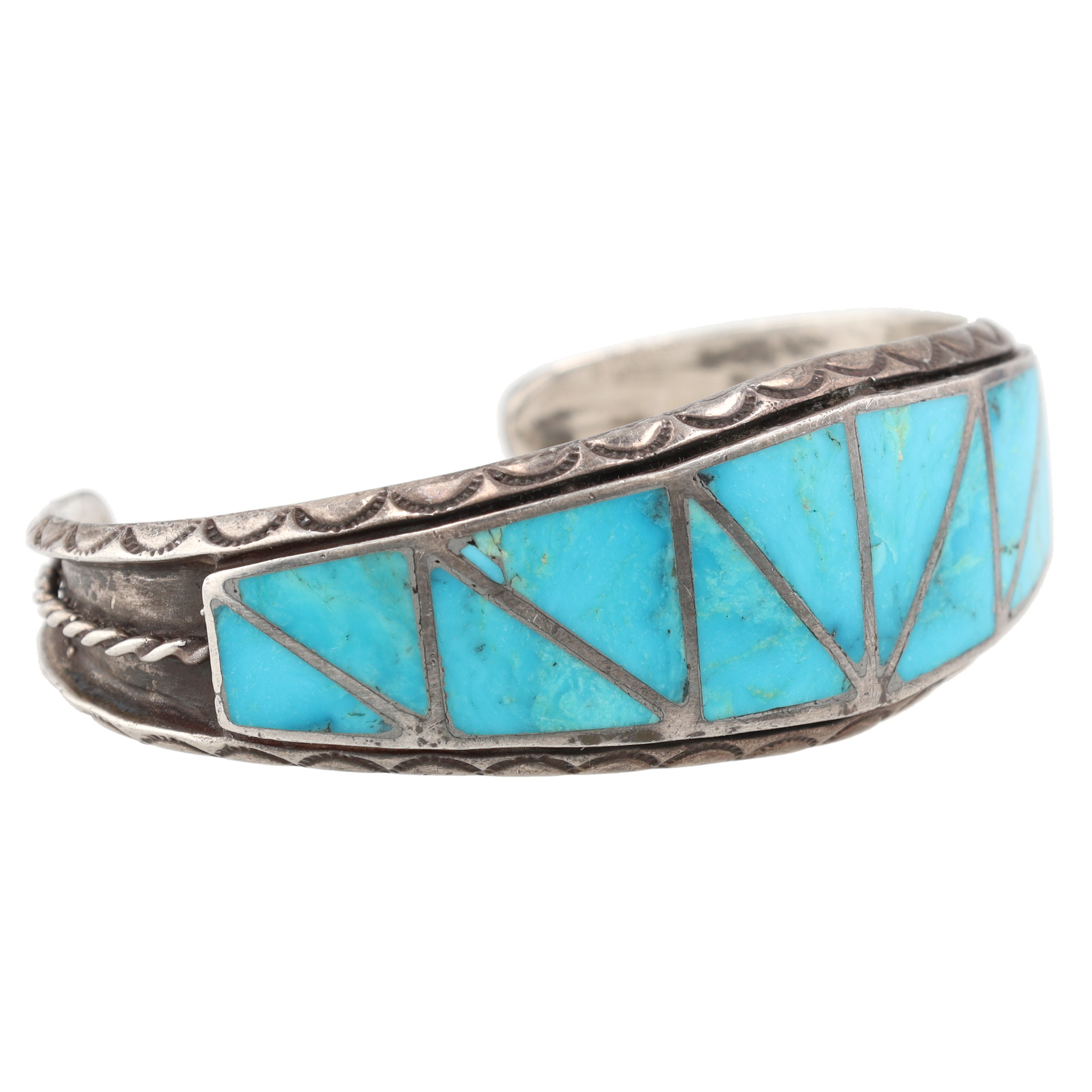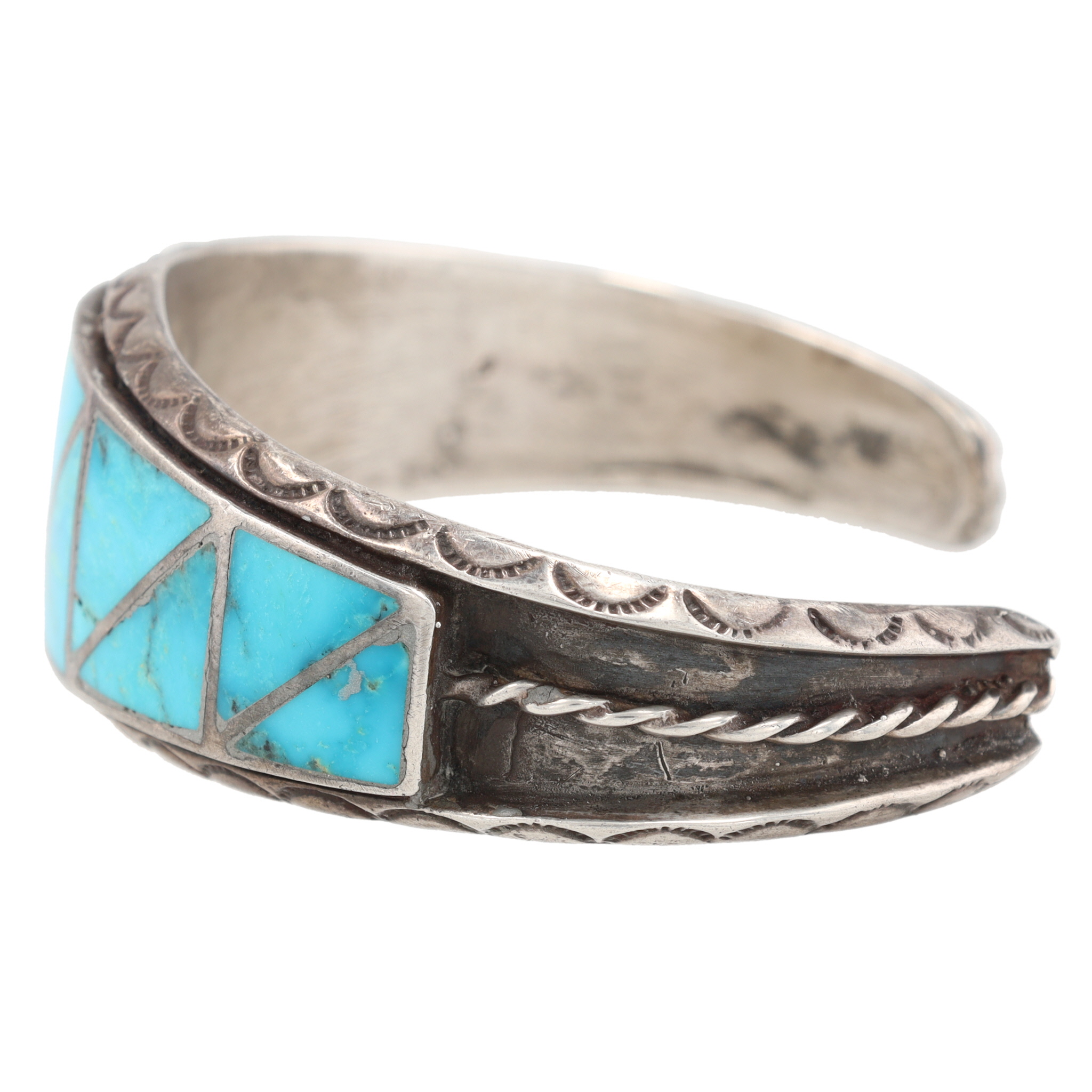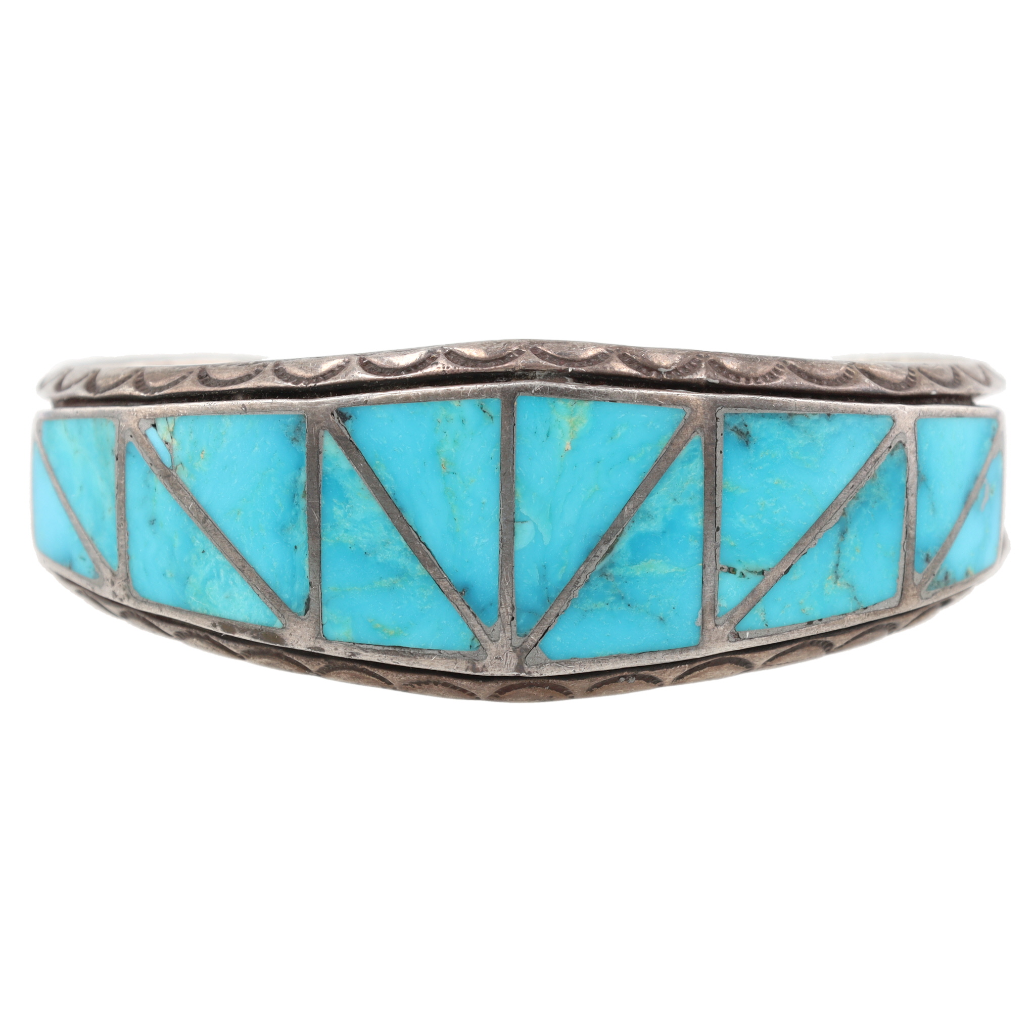 Vintage Navajo Sterling Turquoise Inlay Cuff Bracelet 36g