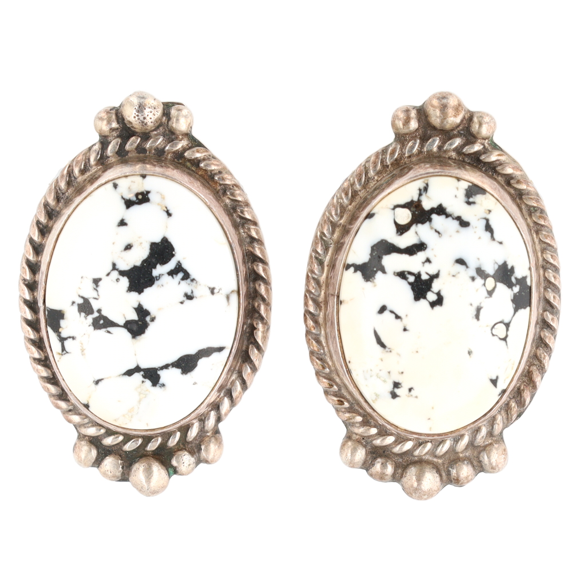 Peggie Skeets Navajo Sterling White Buffalo Earrings 11.5g