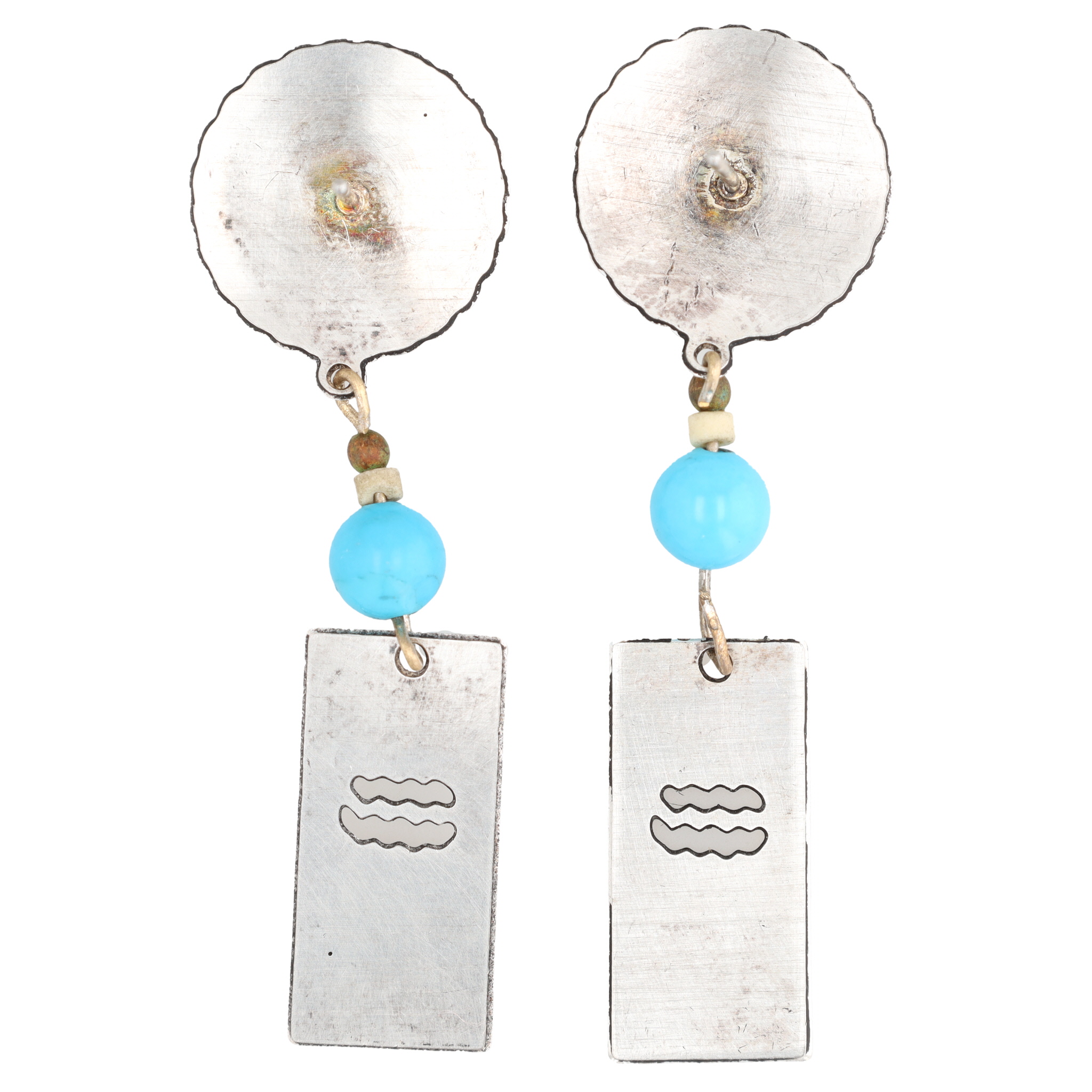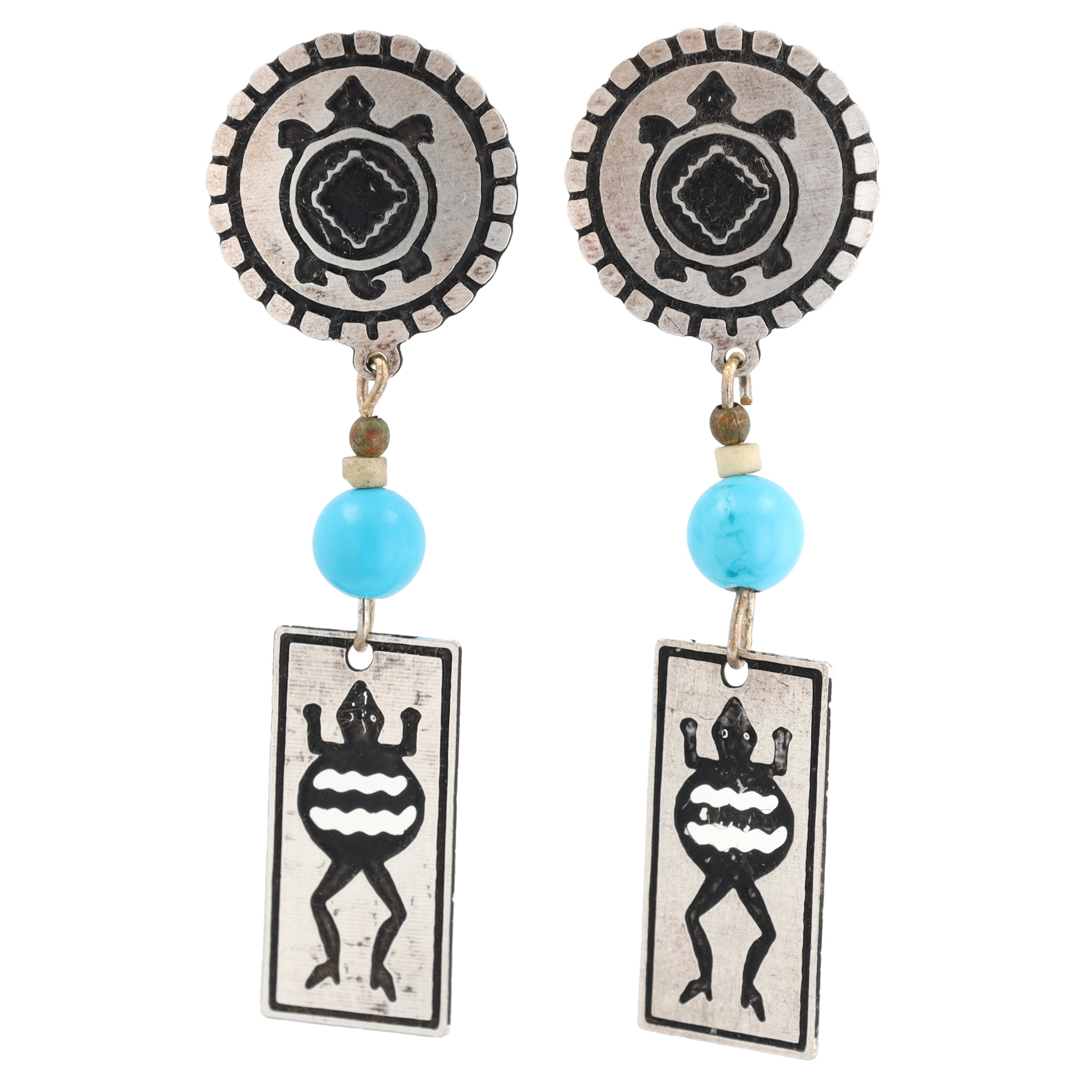 Southwestern Sterling Turquoise Bead Frog Turtle Overlay Earrings 5g