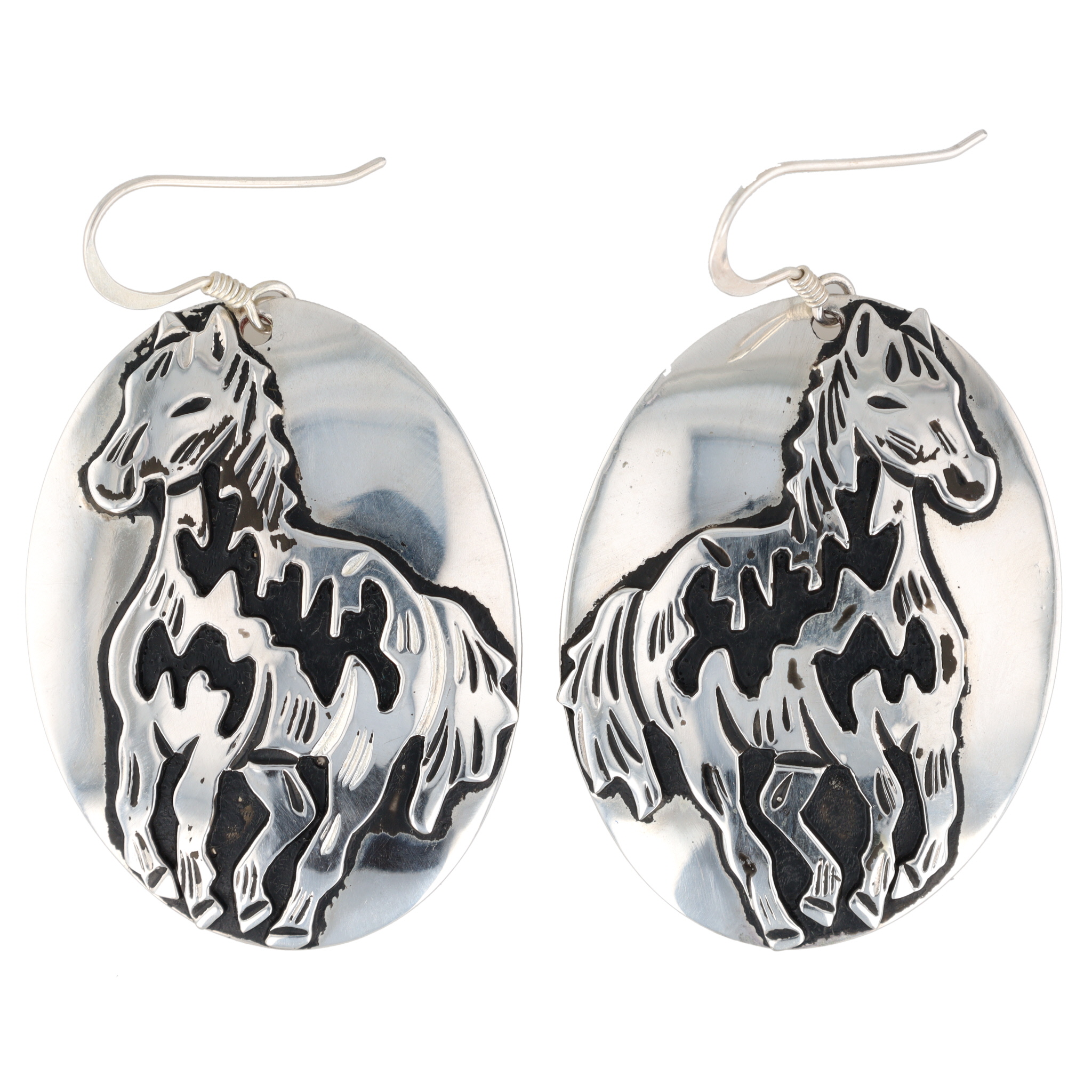Richard Singer Navajo Sterling Horse Overlay Earrings