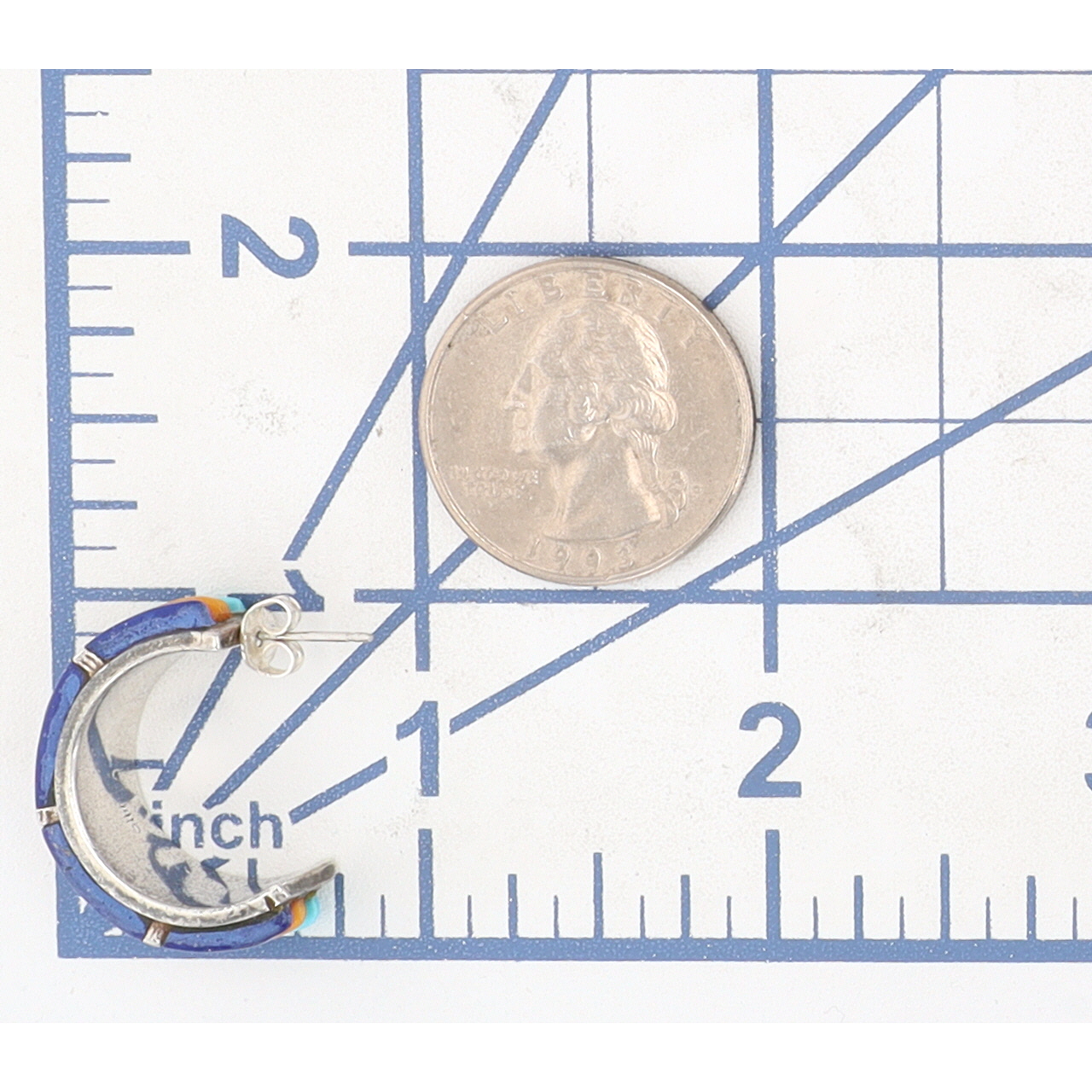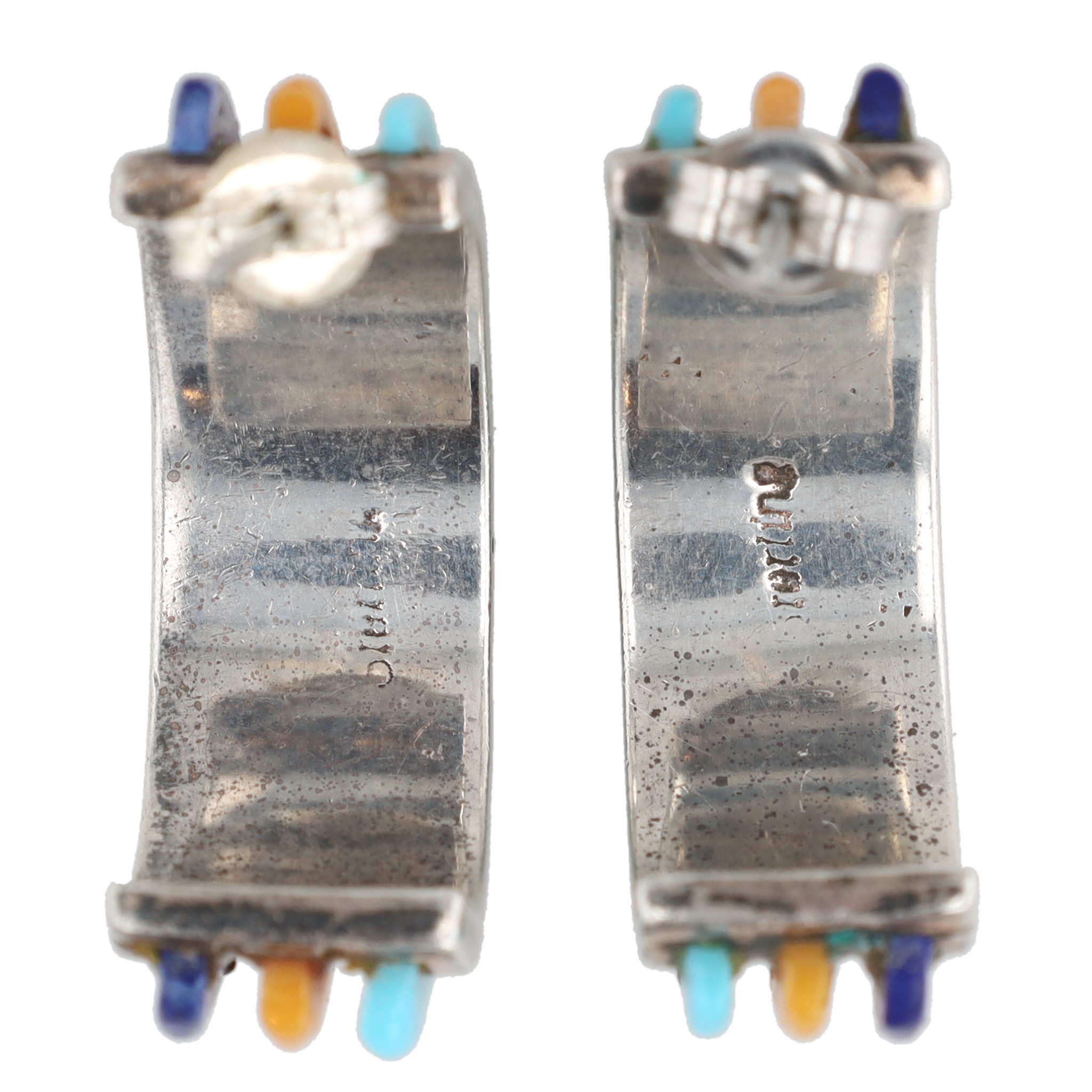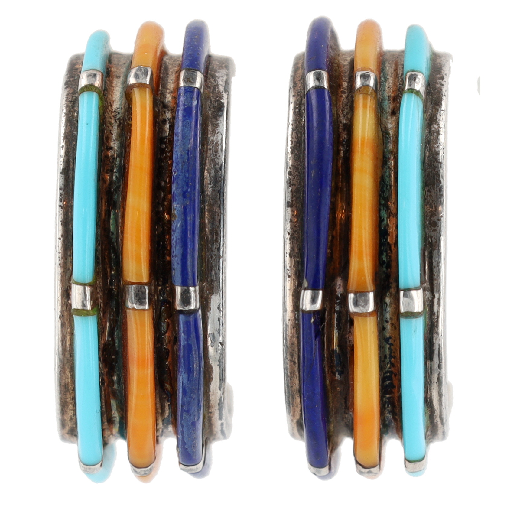 Vintage Zuni Sterling Multi Stone Raised Inlay Earrings 10g