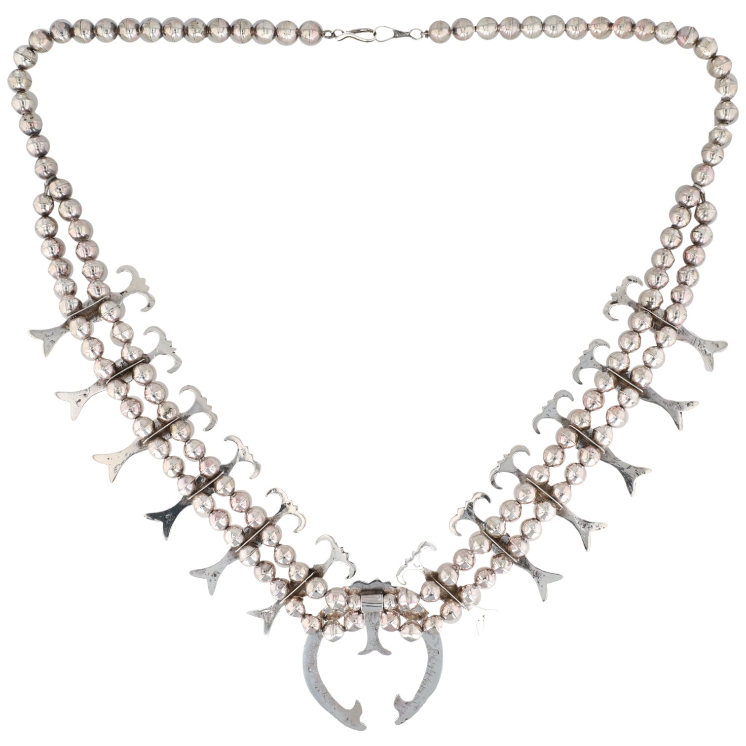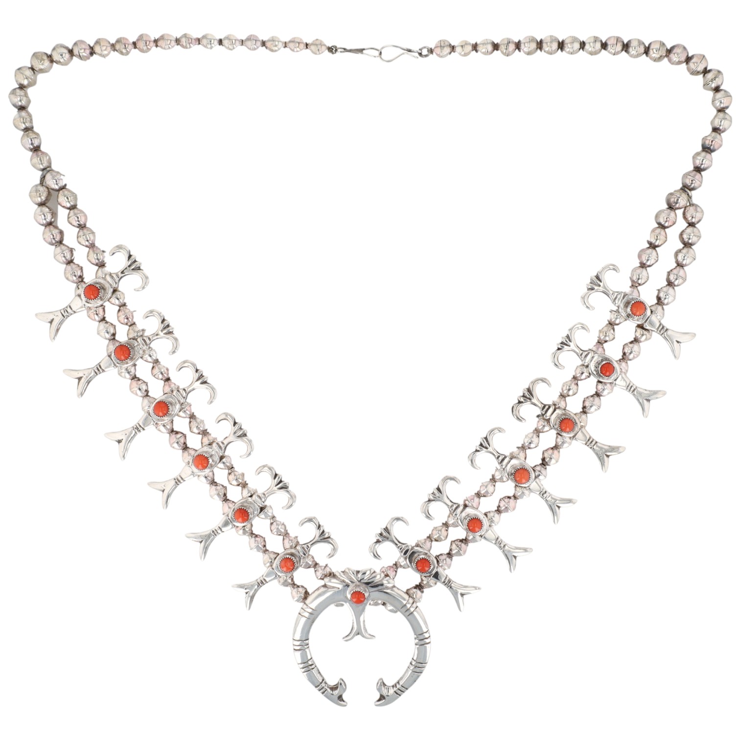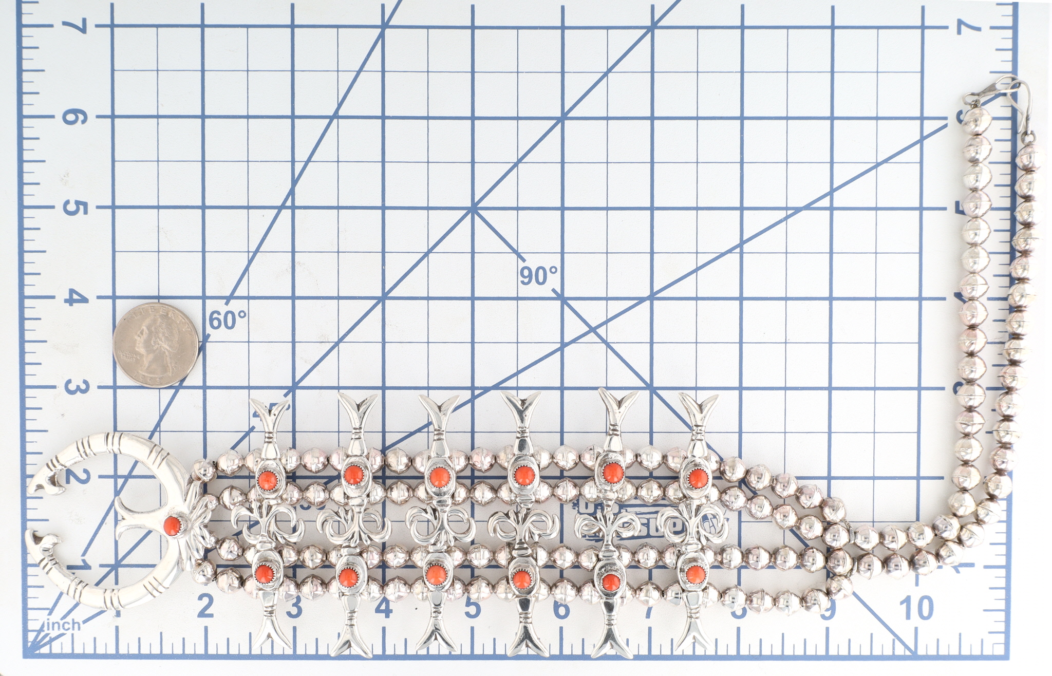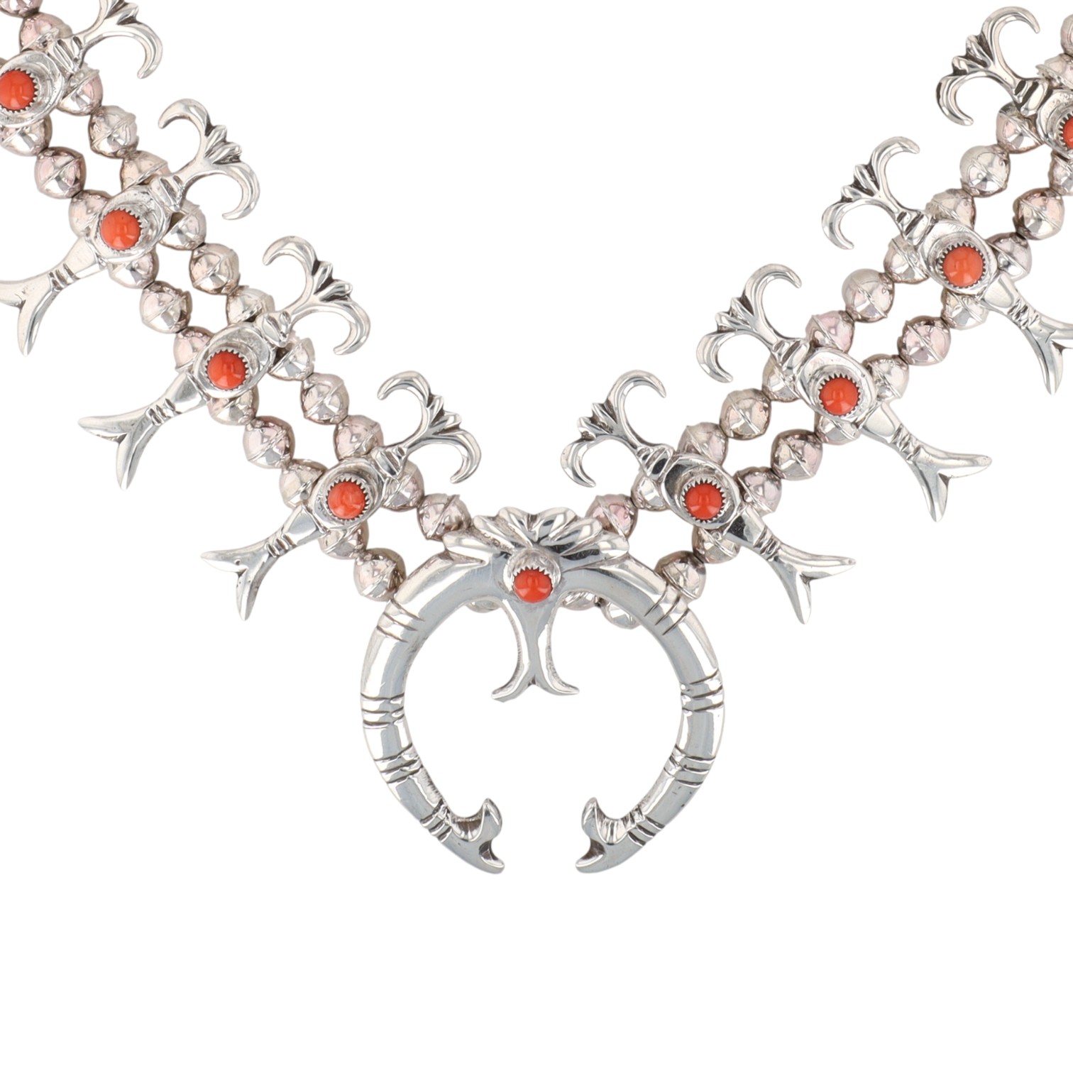 Vintage Navajo Sterling Coral Squash Blossom Necklace 146.5g