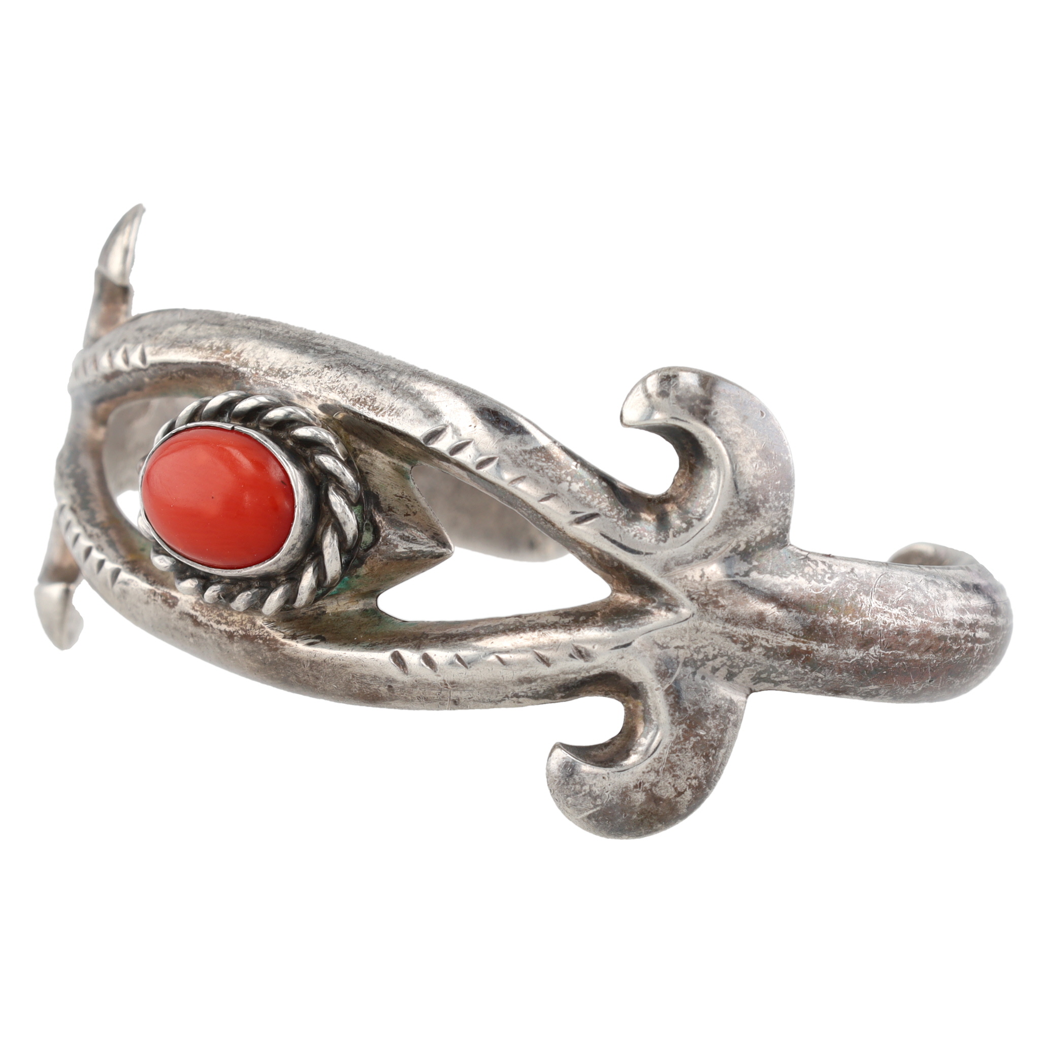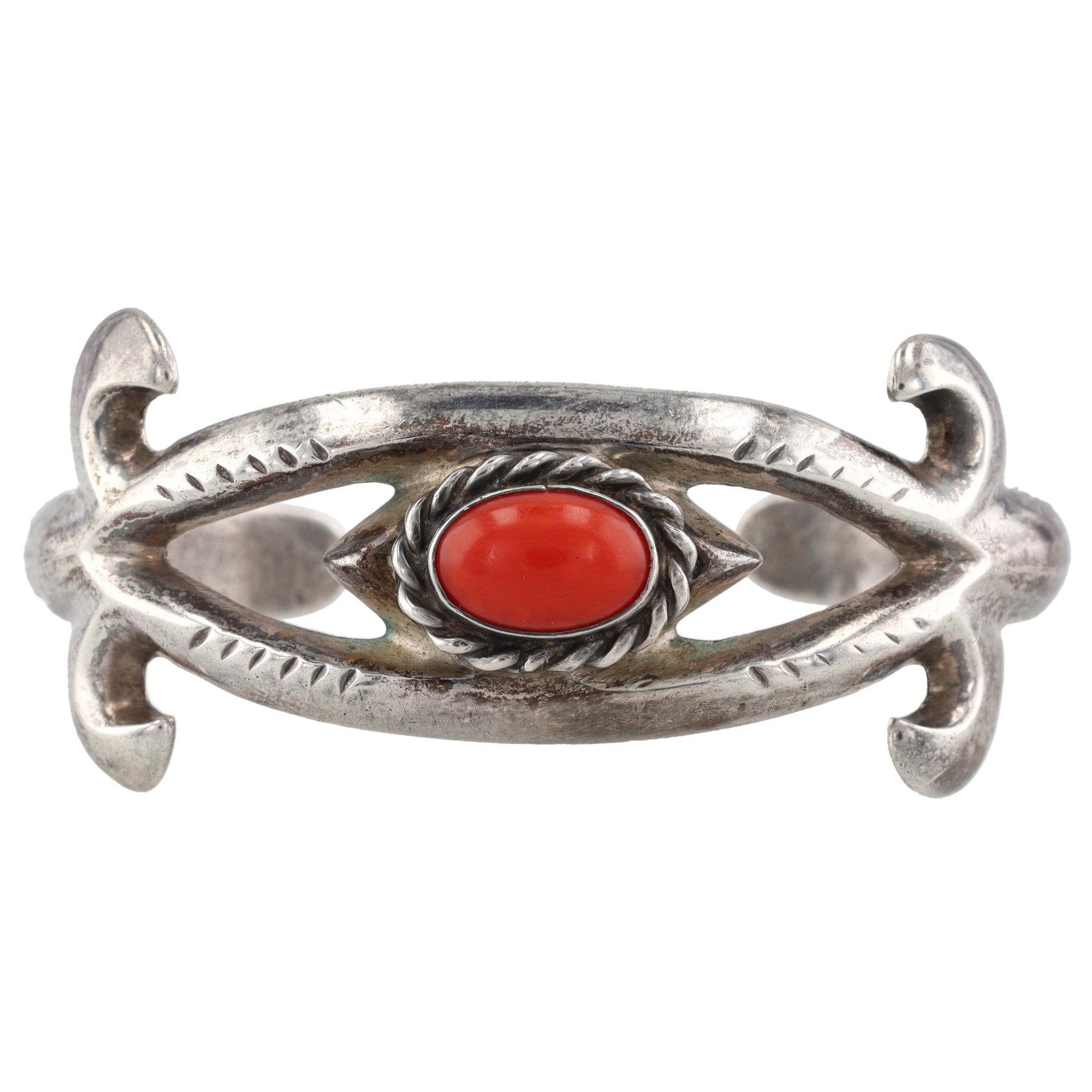 Wilbur Anderson Navajo Sandcast Sterling Coral Cuff Bracelet 34g