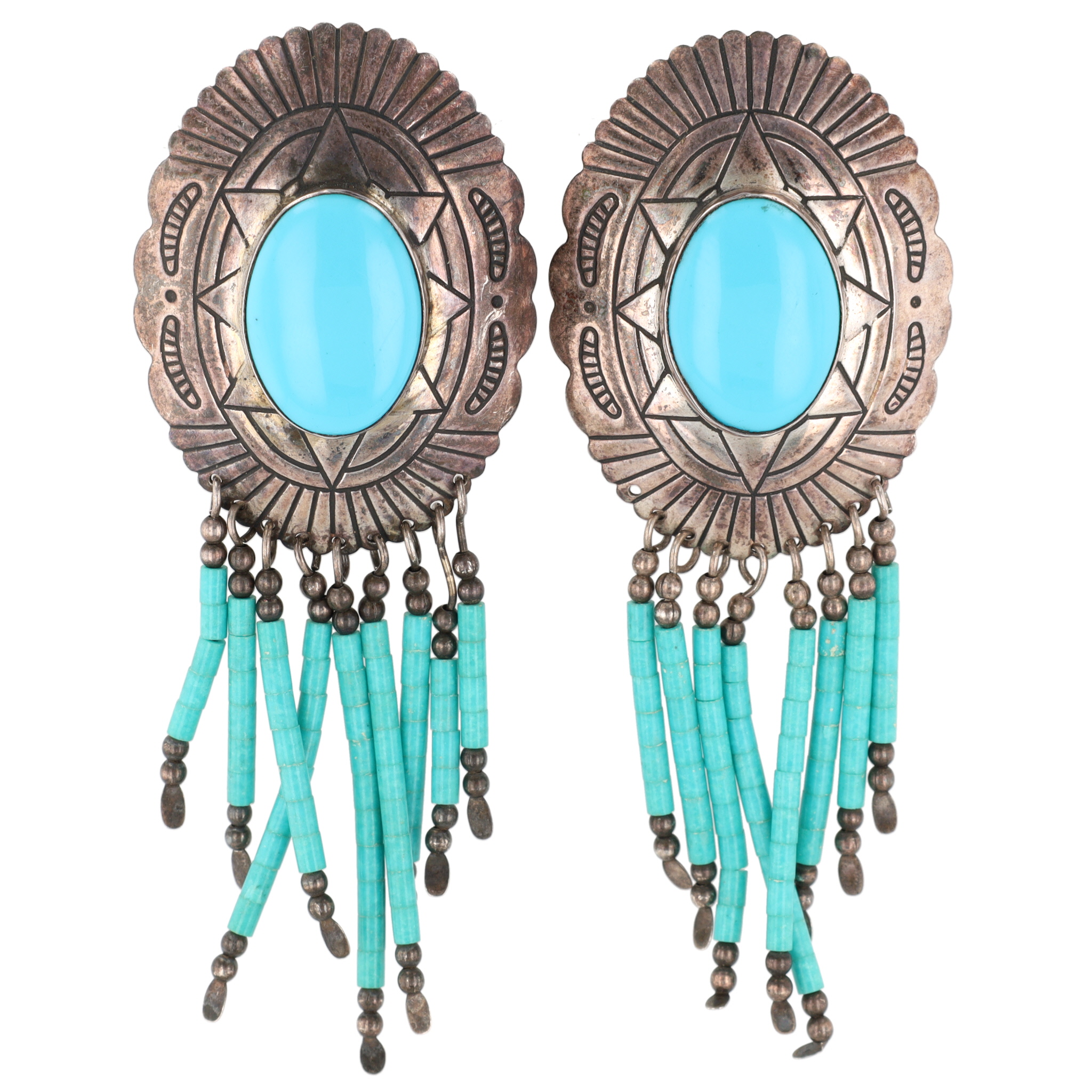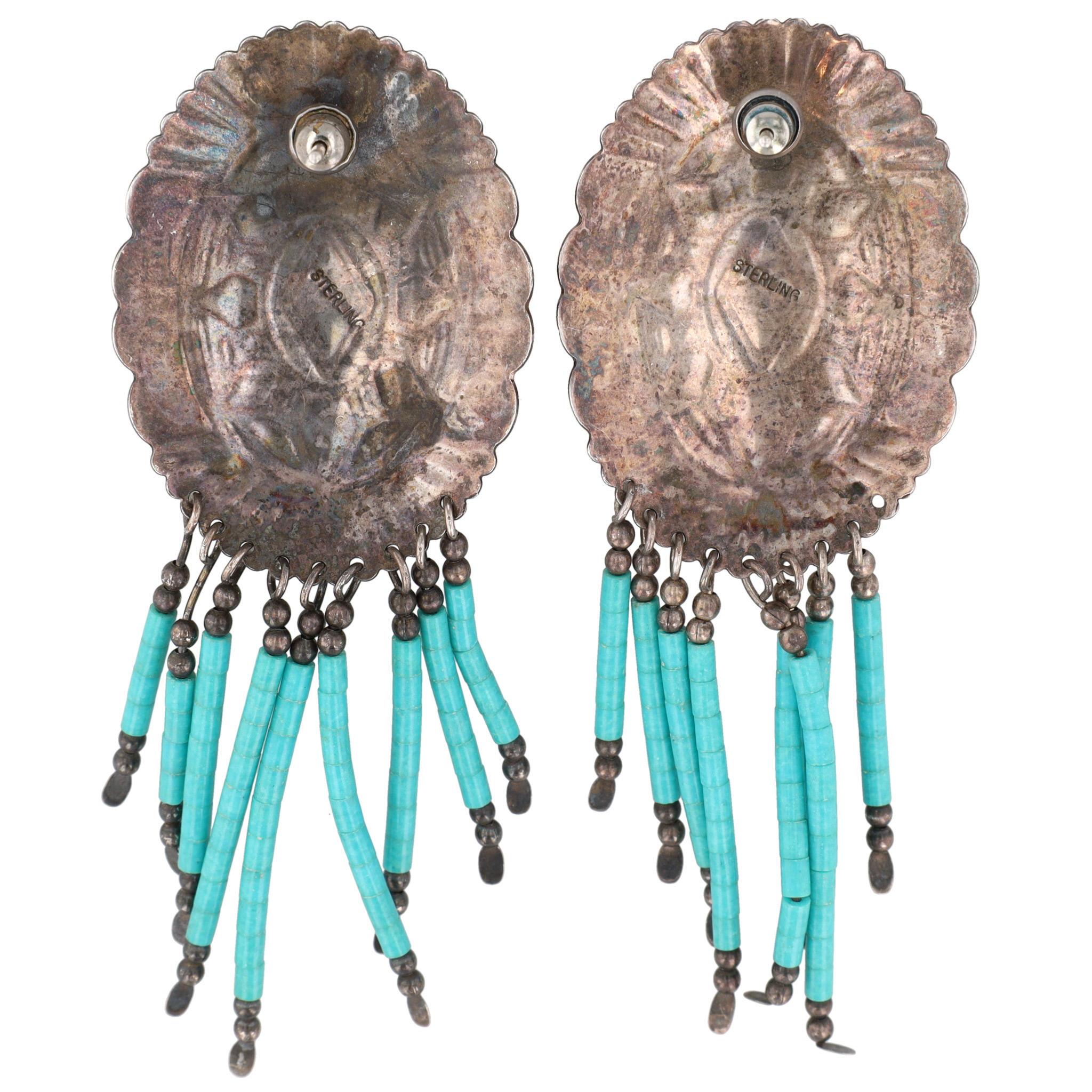 Vintage Navajo Sterling Turquoise Concho Earrings 18.5g As Is