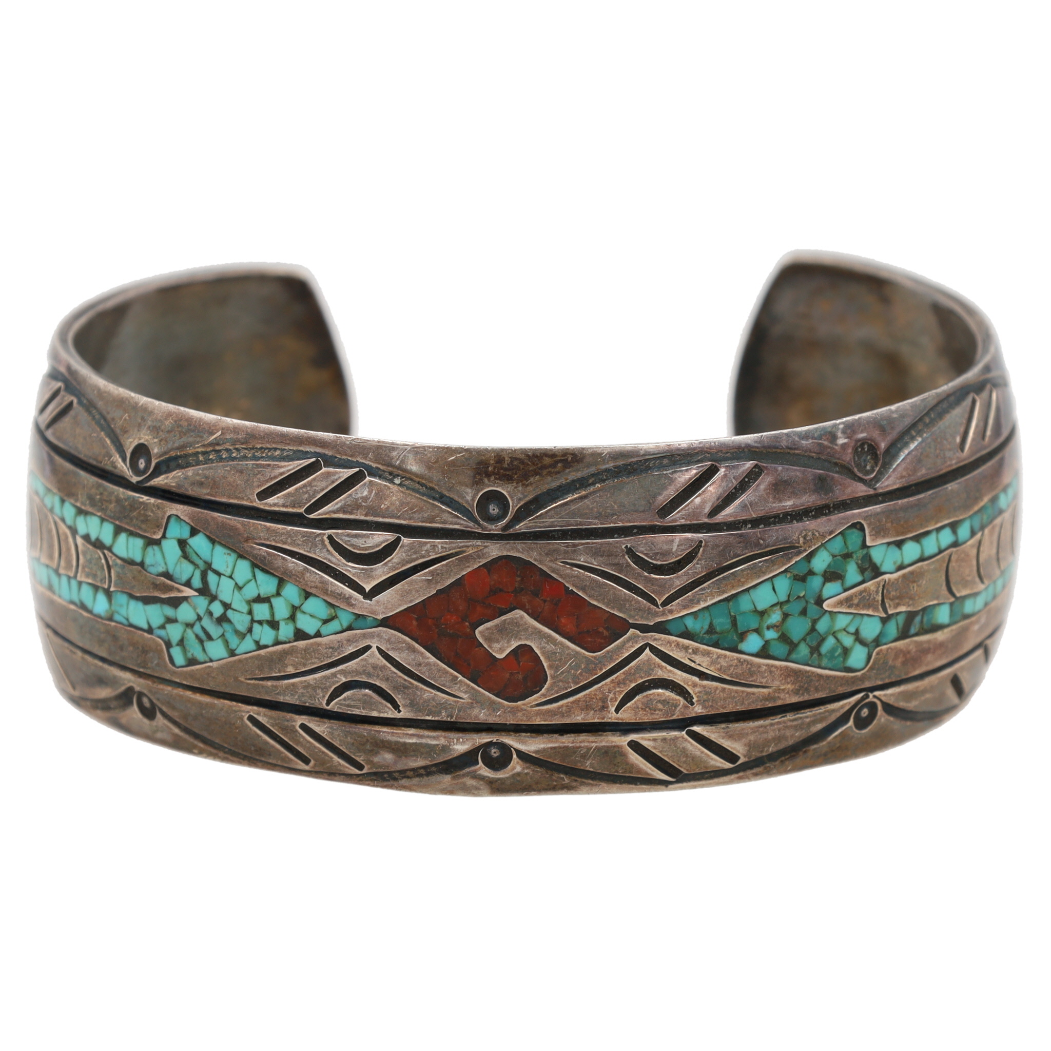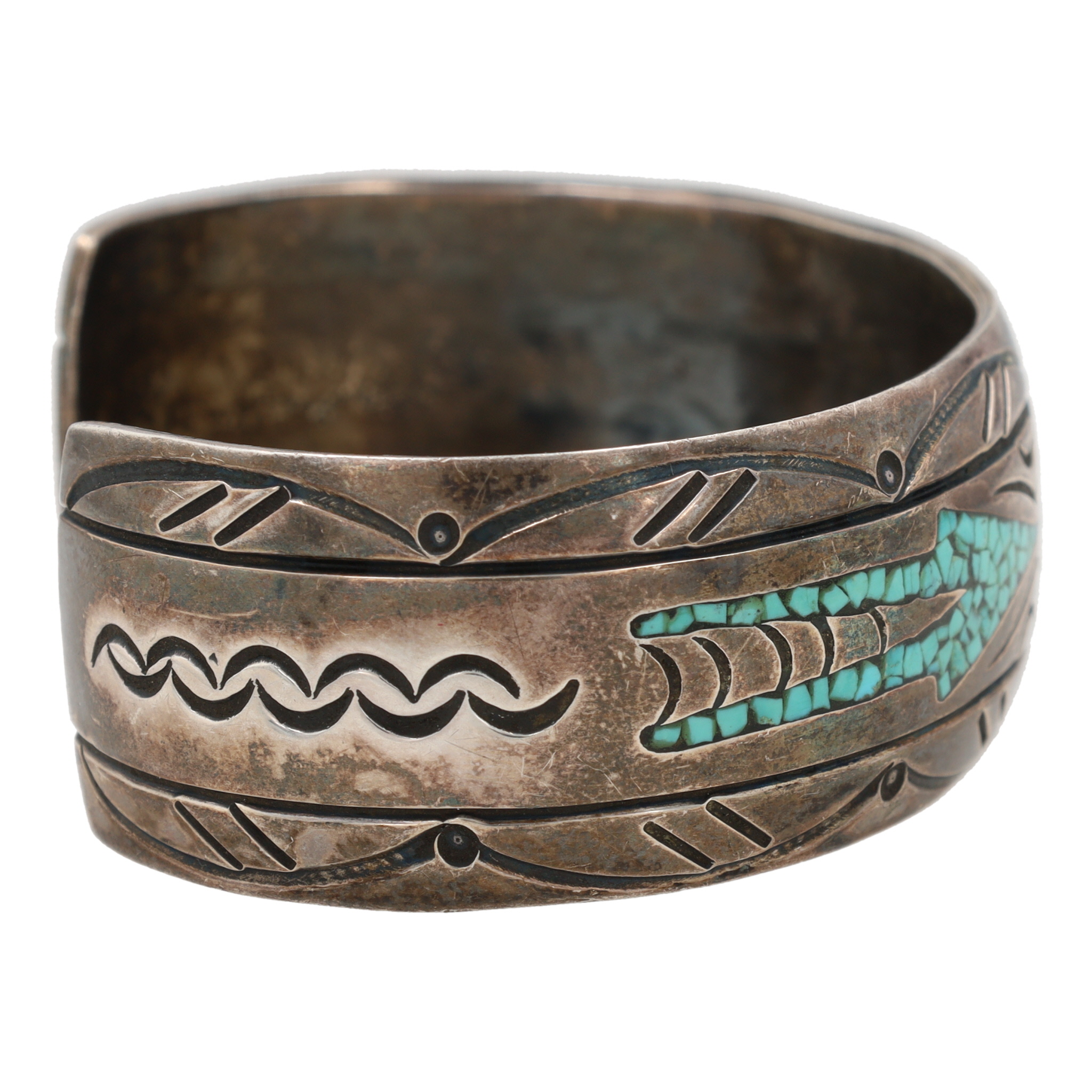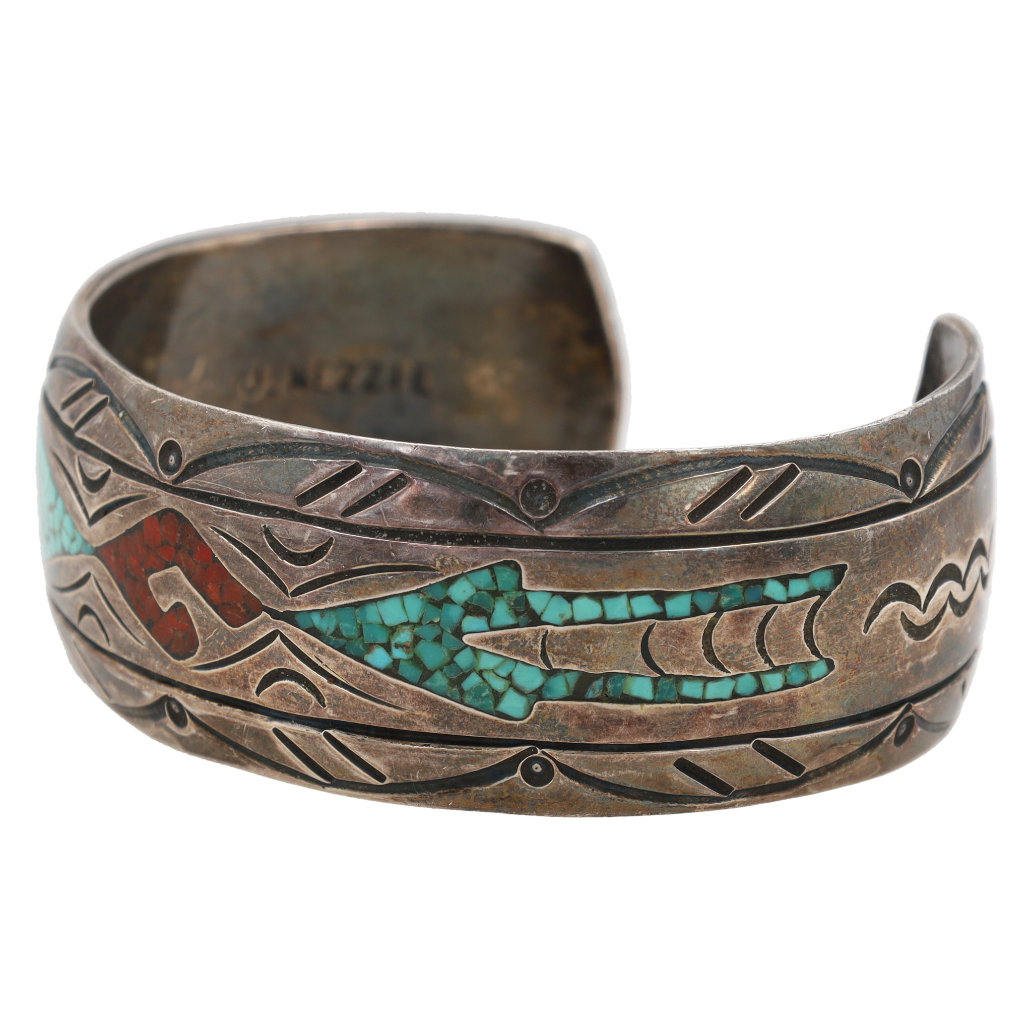 Jimmie Nezzie Navajo Sterling Crushed Inlay Cuff Bracelet 31.5g