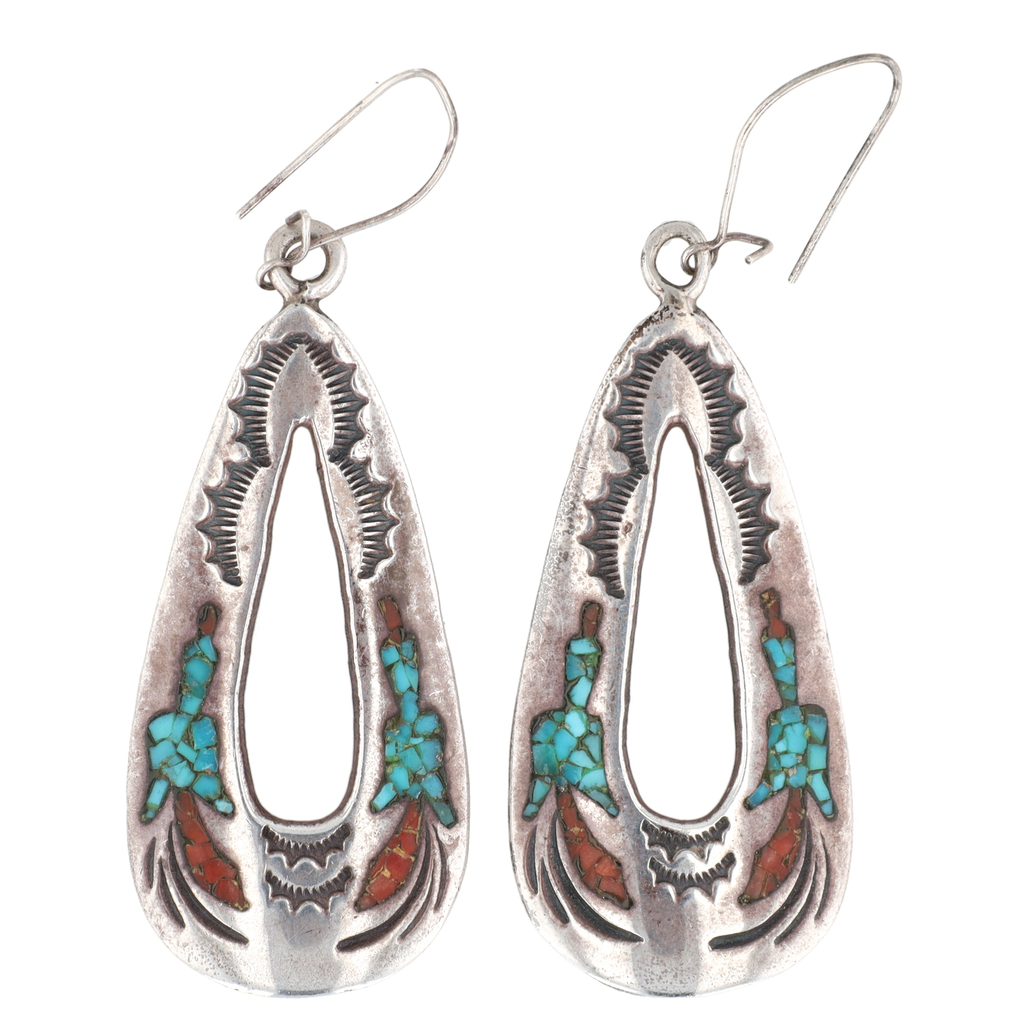 Tommy Singer Navajo Sterling Crushed Inlay Earrings 11g