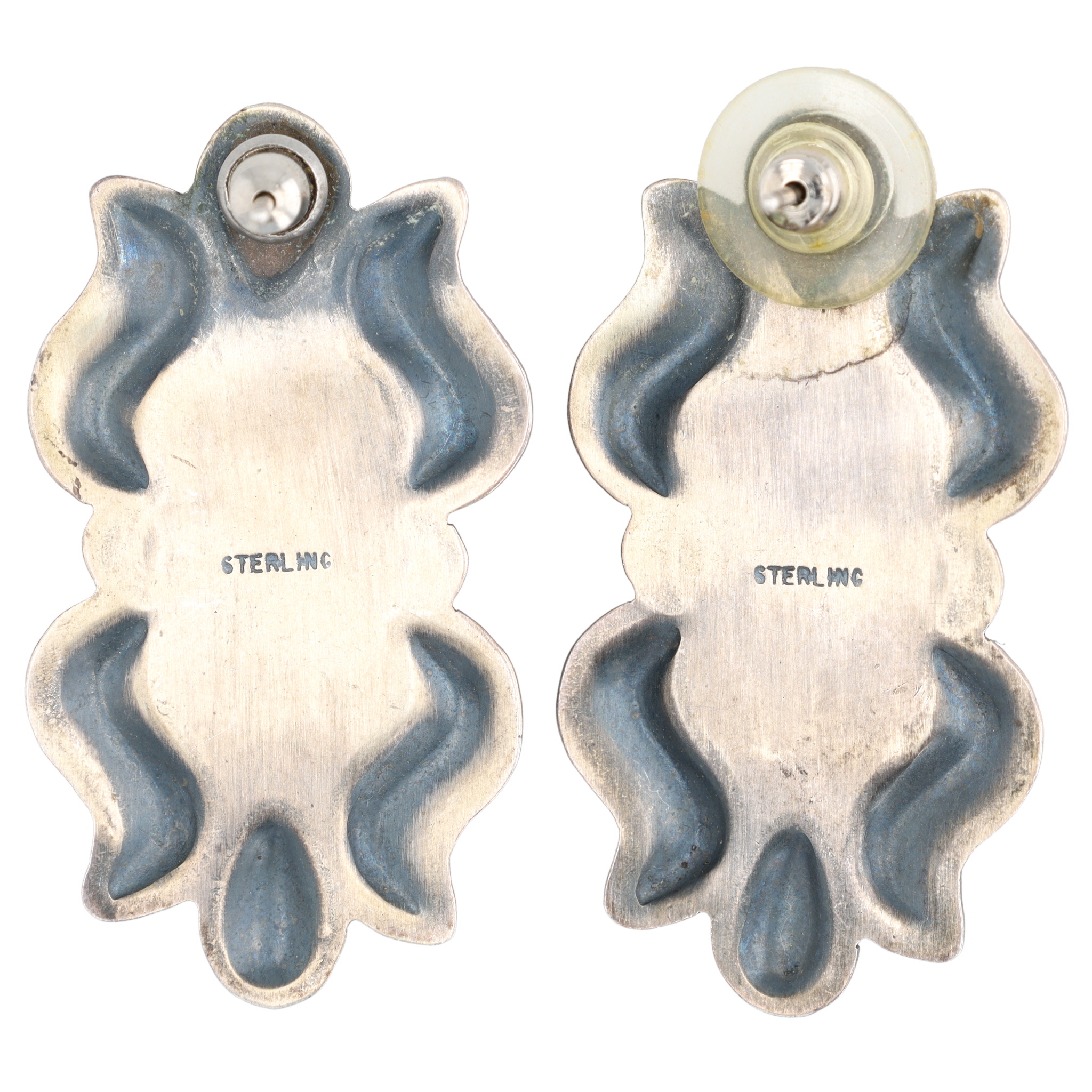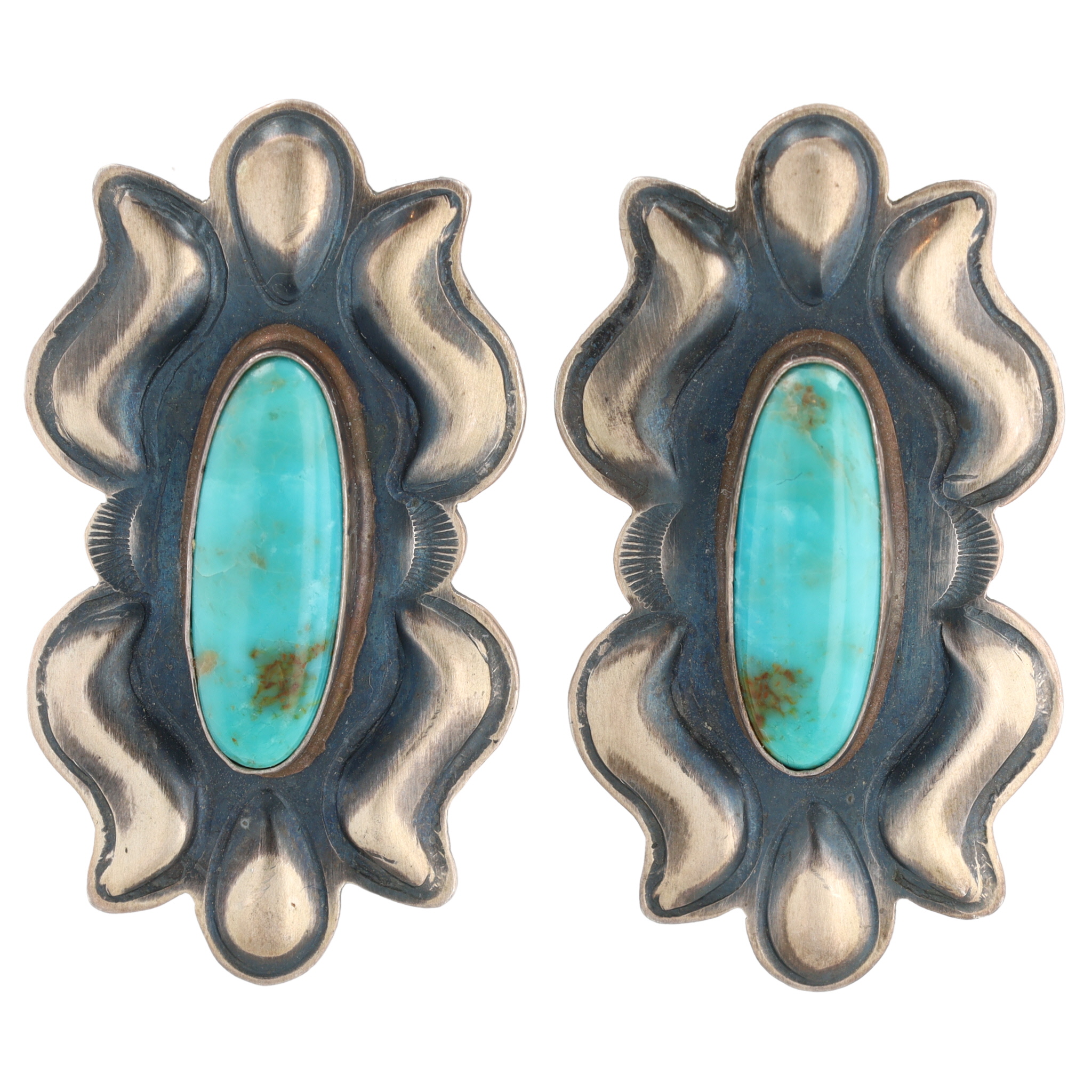 Vintage Navajo Stamped Sterling Turquoise Earrings 11g