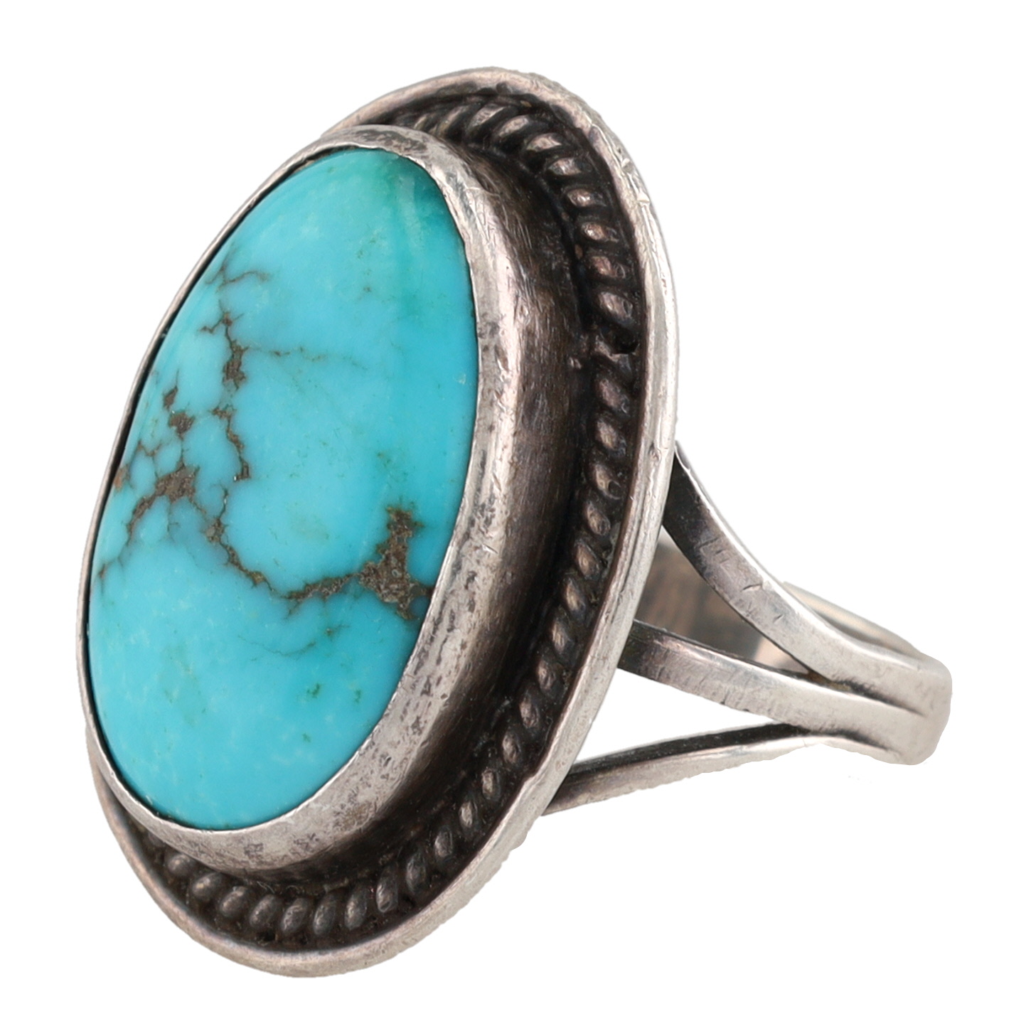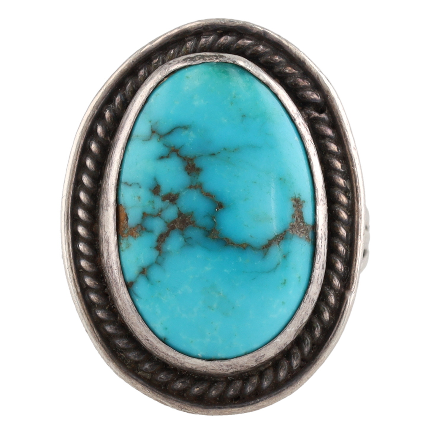 Cortez H. Navajo Sterling Turquoise Ring Sz. 7.25, 7g