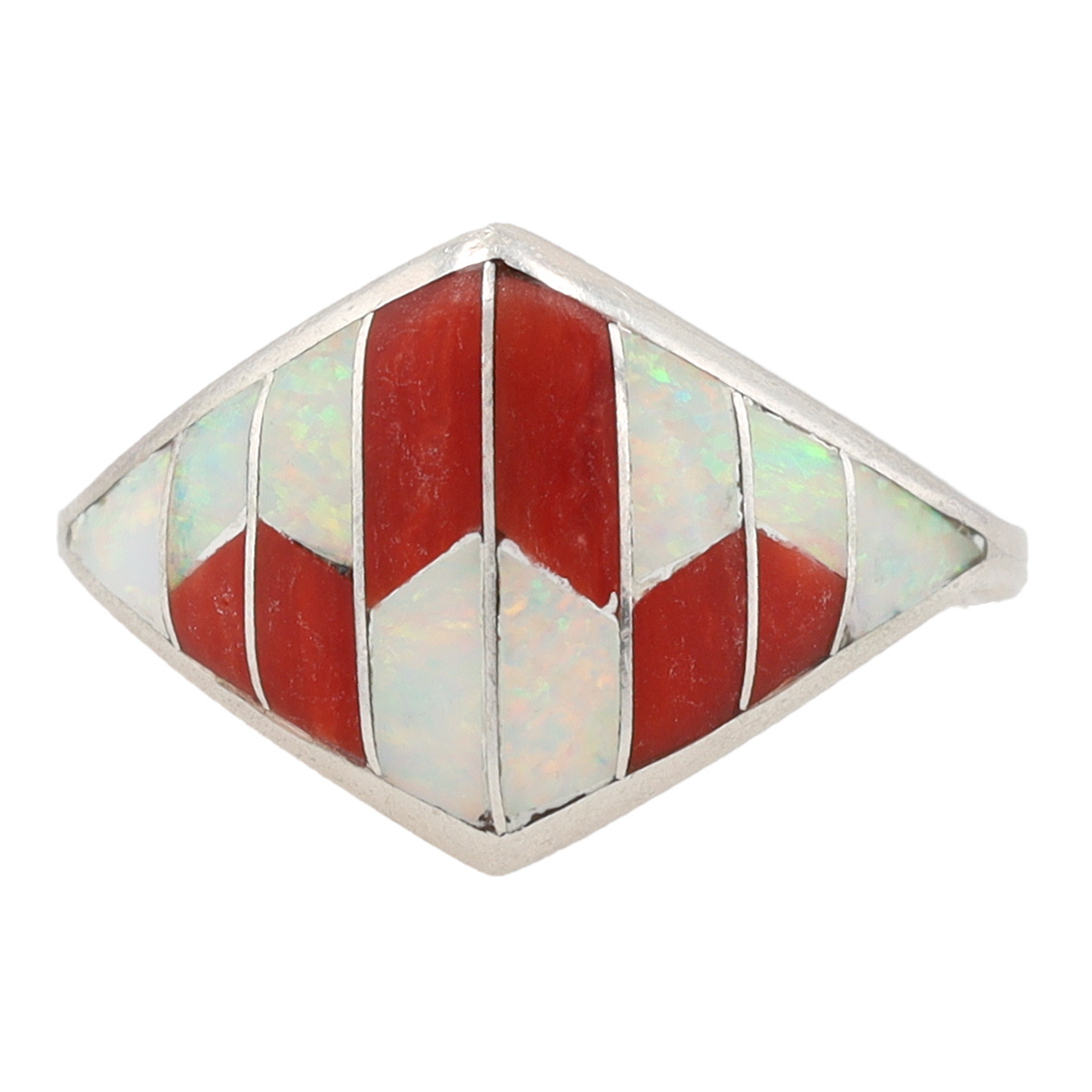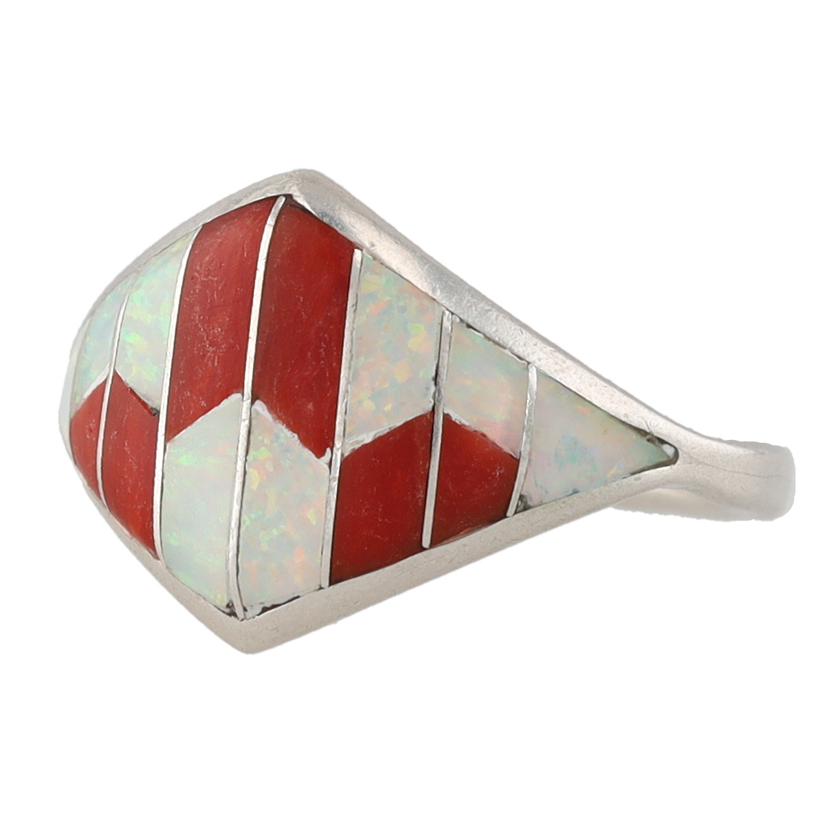 Pawned Vintage Zuni Sterling Coral Opal Ring Sz. 7, 3g
