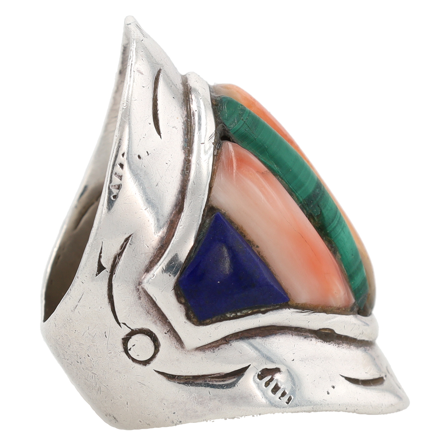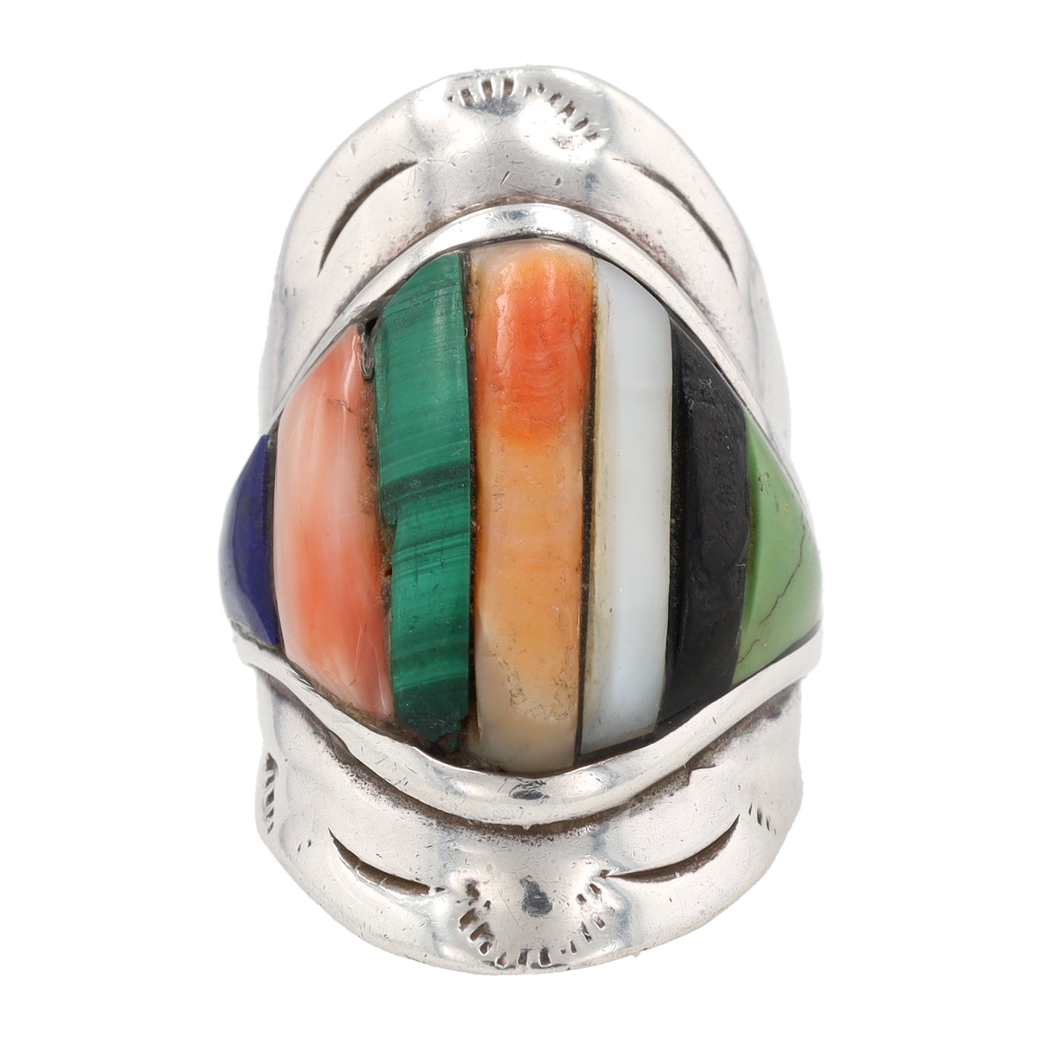 Vintage Navajo Sterling Cobblestone Inlay Ring Sz. 8, 15g